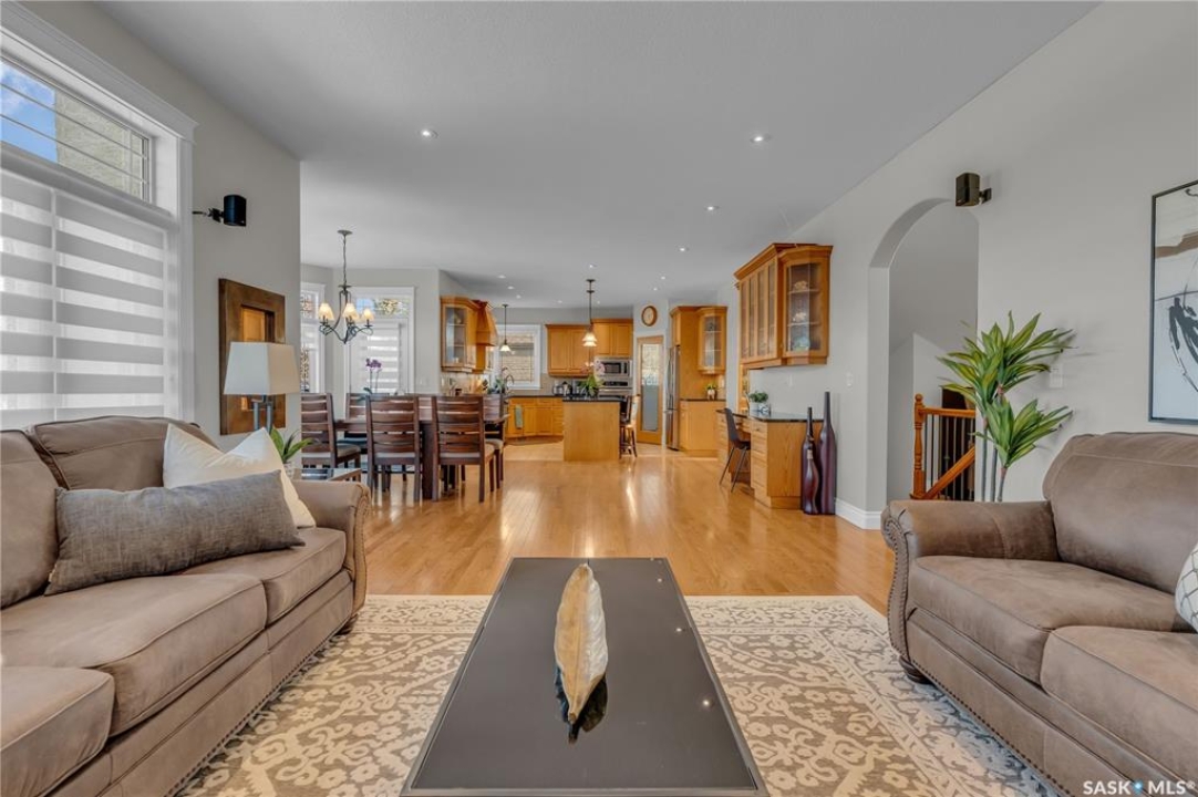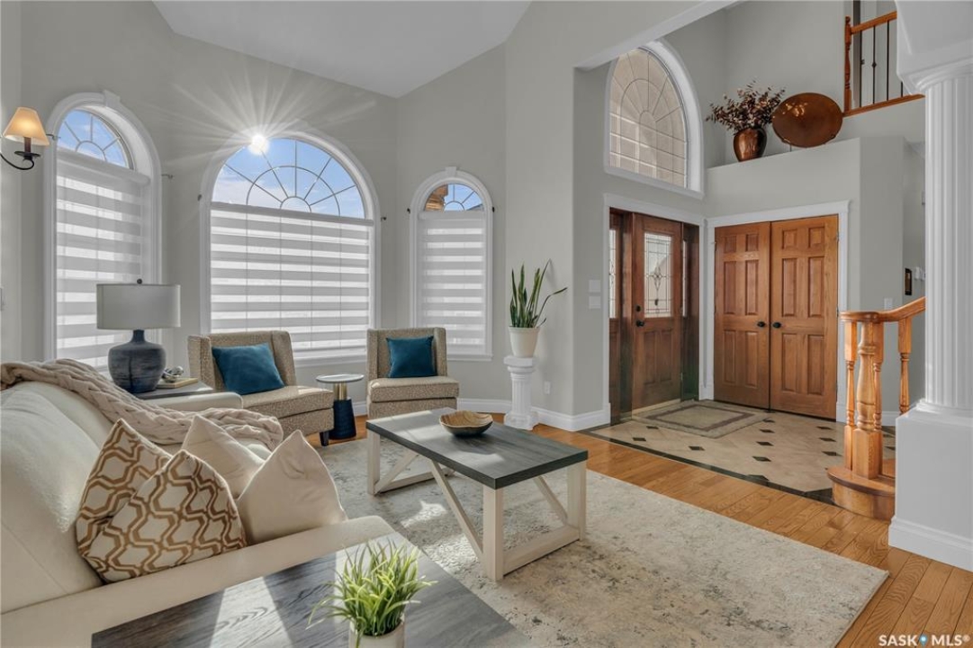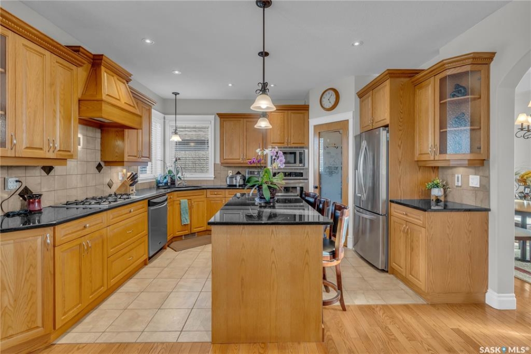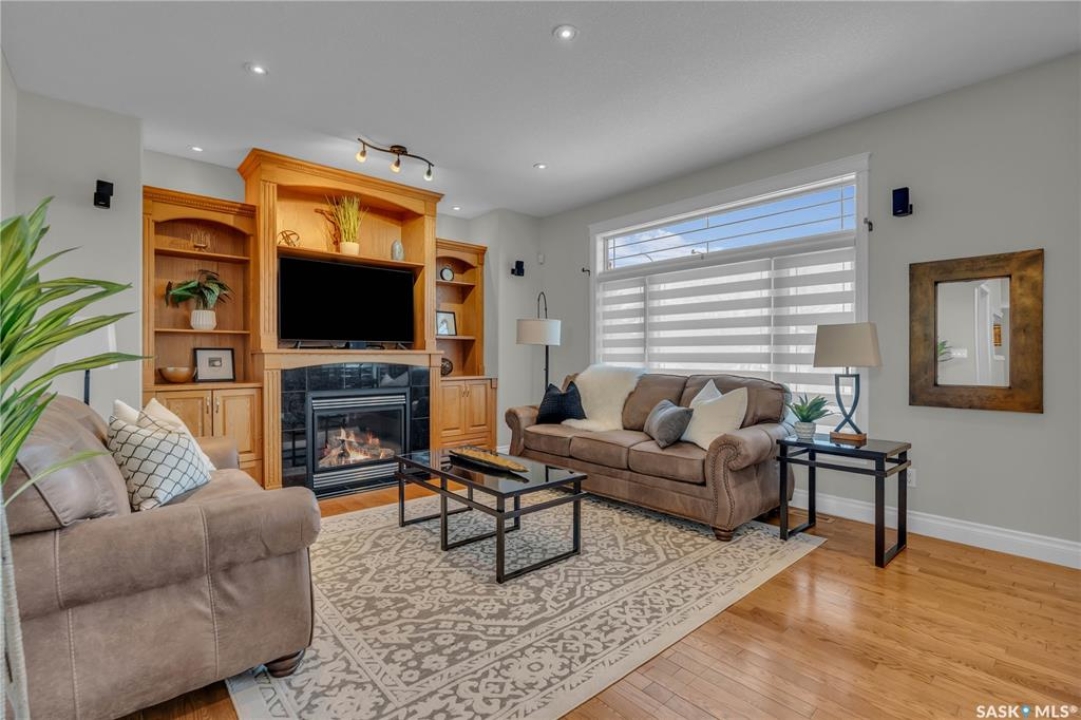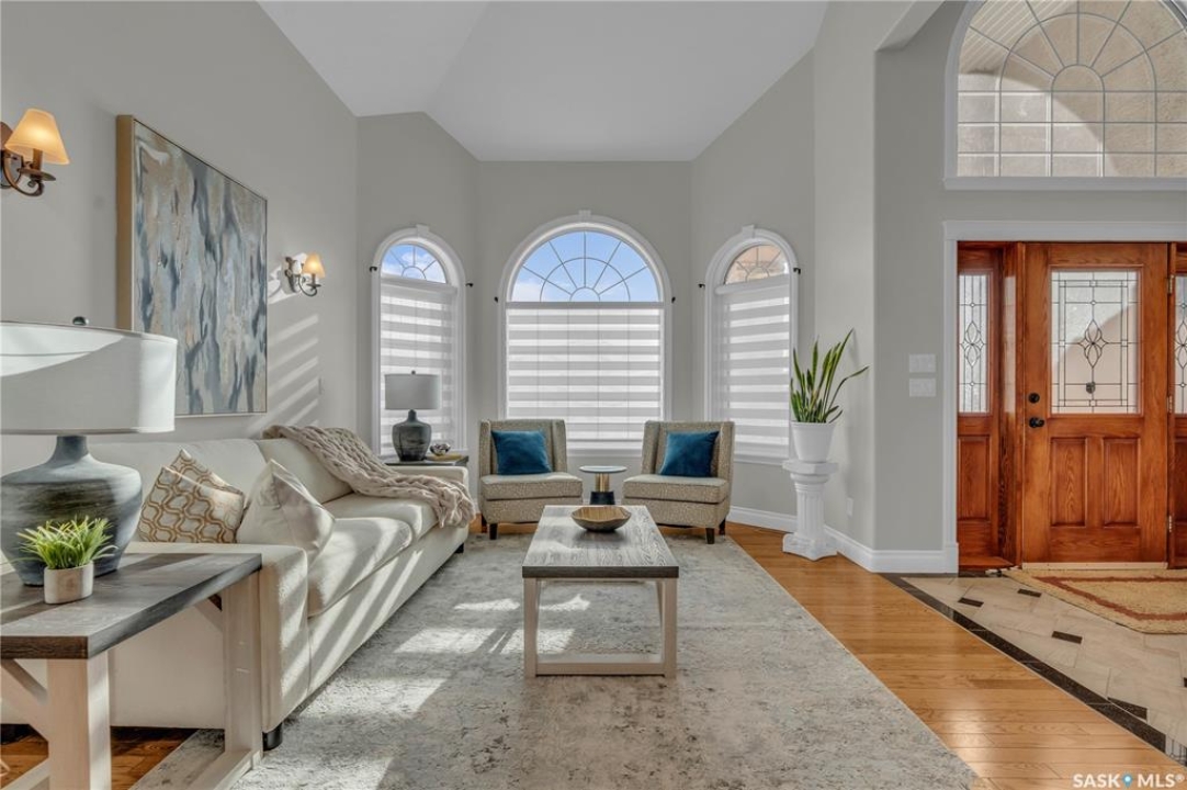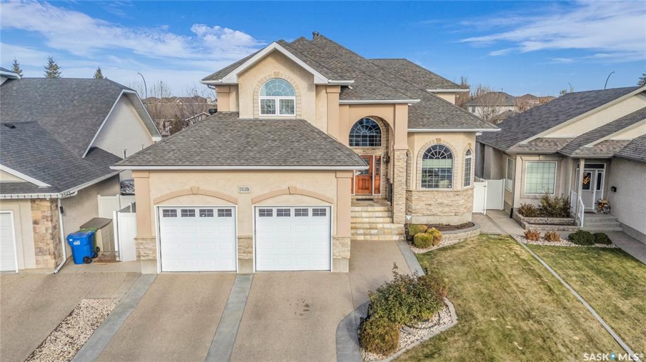 Welcome to this exceptional custom-built Yakobovich two-storey home, offering over 2,800 sq. ft. of meticulously designed living space in the sought-after Lakeridge neighborhood of Regina. With 4 bedrooms, 4 bathrooms, and an array of luxurious features, this home is perfect for families seeking both elegance and comfort. Upon entering, you are greeted by a grand entryway featuring a curved staircase, setting the tone for the sophistication found throughout the home. The main floor boasts a formal living and dining room, ideal for entertaining, along with a dedicated office space for those who work from home. The open-concept family room and dining area, situated off the beautifully appointed kitchen, create a warm and inviting atmosphere for everyday living. The kitchen is a chef's dream, with ample cabinetry, modern appliances, and heated flooring for added comfort. The laundry room is conveniently located on the main floor for easy access. Upstairs, the home features three spacious bedrooms, including a luxurious primary suite with a spa-like ensuite, complete with heated floors for ultimate relaxation. The additional bedrooms are generously sized, providing plenty of space for family members or guests. The fully developed basement includes a fourth bedroom, an additional bathroom, and a versatile recreation area. Designed for durability and peace of mind, the basement floor is heated and supported by engineered piles. Outside, the professionally landscaped yard is a true masterpiece, featuring extensive stonework that enhances the home's curb appeal and provides a serene outdoor retreat. This stunning home combines quality craftsmanship with modern luxury in one of Regina's most desirable communities. Don't miss your opportunity to own this incredible property—schedule your private viewing today!