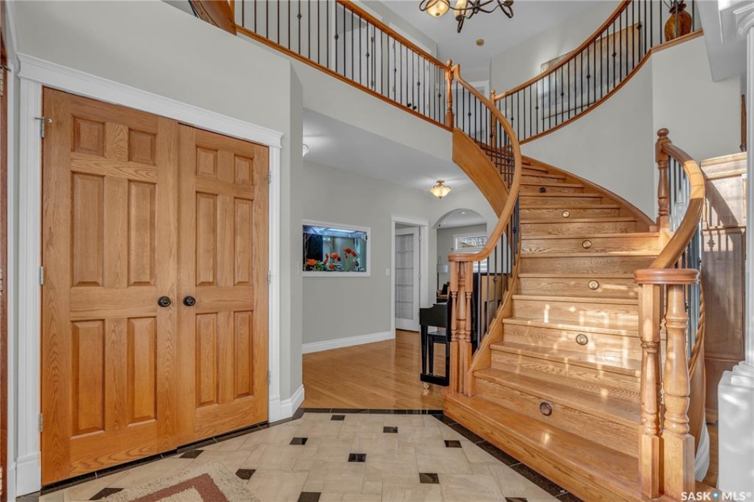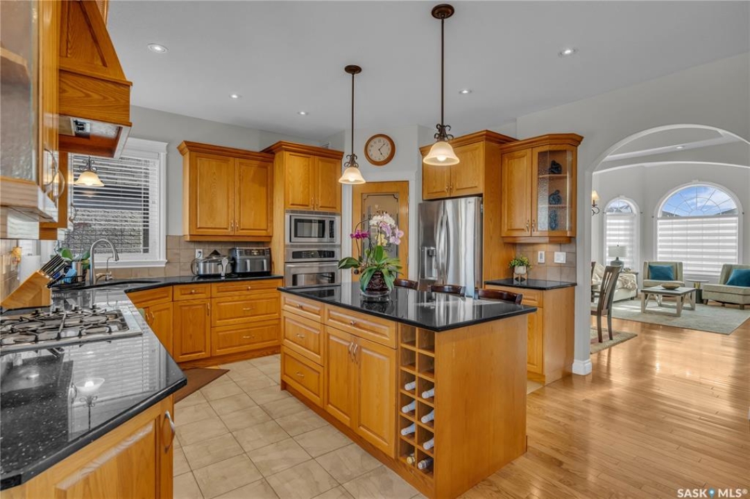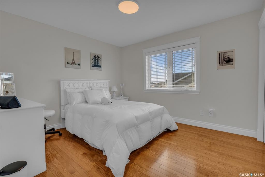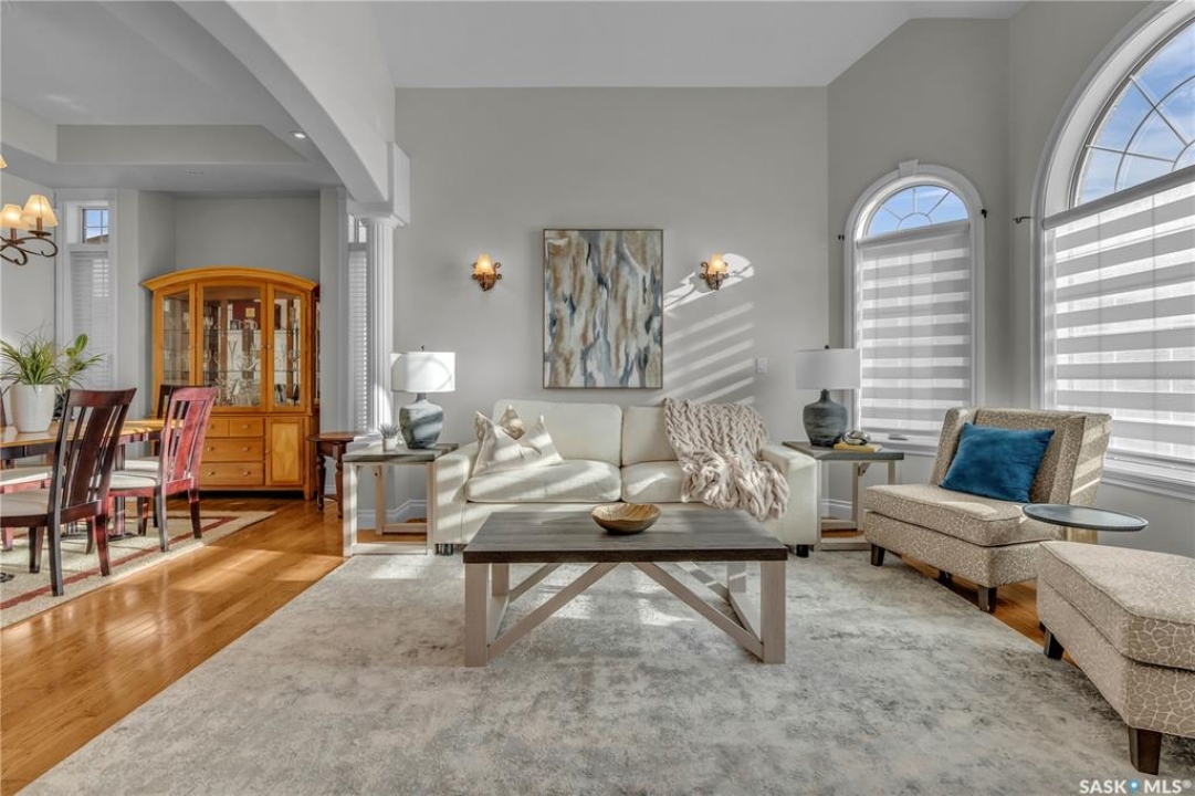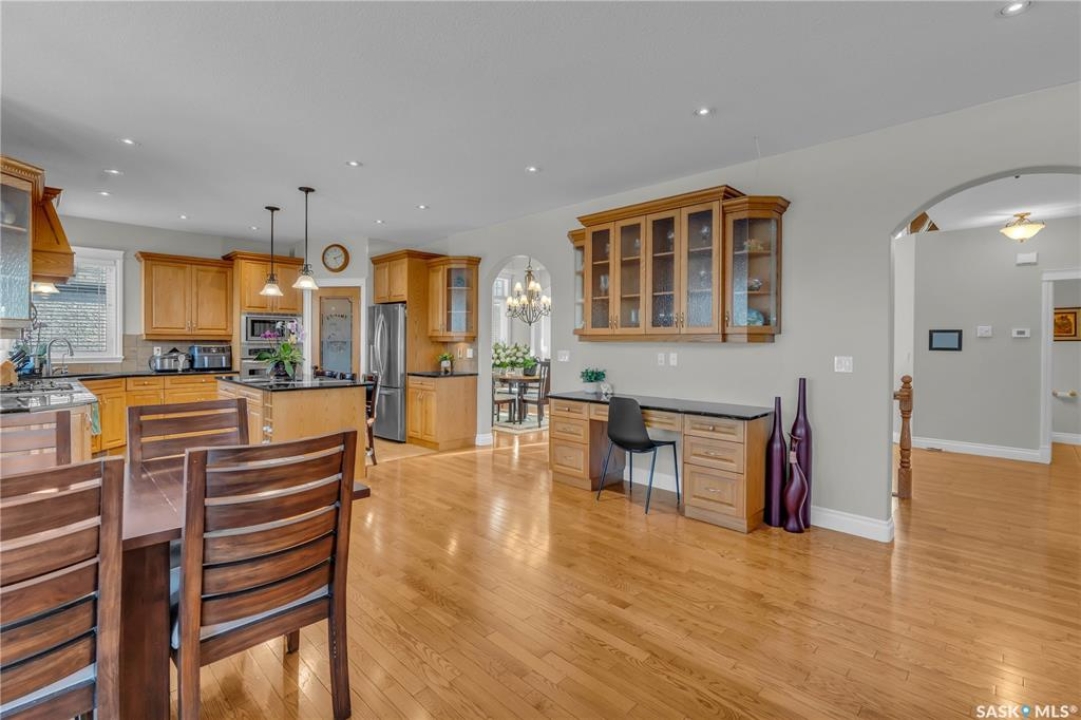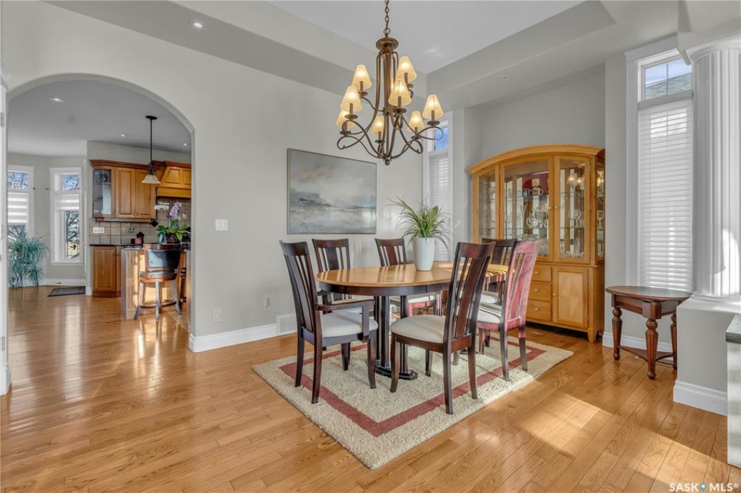 Welcome to this exceptional custom-built Yakobovich two-storey home, offering over 2,800 sq. ft. of meticulously designed living space in the sought-after Lakeridge neighborhood of Regina. With 4 bedrooms, 4 bathrooms, and an array of luxurious features, this home is perfect for families seeking both elegance and comfort. Upon entering, you are greeted by a grand entryway featuring a curved staircase, setting the tone for the sophistication found throughout the home. The main floor boasts a formal living and dining room, ideal for entertaining, along with a dedicated office space for those who work from home. The open-concept family room and dining area, situated off the beautifully appointed kitchen, create a warm and inviting atmosphere for everyday living. The kitchen is a chef's dream, with ample cabinetry, modern appliances, and heated flooring for added comfort. The laundry room is conveniently located on the main floor for easy access. Upstairs, the home features three spacious bedrooms, including a luxurious primary suite with a spa-like ensuite, complete with heated floors for ultimate relaxation. The additional bedrooms are generously sized, providing plenty of space for family members or guests. The fully developed basement includes a fourth bedroom, an additional bathroom, and a versatile recreation area. Designed for durability and peace of mind, the basement floor is heated and supported by engineered piles. Outside, the professionally landscaped yard is a true masterpiece, featuring extensive stonework that enhances the home's curb appeal and provides a serene outdoor retreat. This stunning home combines quality craftsmanship with modern luxury in one of Regina's most desirable communities. Don't miss your opportunity to own this incredible property—schedule your private viewing today!