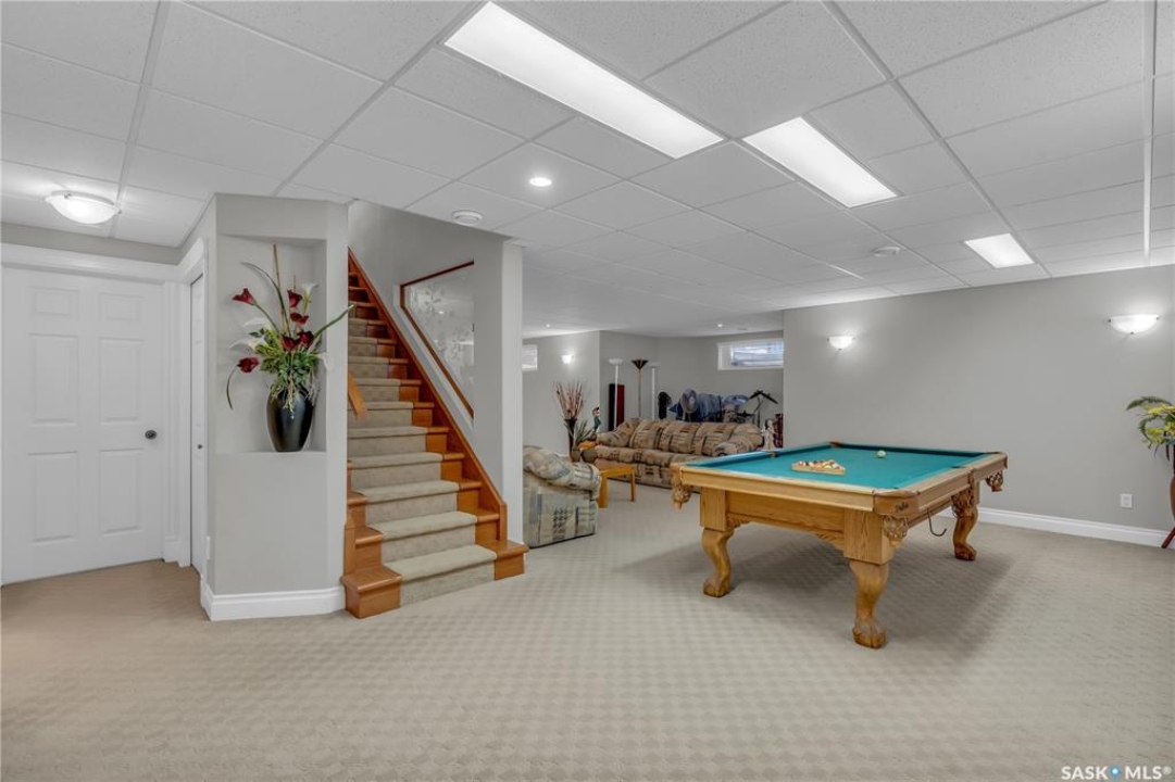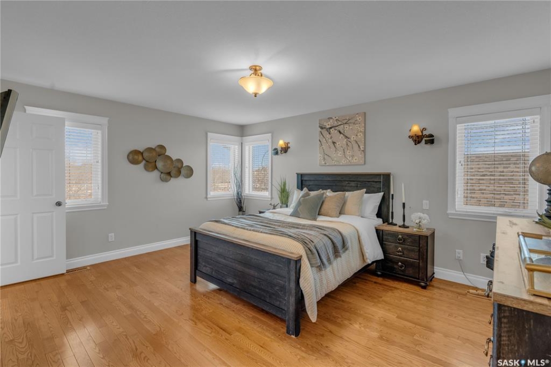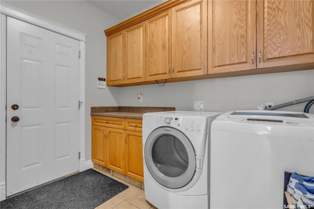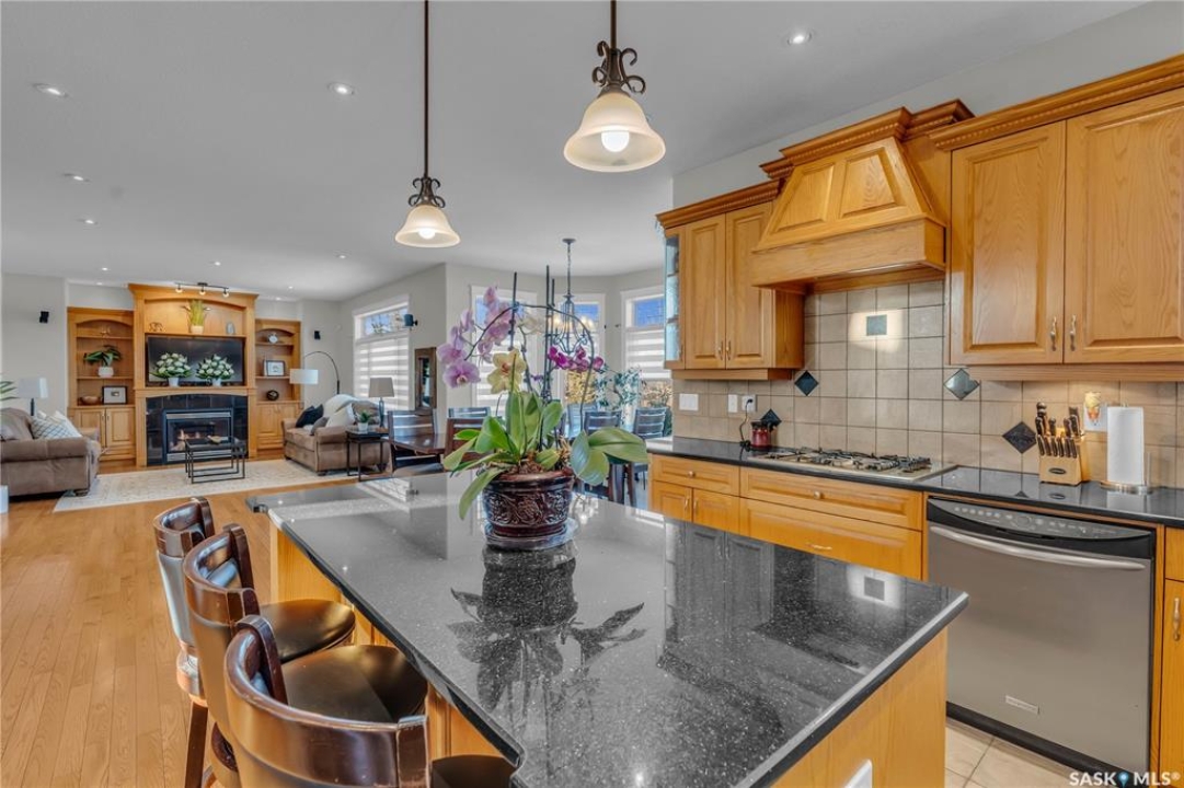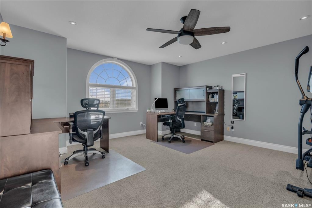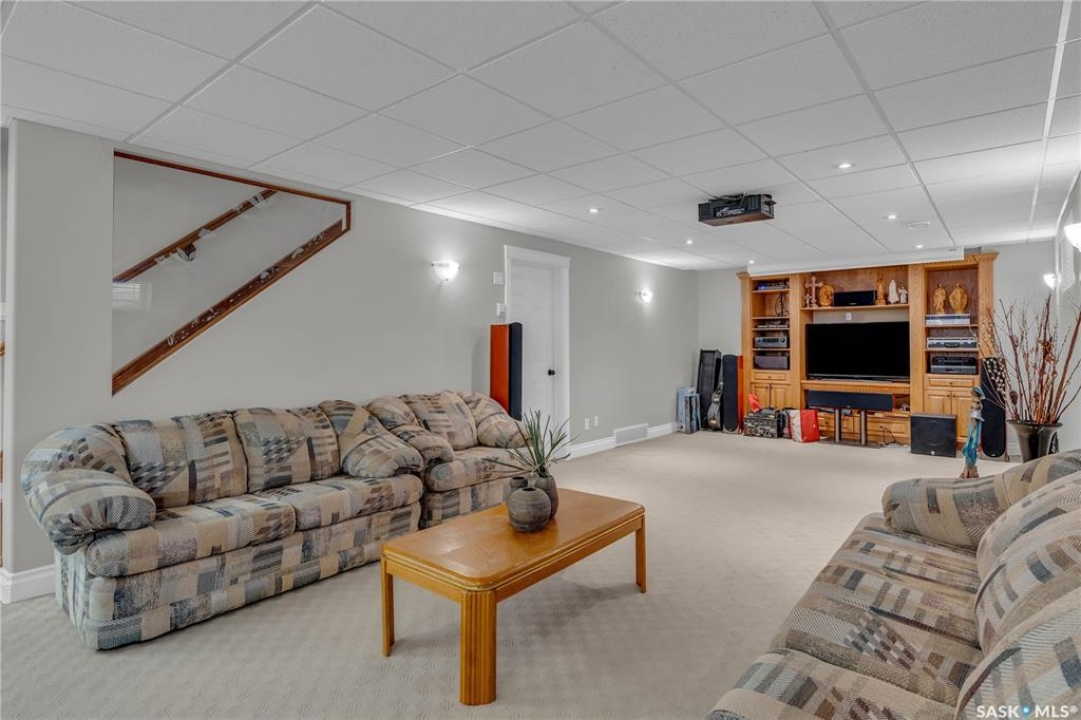 Welcome to this exceptional custom-built Yakobovich two-storey home, offering over 2,800 sq. ft. of meticulously designed living space in the sought-after Lakeridge neighborhood of Regina. With 4 bedrooms, 4 bathrooms, and an array of luxurious features, this home is perfect for families seeking both elegance and comfort. Upon entering, you are greeted by a grand entryway featuring a curved staircase, setting the tone for the sophistication found throughout the home. The main floor boasts a formal living and dining room, ideal for entertaining, along with a dedicated office space for those who work from home. The open-concept family room and dining area, situated off the beautifully appointed kitchen, create a warm and inviting atmosphere for everyday living. The kitchen is a chef's dream, with ample cabinetry, modern appliances, and heated flooring for added comfort. The laundry room is conveniently located on the main floor for easy access. Upstairs, the home features three spacious bedrooms, including a luxurious primary suite with a spa-like ensuite, complete with heated floors for ultimate relaxation. The additional bedrooms are generously sized, providing plenty of space for family members or guests. The fully developed basement includes a fourth bedroom, an additional bathroom, and a versatile recreation area. Designed for durability and peace of mind, the basement floor is heated and supported by engineered piles. Outside, the professionally landscaped yard is a true masterpiece, featuring extensive stonework that enhances the home's curb appeal and provides a serene outdoor retreat. This stunning home combines quality craftsmanship with modern luxury in one of Regina's most desirable communities. Don't miss your opportunity to own this incredible property—schedule your private viewing today!