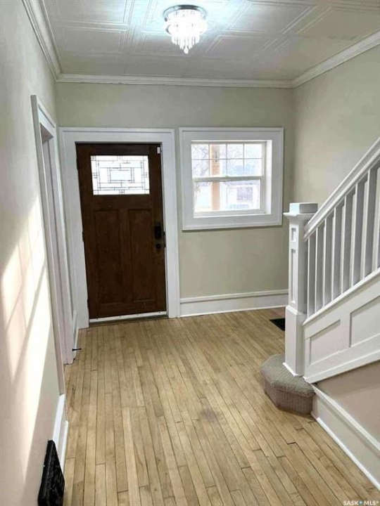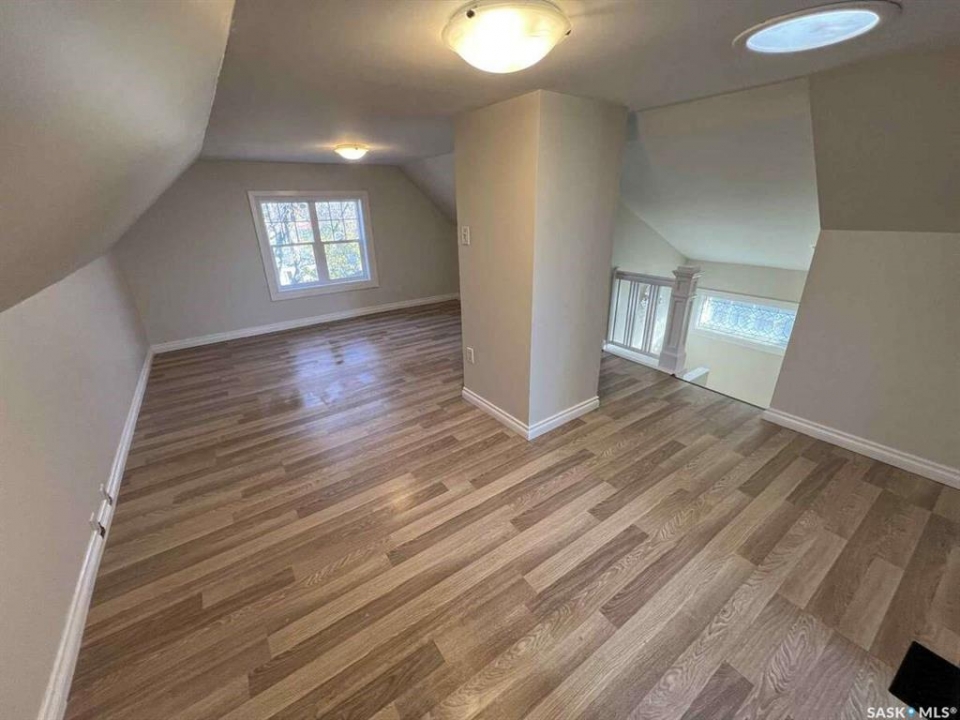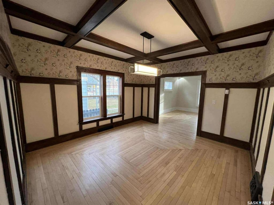 For more information, please click the "More Information" button. Welcome to this beautifully renovated 5-bedroom, 2-bath character home in the Avenues, where timeless craftsmanship meets modern comfort. The inviting living room features an original decorative (non-functional) fireplace that adds charm, while the dining area showcases wood beams and a coffered ceiling, highlighting the home's heritage appeal. Refinished hardwood floors flow throughout, and the updated kitchen offers quartz countertops, new cabinetry, and a bright, functional layout. Upstairs are four spacious bedrooms and a fully updated 4-piece bathroom, and the third floor provides a large primary suite with ensuite or flexible use—ideal as a family room, home office, or creative space. In 2025, full-height, engineered concrete basement walls were poured and city-inspected, creating a solid foundation and ready-to-develop area; additional upgrades include newer vinyl windows, siding, shingles, and a 2020 high-efficiency furnace with 200-amp service. The backyard offers off-street parking for two vehicles, adding everyday convenience. Located in a quiet, established neighbourhood close to both elementary and post-secondary schools and everyday amenities, this is a rare opportunity to own a beautifully restored character home that combines heritage charm with structural integrity, modern updates, and ample space to call home.