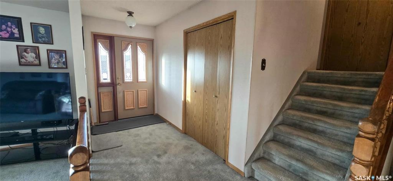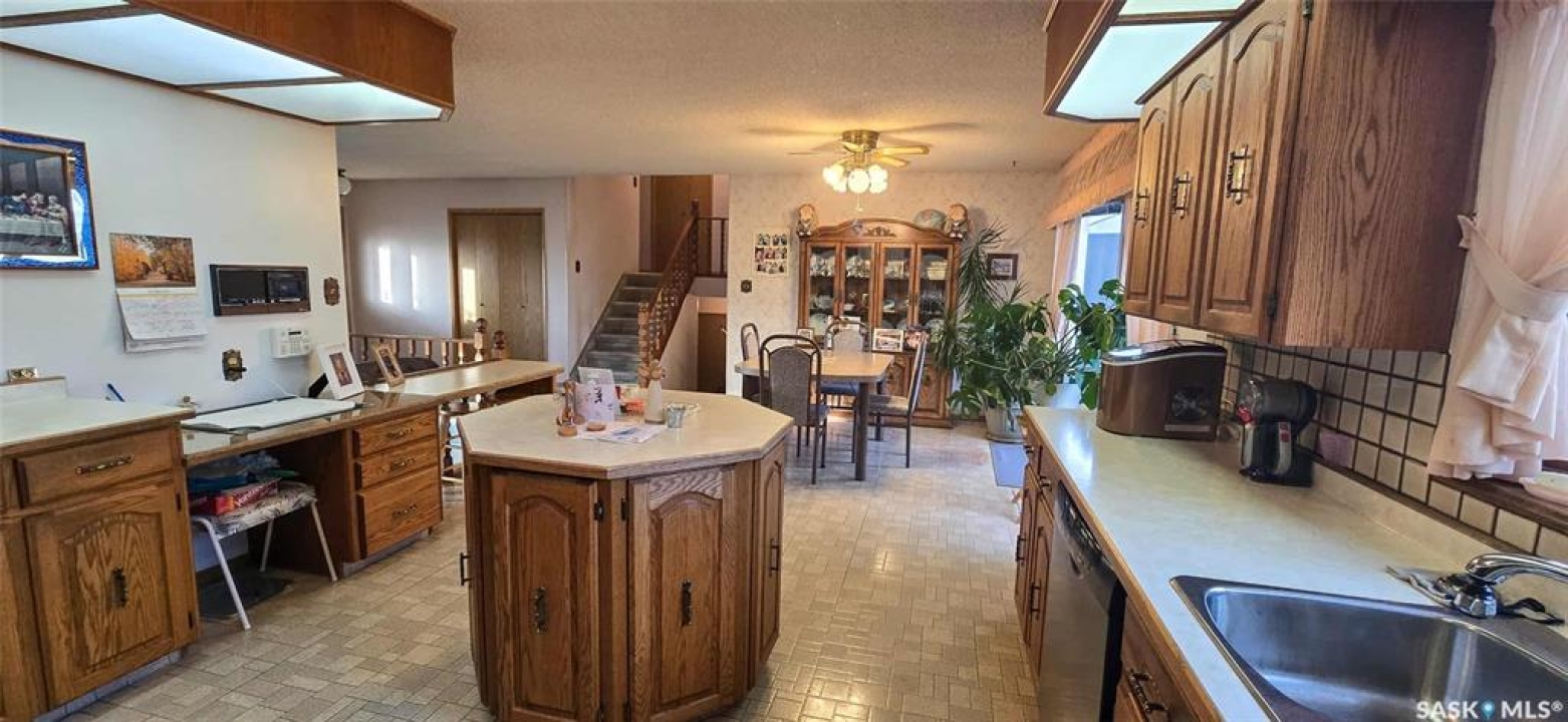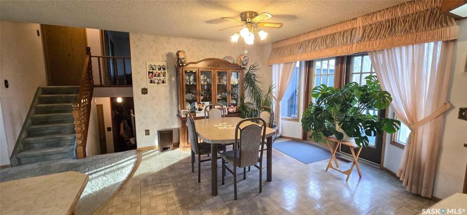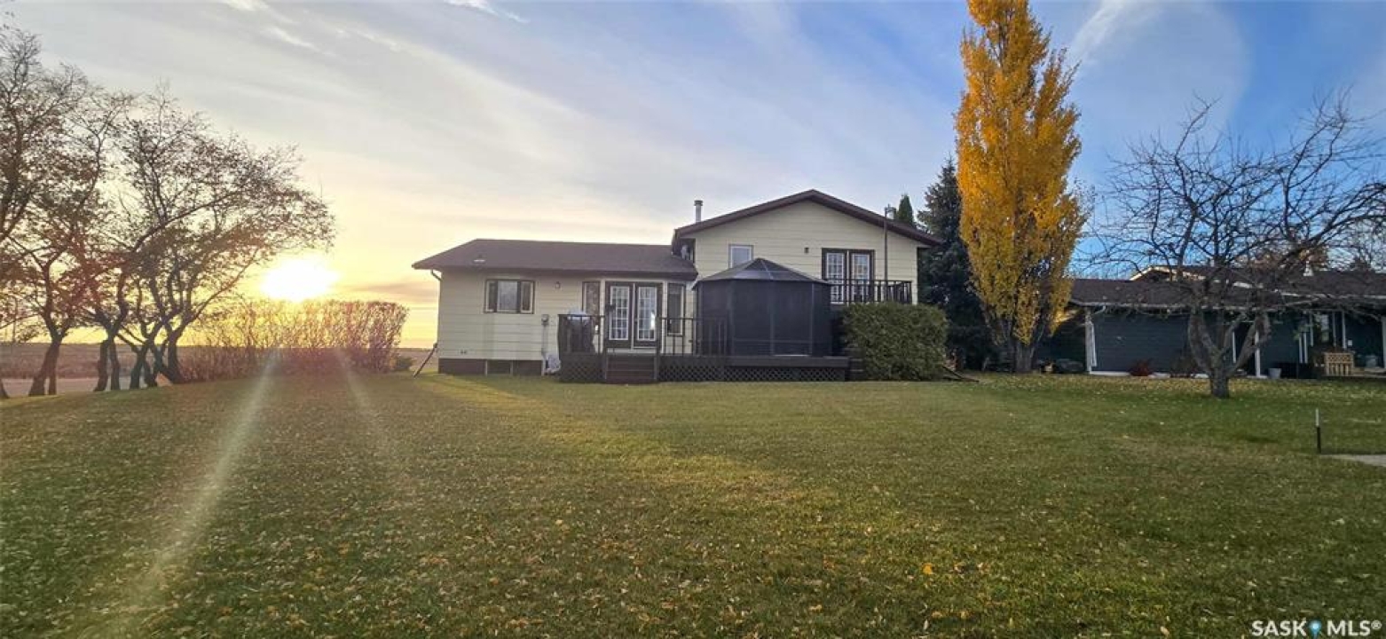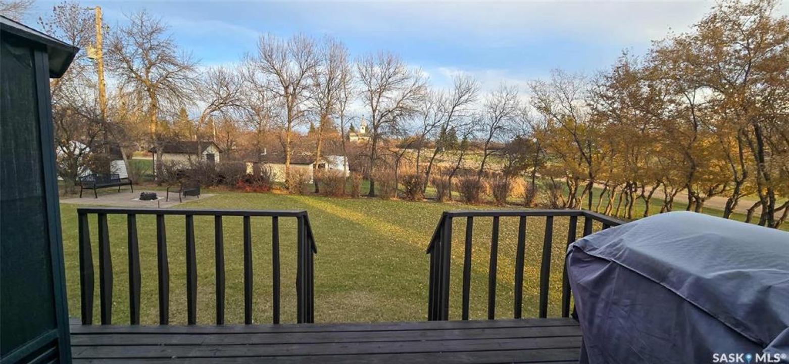 Welcome to this well-cared-for family home in the friendly town of Neudorf. Custom built in 1985 by the well-known Clarence Steininger of Grenfell, this quality home has had only two owners-both of whom have lovingly maintained it over the years. The main floor offers a spacious front entrance leading into a bright, inviting living room filled with natural light from multiple windows. The adjoining open-concept dining area and kitchen are ideal for family gatherings. The kitchen features an abundance of custom oak cabinetry, a built-in desk, and a unique walk-in corner pantry.....perfect for the family cook. Upstairs, you'll find a large primary bedroom, two additional generous bedrooms, and a 4-piece bathroom complete with a relaxing Jacuzzi tub. The conveniently located laundry room on this level adds extra functionality to the home. The first lower level offers a cozy family room with a wood-burning fireplace-perfect for those chilly Saskatchewan winters-as well as a 3-piece bathroom with shower. Direct access to the insulated double attached garage is also on this level. On the lowest level, there's a large recreation space ready for your personal touch, plus room to add a fourth bedroom if desired. You'll also find the mechanical room, extra storage, and a cold room on this level. Outside, the park-like yard spans over 20,000 sq. ft. and is beautifully treed for privacy, just across the road from the golf course. Enjoy summer evenings in the enclosed gazebo on the deck, completely bug-free. Added value features include a 9' x 12' garden shed and a 12' x 26' single detached garage-perfect for extra storage or toys. This beautiful property has been loved and cared for from day one and is ready for its next chapter. Make it yours today!