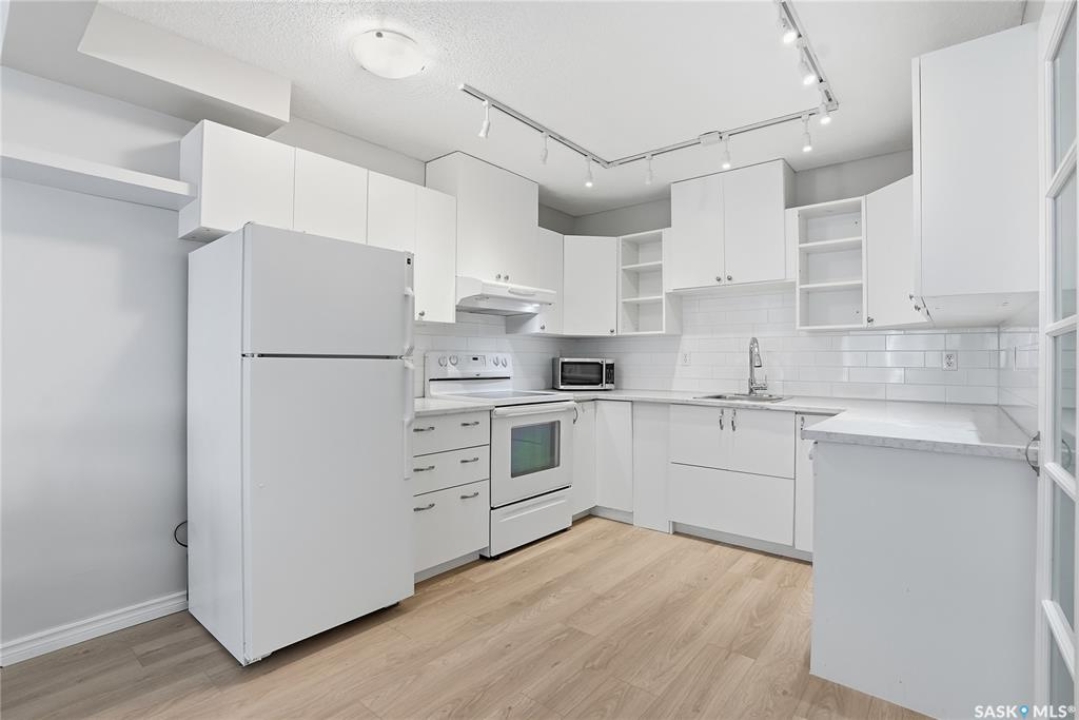 This freshly renovated, bright and charming 1-bedroom, 1-bathroom condo in Eastview is perfect for a first-time home buyer or investor. This unit has fresh vinyl plank flooring and paint, it is fresh as a daisy! Located on the quiet ground floor, it features a spacious living room with a large picture window that lets in loads of natural light, connecting to an open kitchen and dining area with updated white cabinets, subway tile backsplash, a pantry, and included appliances. The bedroom is a comfortable size with a large closet, and the bathroom has been refreshed with a newer vanity and flooring. Enjoy the convenience of in-suite laundry, storage anrea and an updated entryway closet. The building is pet-friendly (with Board approval) and had roof work completed in 2020. Close to parks, schools, bus routes, and all the amenities of Eastview, this condo is a great place to call home!