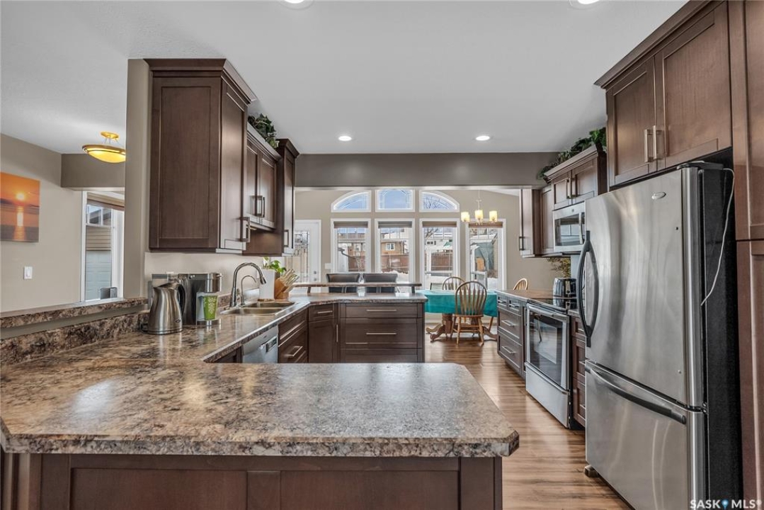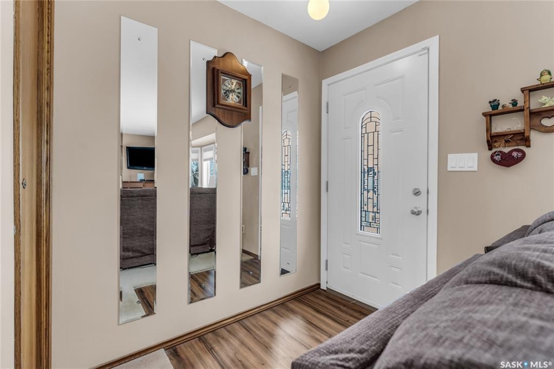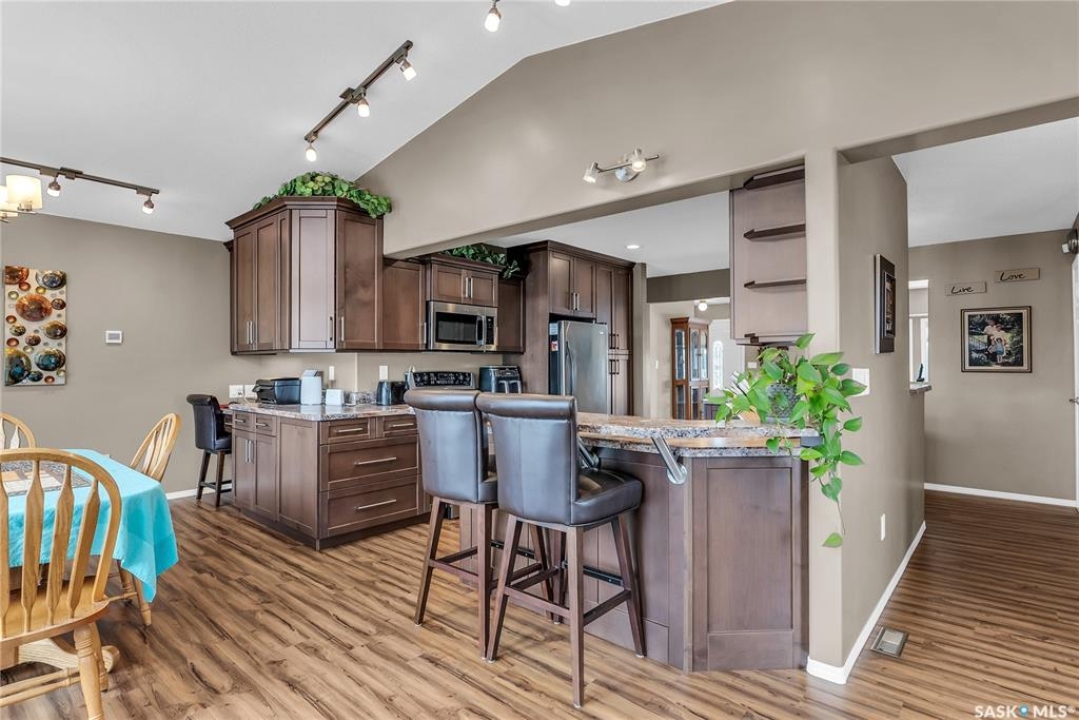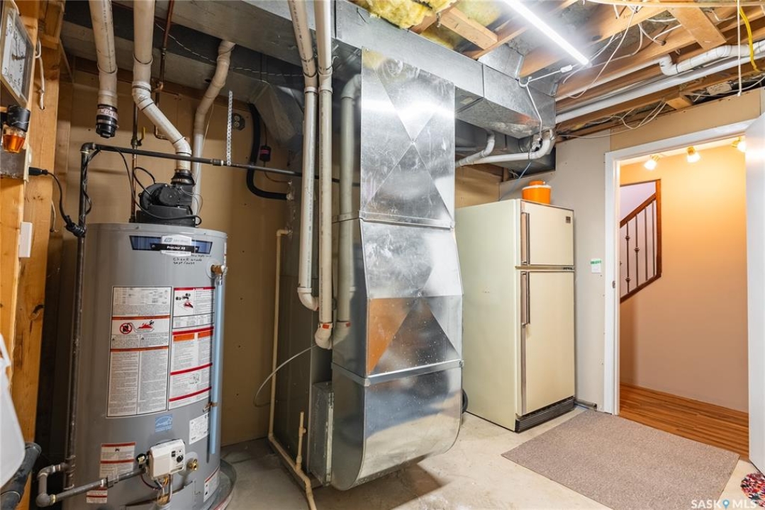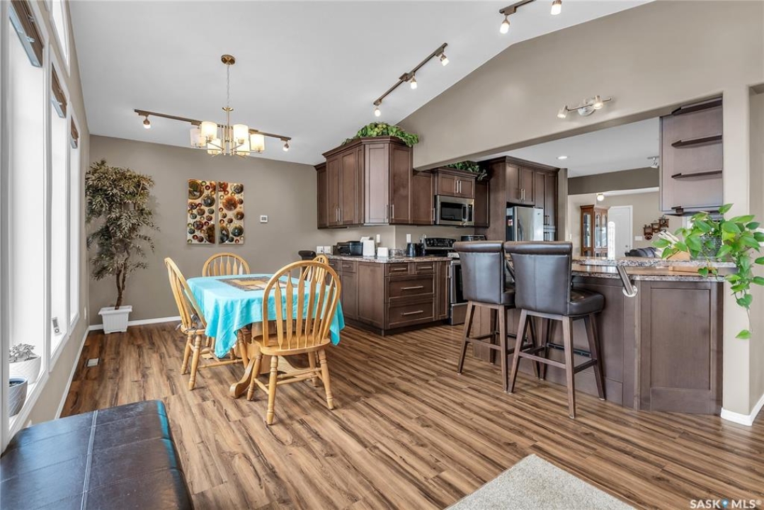 Stunning Renovated Bungalow in Biggar, SK! This beautifully updated 1,500 sq. ft. bungalow offers modern comfort with a vaulted ceiling, open-concept main floor, and a chef's kitchen featuring ample counter space and energy-efficient appliances. The main floor includes three bedrooms, with a primary suite boasting a 3-piece ensuite and three large closets, a spa-like main bath with a soaker tub, and convenient main-floor laundry. The fully finished basement expands your living space with a huge family room, an additional bedroom, a full bath, and ample storage. Recent upgrades include a new air conditioner (2022), furnace (2012), hot water heater (2021), and 30-year shingles (2012). Outside, enjoy a two-tiered front lawn with perennials, a double detached heated garage, repaved driveway, and gravel RV storage. There is also a nice sized garden shed and the home owners have a Generac to power the house in case of power outages! Located in a wonderful community near schools, parks, and amenities, this home is a must-see—schedule your showing today!