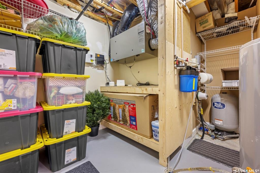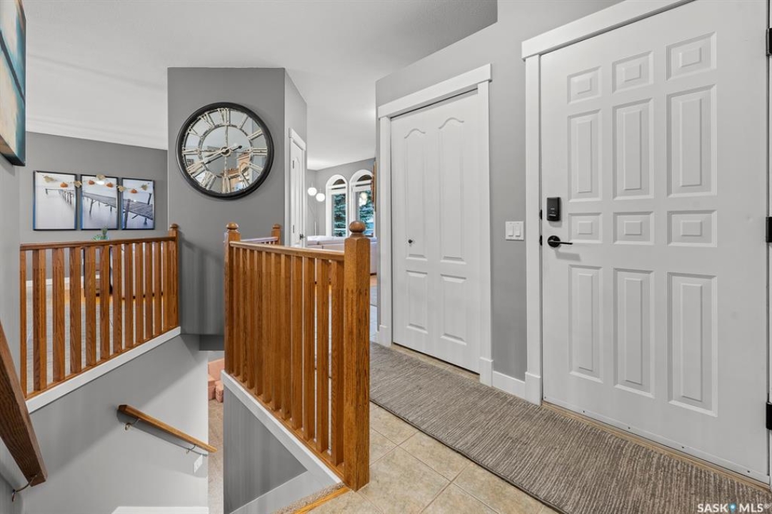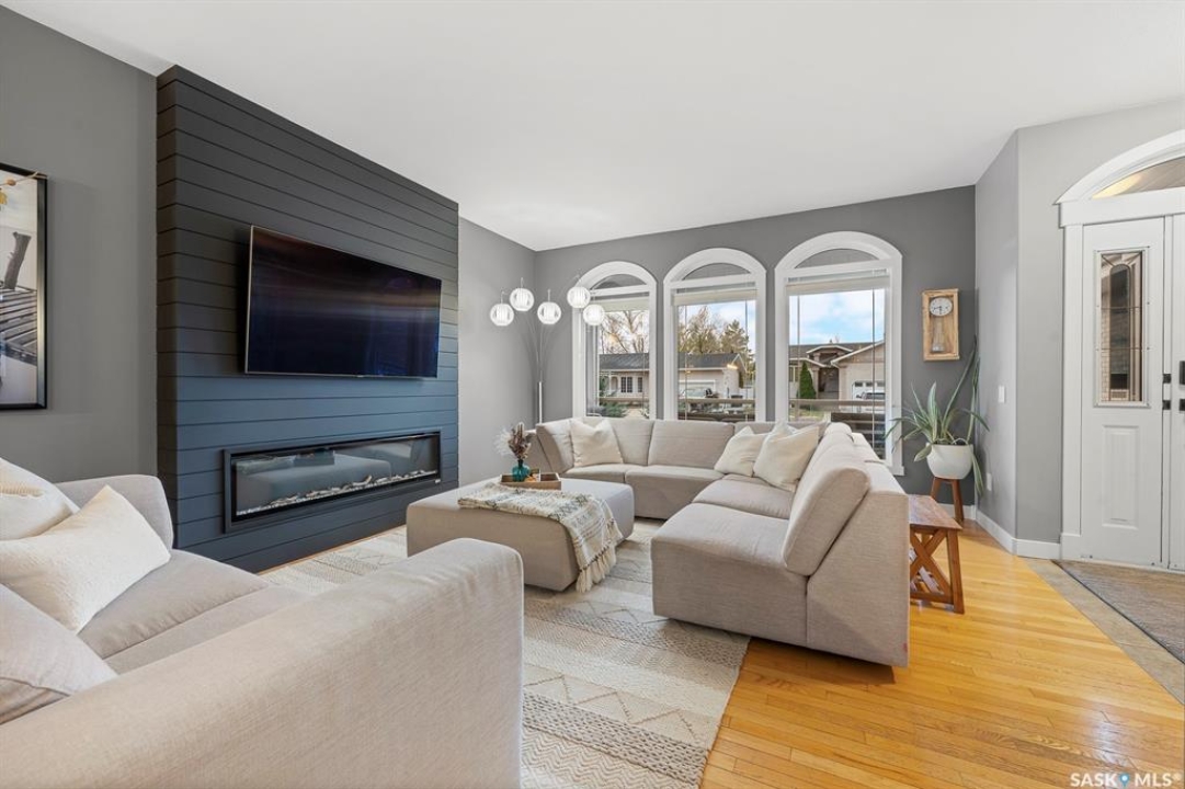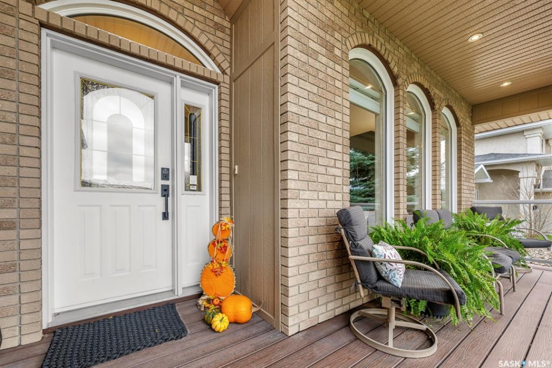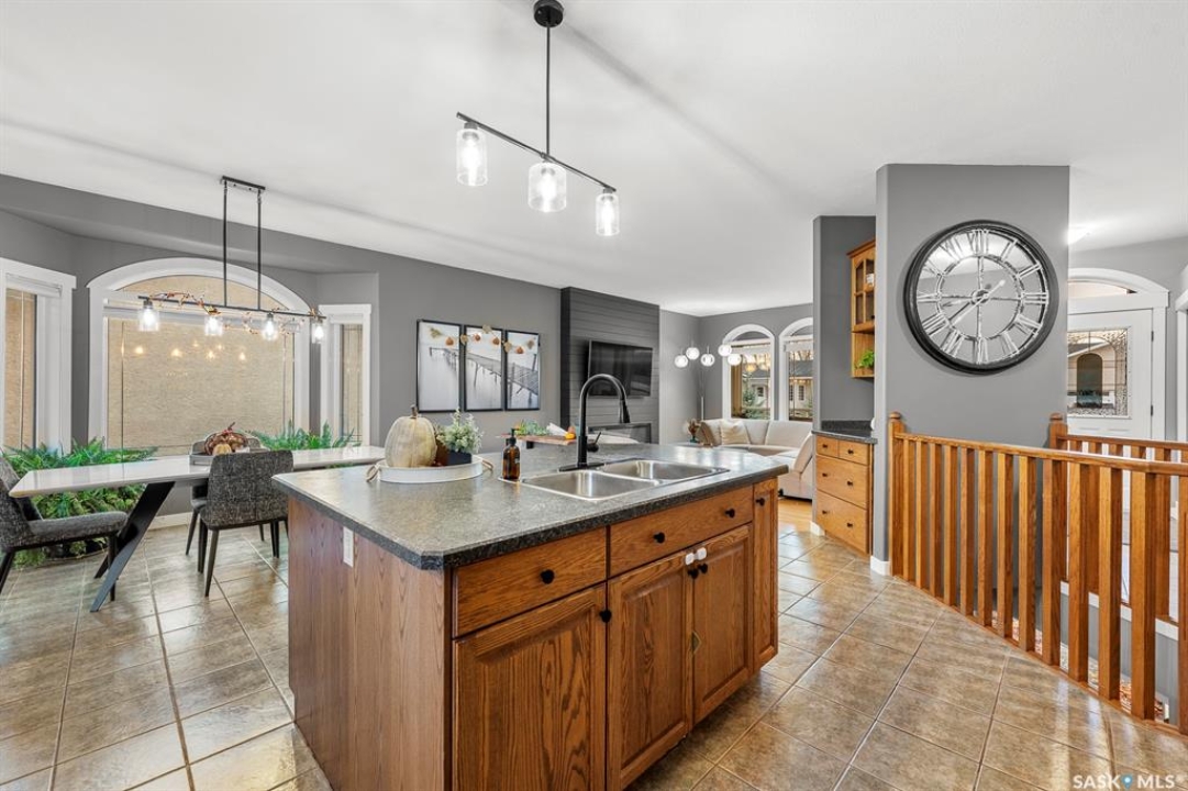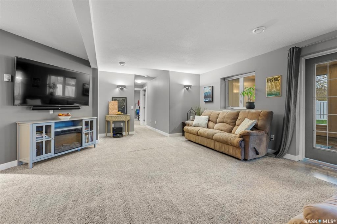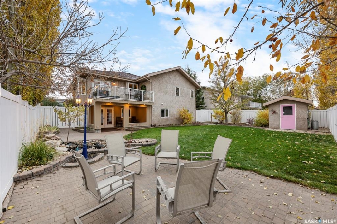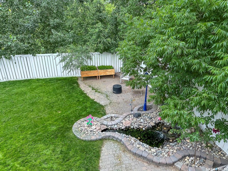 Welcome home to this 1,376 sq ft walkout bungalow in Pilot Butte. This 4-bedroom, 3-bath home offers a balance of comfort, style, and a serene setting. The open-concept main floor is bright and welcoming, featuring a kitchen that flows into the dining and living areas. Step out from the kitchen onto the new deck with a natural gas hookup. The primary bedroom has vaulted ceilings and an ensuite with heated floors and a custom walk-in shower. A second bedroom, full bath, and main floor laundry complete this level. The spacious walkout basement offers large windows, a cozy gas fireplace, and two additional bedrooms with a full bathroom. The covered lower patio overlooks the landscaped backyard, mature trees, and pond with an environmental reserve backdrop. Highlights include a heated double garage, exterior RV parking, a private well, and a covered south-facing front porch. Convenient access to Highways 1 and 46 provides a quick and easy commute to Regina. Recent updates: Garage heater (2015), HRV (2015), Eavestroughs (2015), Central air (2015), Shingles (2017), Kitchen appliances (2020), Water heater (2020), Ensuite (2022), Washer/dryer (2025), Back deck (2025). Located on a quiet street with no thru traffic and within walking distance to Pilot Butte School, this home is move-in ready and waiting to welcome you.