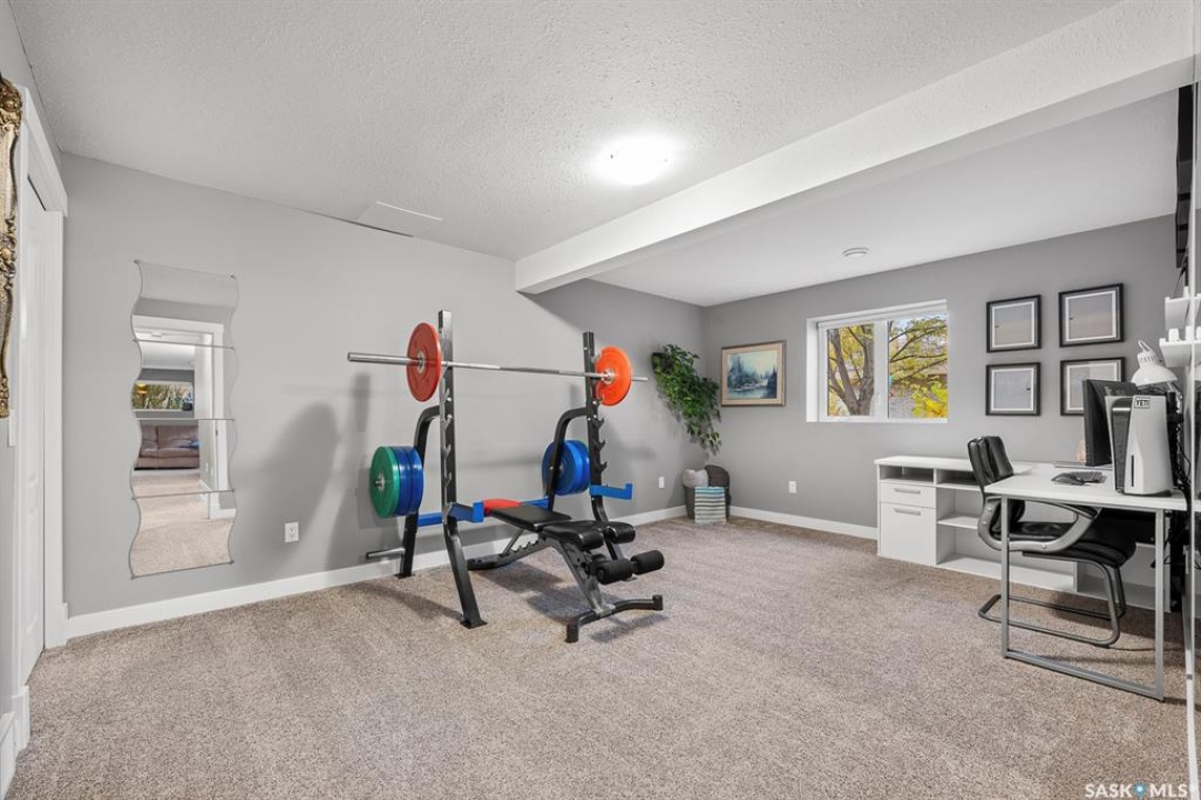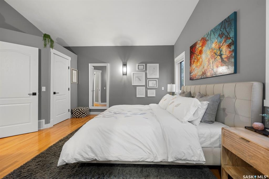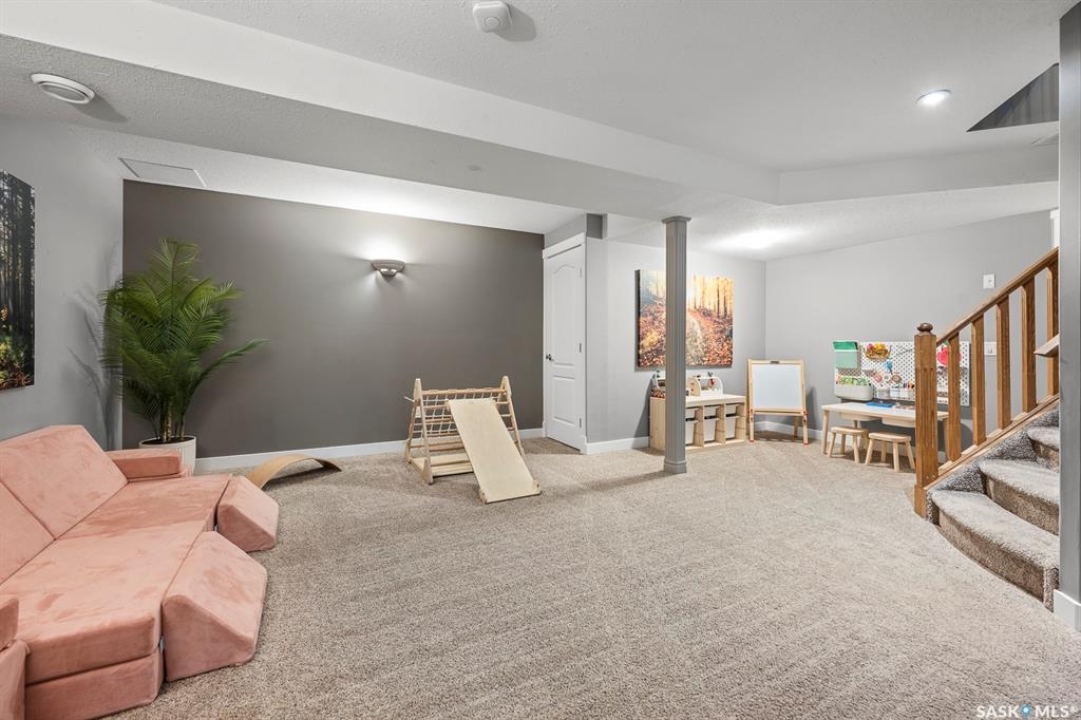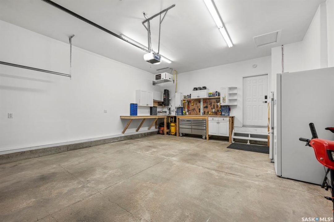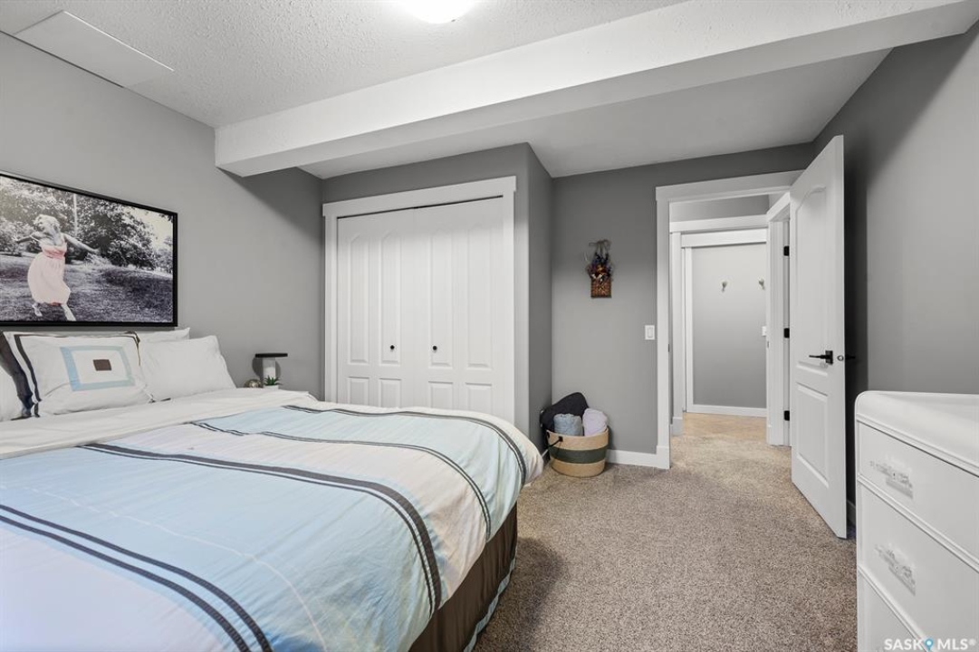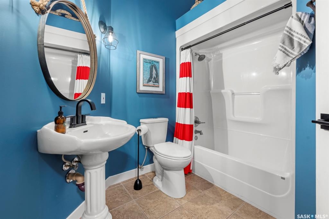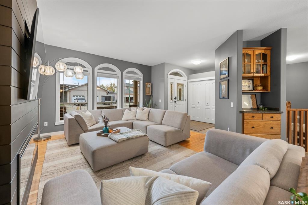 Welcome home to this 1,376 sq ft walkout bungalow in Pilot Butte. This 4-bedroom, 3-bath home offers a balance of comfort, style, and a serene setting. The open-concept main floor is bright and welcoming, featuring a kitchen that flows into the dining and living areas. Step out from the kitchen onto the new deck with a natural gas hookup. The primary bedroom has vaulted ceilings and an ensuite with heated floors and a custom walk-in shower. A second bedroom, full bath, and main floor laundry complete this level. The spacious walkout basement offers large windows, a cozy gas fireplace, and two additional bedrooms with a full bathroom. The covered lower patio overlooks the landscaped backyard, mature trees, and pond with an environmental reserve backdrop. Highlights include a heated double garage, exterior RV parking, a private well, and a covered south-facing front porch. Convenient access to Highways 1 and 46 provides a quick and easy commute to Regina. Recent updates: Garage heater (2015), HRV (2015), Eavestroughs (2015), Central air (2015), Shingles (2017), Kitchen appliances (2020), Water heater (2020), Ensuite (2022), Washer/dryer (2025), Back deck (2025). Located on a quiet street with no thru traffic and within walking distance to Pilot Butte School, this home is move-in ready and waiting to welcome you.