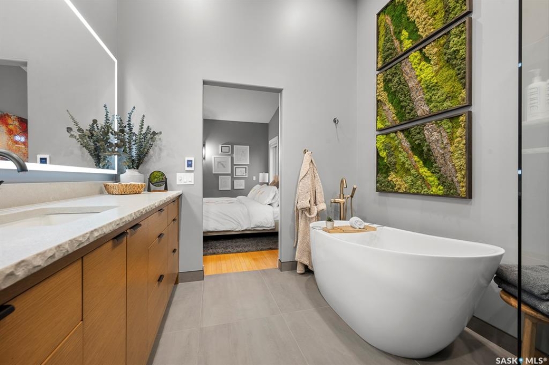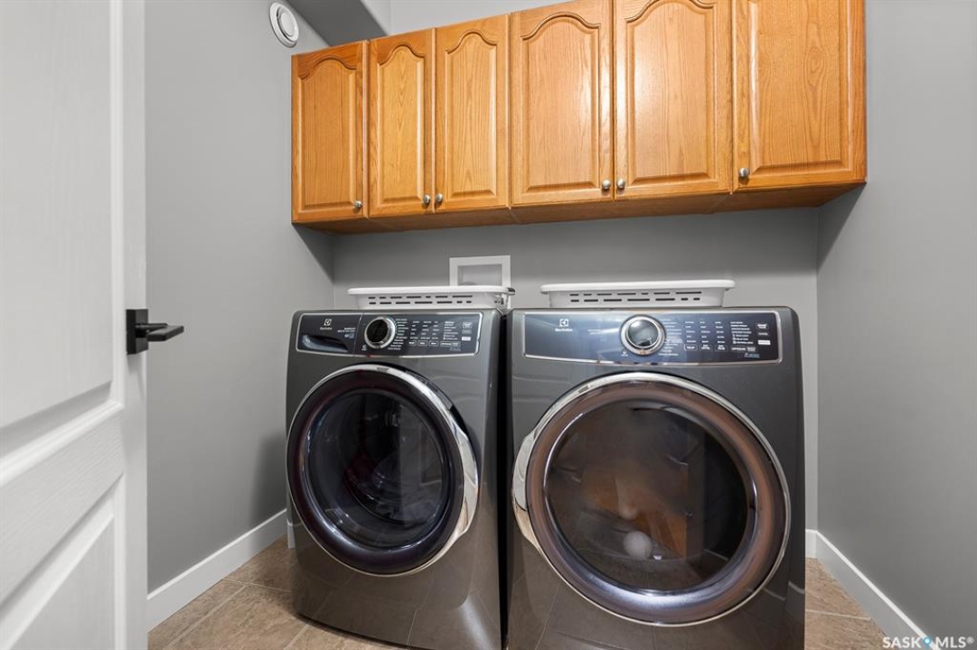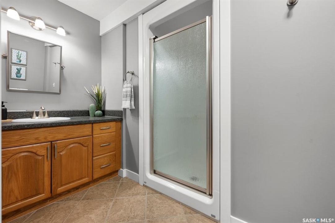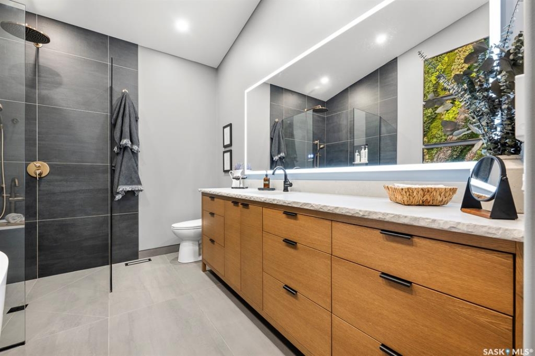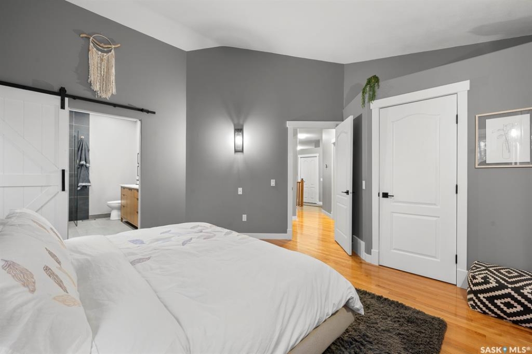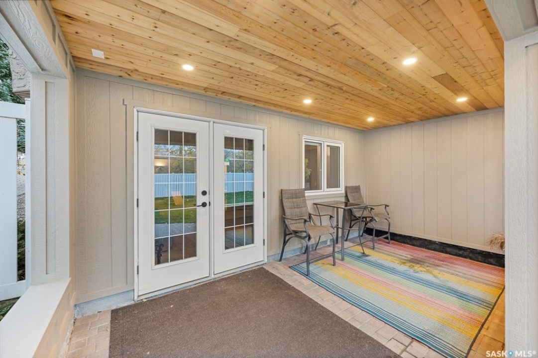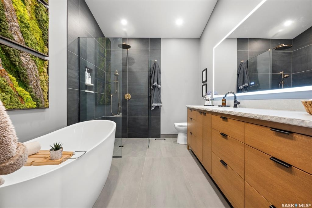 Welcome home to this 1,376 sq ft walkout bungalow in Pilot Butte. This 4-bedroom, 3-bath home offers a balance of comfort, style, and a serene setting. The open-concept main floor is bright and welcoming, featuring a kitchen that flows into the dining and living areas. Step out from the kitchen onto the new deck with a natural gas hookup. The primary bedroom has vaulted ceilings and an ensuite with heated floors and a custom walk-in shower. A second bedroom, full bath, and main floor laundry complete this level. The spacious walkout basement offers large windows, a cozy gas fireplace, and two additional bedrooms with a full bathroom. The covered lower patio overlooks the landscaped backyard, mature trees, and pond with an environmental reserve backdrop. Highlights include a heated double garage, exterior RV parking, a private well, and a covered south-facing front porch. Convenient access to Highways 1 and 46 provides a quick and easy commute to Regina. Recent updates: Garage heater (2015), HRV (2015), Eavestroughs (2015), Central air (2015), Shingles (2017), Kitchen appliances (2020), Water heater (2020), Ensuite (2022), Washer/dryer (2025), Back deck (2025). Located on a quiet street with no thru traffic and within walking distance to Pilot Butte School, this home is move-in ready and waiting to welcome you.