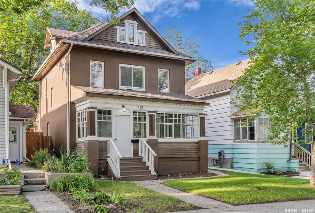 Welcome home to 112 27th Street West located in the beautiful community of Caswell Hill. This classic 2 & 1/2 storey home features exceptional value with 6 bedrooms and 3 bathrooms. The front door welcomes you into a generous mudroom that has south exposure for that beautiful sunlight. This main floor opens up into an expansive layout with tall ceilings. The living room connects well with the dining space and provides the perfect setting for hosting! The kitchen is located further to the back with a window over looking the yard and deck access. A full 4 piece bathroom is in the front hallway as well as main floor laundry. Step up to the 2nd floor to find 2 large bedrooms. There is potential to split the largest room into 2 with an impressive 21 x 12 dimension! A 4 piece bathroom is located here with dual vanity and shower/tub. On the 3rd floor you will find 2 large bedrooms with that half storey charm! The basement is accessed from a separate entrance and features a suite with 2 large bedrooms, a family room, 4 piece bathroom, and a galley kitchen with laundry adjacent. The yard is private and fenced with convenient access to a rear parking space and detached garage. Other notable options include high efficient furnace and water heater, a connection for adding central A/C (visible on the roof), new paint, and updated flooring throughout most of the home. Conveniently located with walking distance to downtown and Sask Polytechnic - whether you are looking for a home with a mortgage helper or an investment opportunity, this could be it! Call today to book your own showing