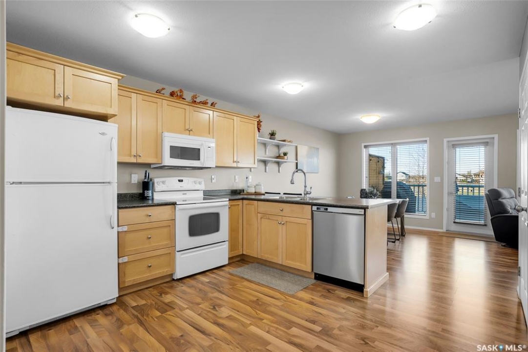 Style, functionality and a fabulous price point! Step inside where the main floor sports laminate flooring that's basically resistant to whatever chaos life throws at it, spilled juice boxes, muddy paw prints, your questionable dance moves, you name it. The maple kitchen is a storage lover's dream with more cupboard space than you knew what to do with, plus a pantry for hoarding snacks in peace. The sit-up peninsula is perfect for rushed breakfasts, homework struggles, or pretending you're on a cooking show while you microwave leftovers. Speaking of which, all your appliances are included, stove, fridge, dishwasher, and over-the-range microwave, because we believe cooking should be convenient, even if your skills are "creative." The dining area flows into a living room that opens onto a massive west-facing deck, where you can sip your evening beverage of choice while gazing at the parks and sports fields behind you, feeling smugly superior to everyone without a view. Upstairs, the primary bedroom features a good size closet, plus two more bedrooms for kids, guests, or that craft room you swear you'll set up. The 4-piece bathroom is stylish enough to make your morning routine feel almost glamorous. The developed basement adds a family room for movie marathons, a 3-piece bath (because bathroom traffic jams are real), and laundry facilities that make doing chores slightly less terrible. Oh, and there's a 2-piece powder room on the main floor for guests, now that's convenient!. Location-wise, you're a short stroll from the elementary school, perfect for families or anyone who enjoys the distant sound of recess without actually being responsible for it. Just a couple blocks from all amenities! This isn't just a home; it's your future happy place. Come see it before someone funnier than you snatches it up!