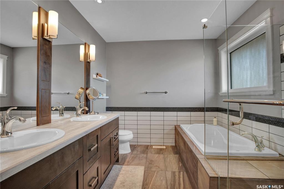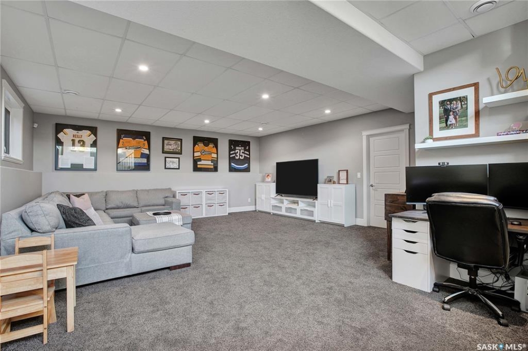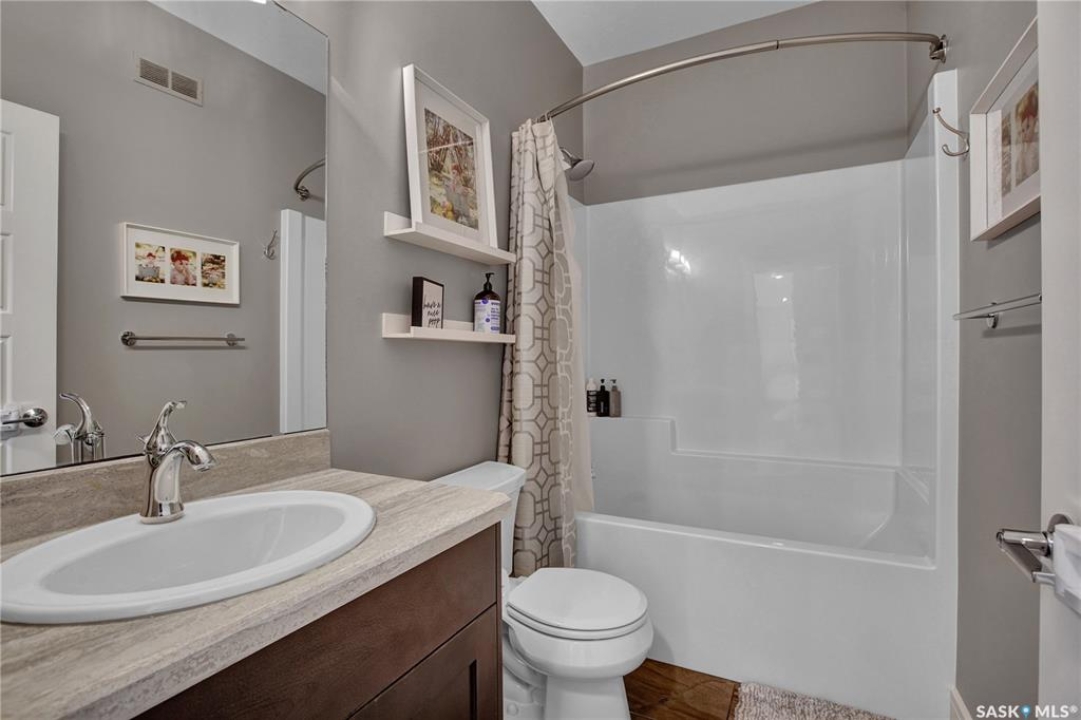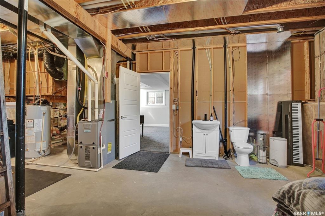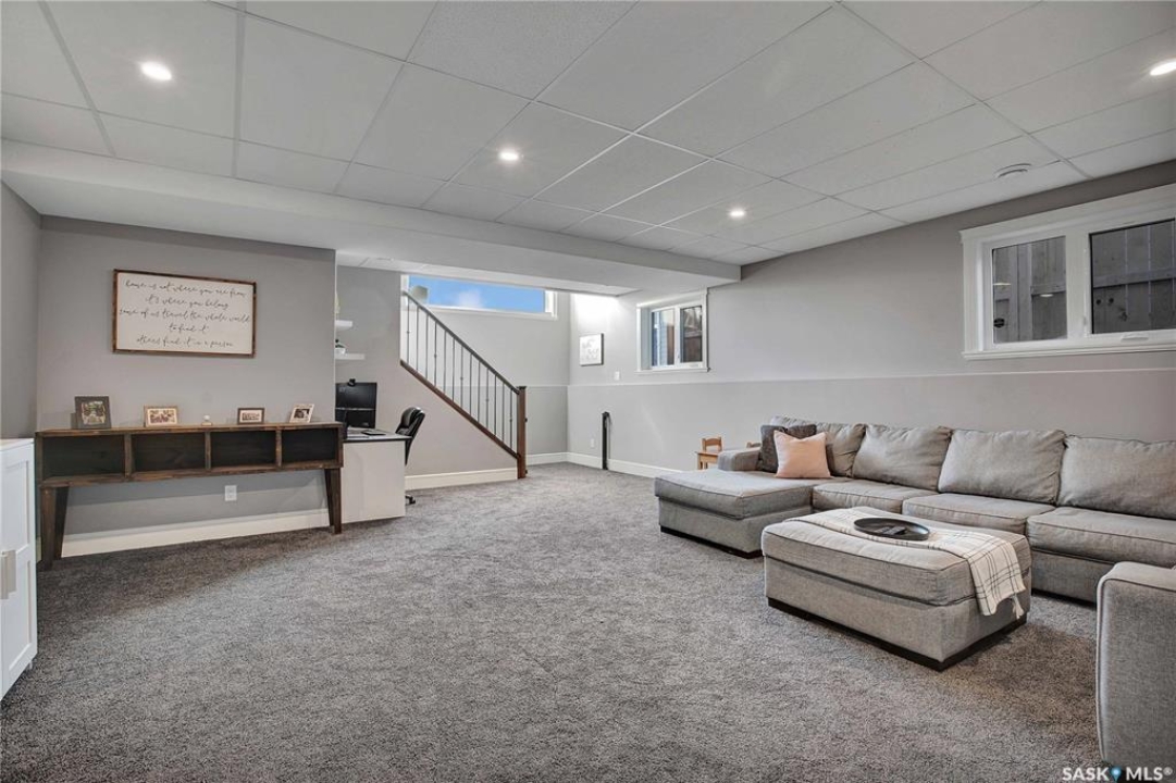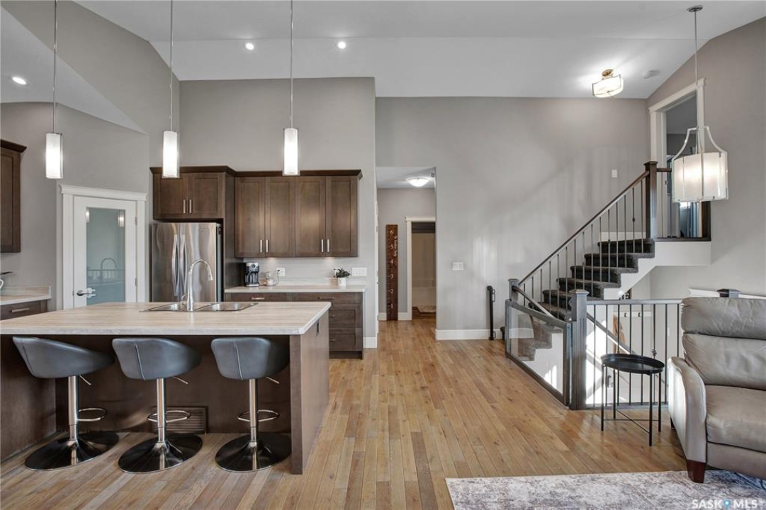 Welcome to this stunning custom-built modified bi-level by the reputable Cherry Creek Homes, perfectly positioned on a massive 52' x 130' lot backing green space and walking paths. With its low-maintenance exterior featuring stone accents and stylish hardy board siding, this home offers timeless curb appeal and lasting quality. Step inside to an open-concept layout highlighted by vaulted ceilings, hardwood flooring, and elegant maple railings. The large windows flood the home with natural light, creating a bright and inviting atmosphere. The spacious kitchen is designed for both function and style, featuring a corner pantry, gas range, and large island—perfect for family gatherings and entertaining. The main floor offers two generous bedrooms, while the private primary suite is tucked away on its own level—a true escape complete with a five-piece ensuite. The basement development is well underway, offering a large family room area, a rough-in for a future bathroom (currently featuring a temporary toilet and sink), an additional bedroom area, and a spacious utility/storage room. Enjoy the outdoors with a beautifully landscaped yard featuring mature trees, underground sprinklers, and a west-facing deck—ideal for relaxing evenings in the sun. There is an exposed aggregate patio and covered storage space under the deck and natural gas BBQ hookup. Simply move in and enjoy—this home combines thoughtful design, quality craftsmanship, and a peaceful location backing green space.