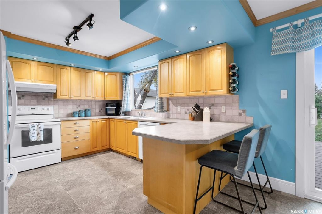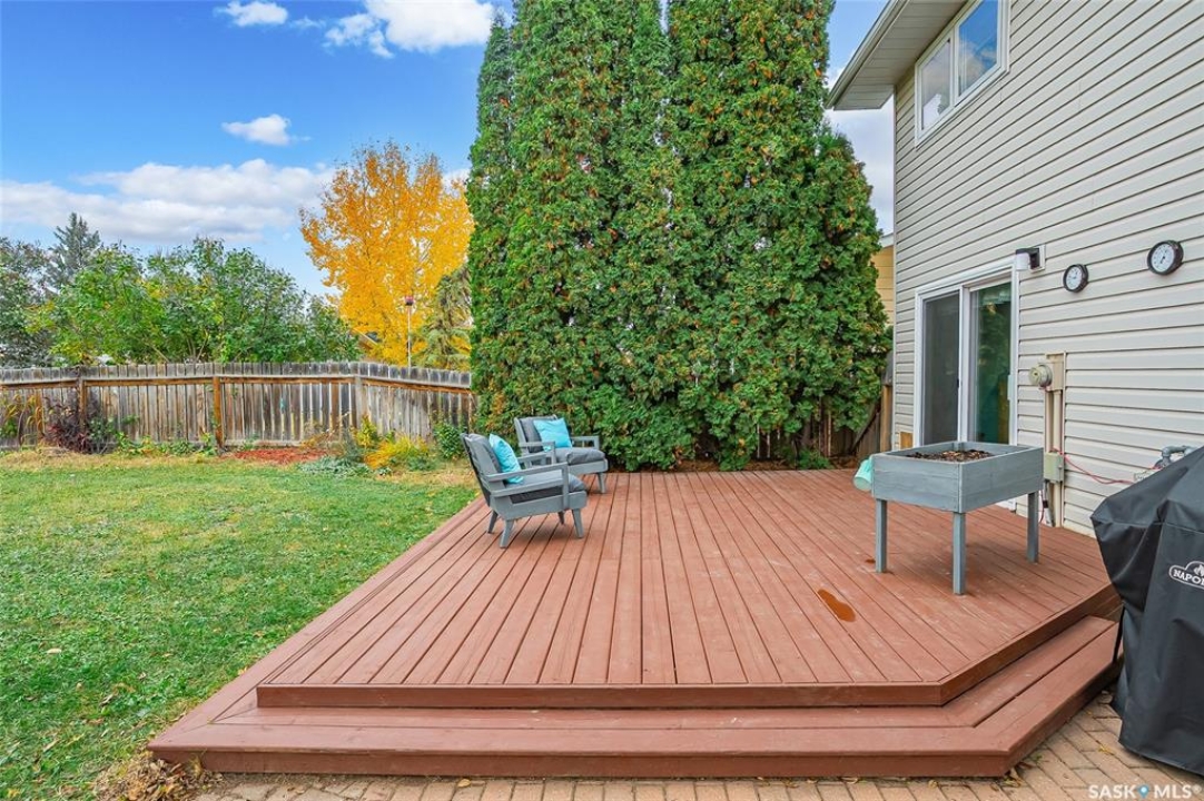Welcome to this spacious 2-story family home in the highly sought-after River Heights neighbourhood! Backing directly onto parks and schools, this property offers the special blend of comfort, space, and location. Step inside to a bright, inviting interior featuring hardwood flooring in the living room and large windows that fill the home with natural light. The open kitchen and dining area include patio doors leading to a large deck, perfect for outdoor dining and entertaining. With 4 bedrooms and 4 bathrooms, there's plenty of room for the whole family. The home also offers many conveniences like central air conditioning, new furnace (2025), new water softener (2025), on-demand water heater, and underground sprinklers to keep the mature yard lush and green. Enjoy relaxing on the covered front verandah, and take advantage of the single attached garage plus a 4-car driveway for ample parking. Fridge, stove, microwave, dishwasher, washer and dryer are included. The spacious private backyard is fully fenced and offers a patio, deck, firepit for cozy gatherings, shed, and fruit bearing foliage. Don't miss this wonderful opportunity to own a family-friendly home in River Heights, surrounded by green space and close to all amenities!