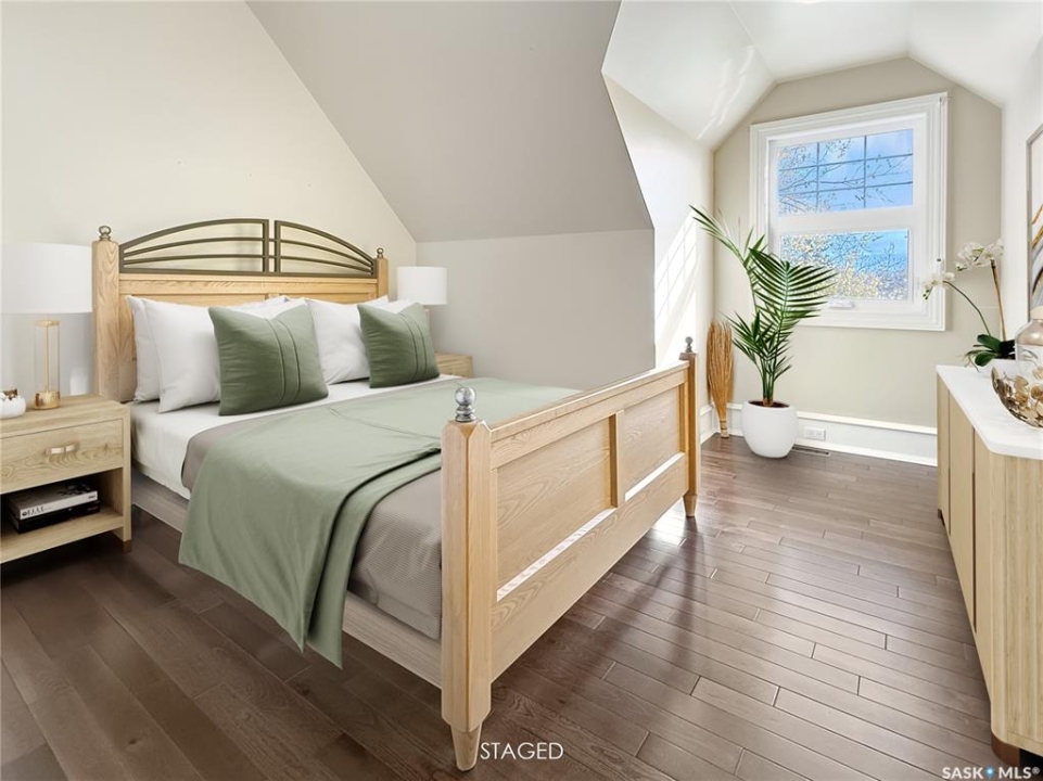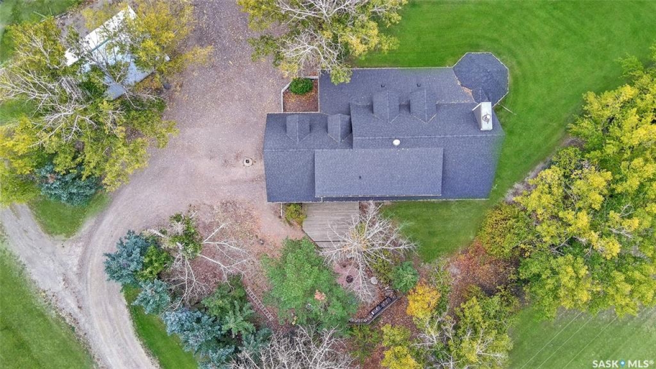 Discover an exquisite blend of privacy and convenience with this luxurious "in city" acreage. Nestled on the eastern edge of the city, this picturesque 1.5-acre property is enveloped by a lush shelter belt and bordered by a serene creek, offering stunning views. The craftsman-style home exudes charm with its elegant wraparound veranda, second-story dormers, and expansive windows that flood the interior with natural light.Upon entering, you'll be greeted by a graceful staircase leading to the second floor. To one side is a sitting room, the other side hosts a fully renovated eat-in kitchen and dining area. The kitchen features rich cabinetry, Stone countertops, a large island with seating, and SS appliances, all overlooking the beautiful yard. The main floor also includes a bedroom/office, a newly renovated bathroom, and a large laundry room that connects to the breezeway and a heated double car garage.The second floor boasts a charming bonus room with open-beam construction and a balcony overlooking the yard. Two additional bedrooms and a guest bath are located in the opposite wing. The master suite is a true highlight, featuring window seats, a closet spanning the entire wall, a private balcony, and a newly renovated five-piece en suite with a standalone tub and walk-in shower.The lower level offers a large family room, a fifth bedroom, a renovated three-piece bathroom, and an oversized utility/storage room. The home equipped with a zoned furnace(2024), two water heaters (one dedicated to floor heating in the garage and kitchen), central air and shingles installed(8 years ago). Additional updates include vinyl siding, triple-pane PVC windows, fresh paint throughout, and updated trim. The property is connected to city power and water, with a newly replaced septic tank and pump.Outside, the veranda leads to a fully enclosed hot tub room with panoramic windows. The property also includes an additional shop, a cozy fire pit area, and an additional back deck.