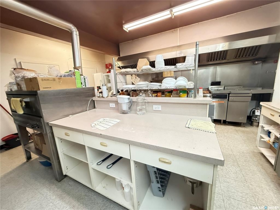 An excellent one-time opportunity to own both the land and building for your very own fast-food outlet in Gravelbourg! This property is fully equipped and ready for operation just move in and start serving. It offers ample seating and parking, a complete kitchen setup with all the essential equipment, two large coolers, and plenty of storage space to keep your operations running smoothly. Ideally located directly across from the school, this spot guarantees consistent foot traffic and great visibility. Don't miss this rare chance to establish your business in a thriving community with everything already in place!
