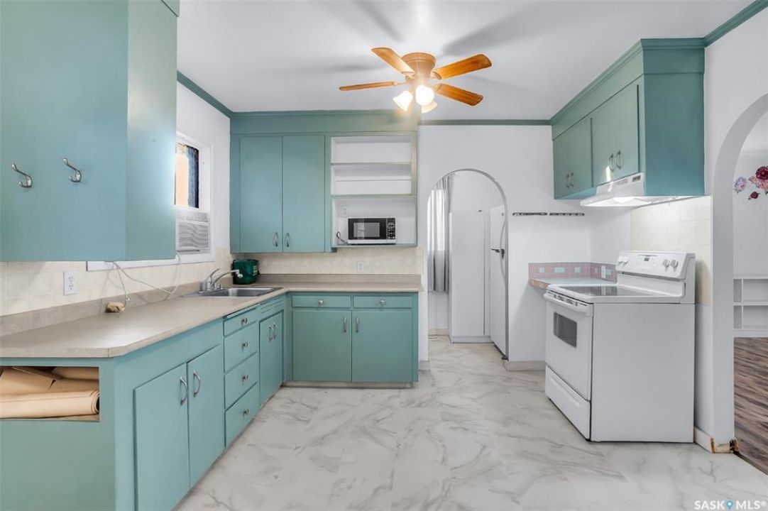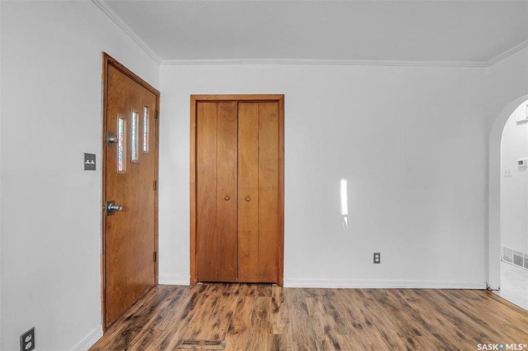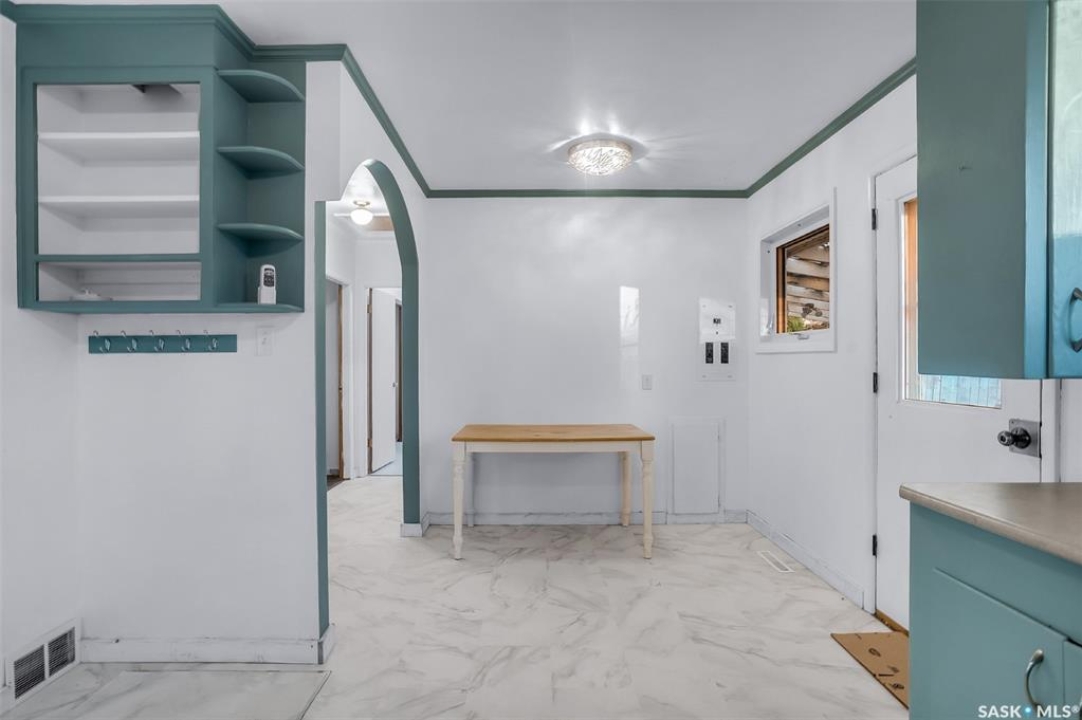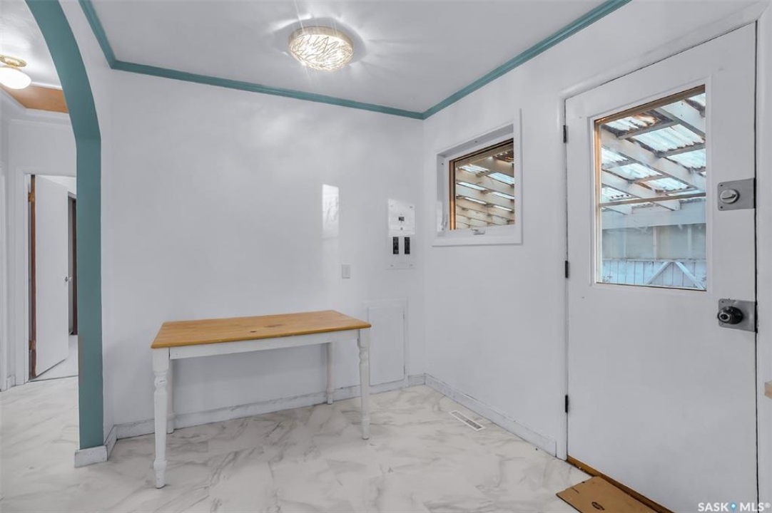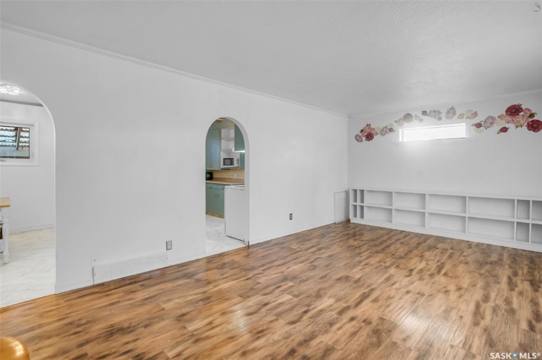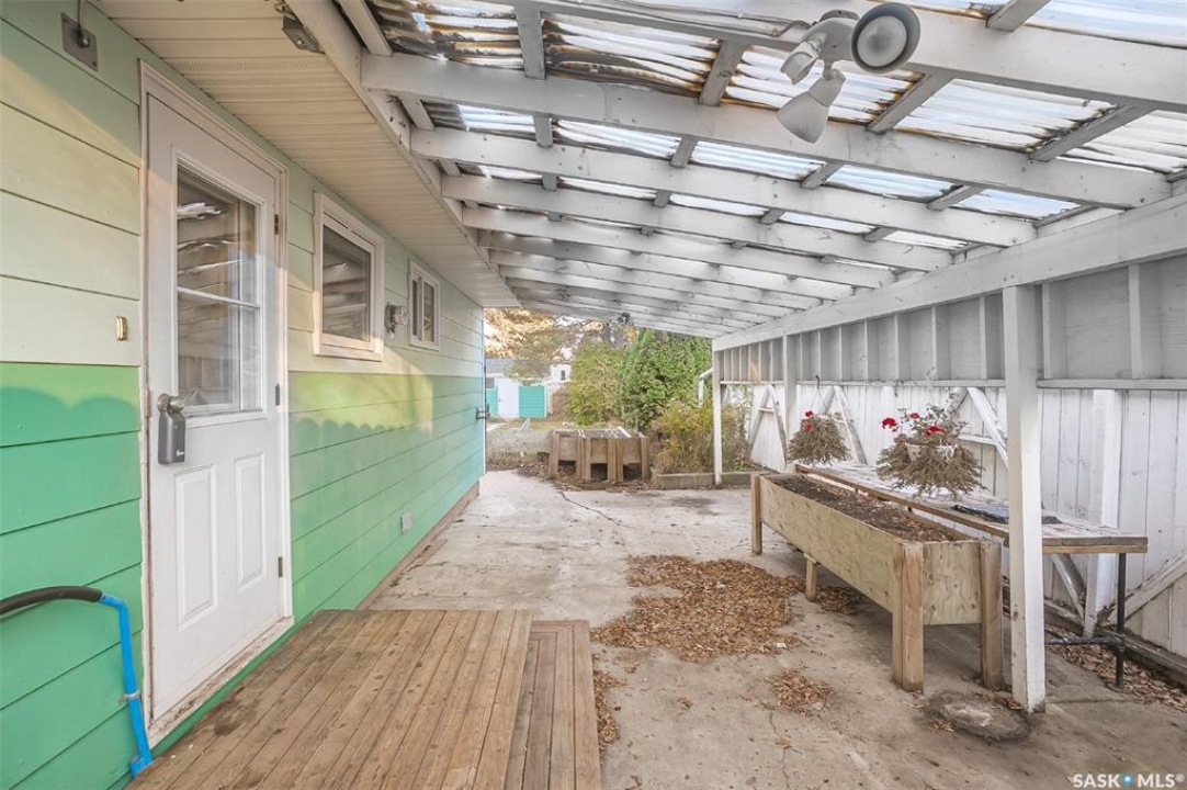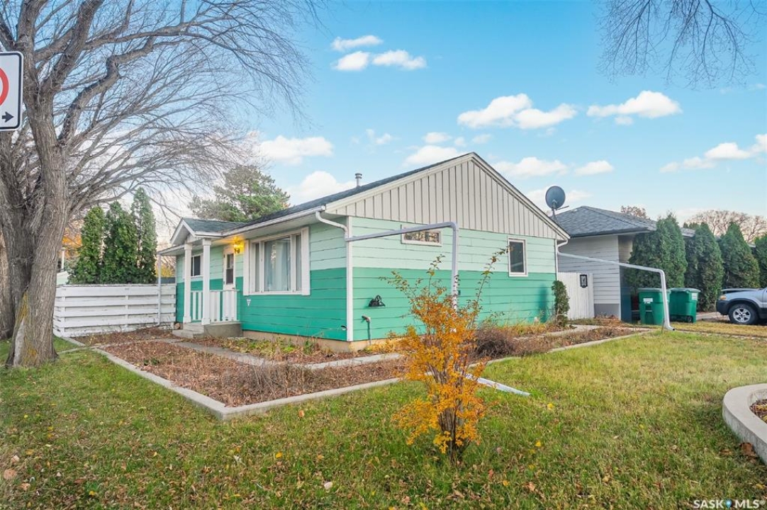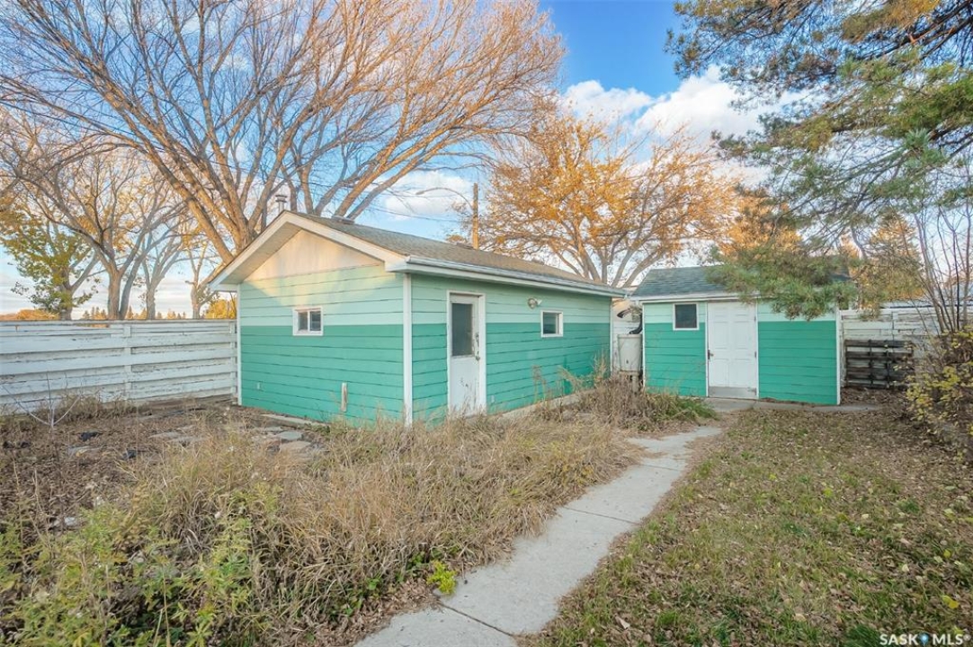 Welcome to 338 Avenue V North — a cozy and refreshed home in Mount Royal! This charming 2-bedroom, 1-bath bungalow offers 893 sq ft of well-planned living space on one level. Fresh paint and new flooring throughout create a bright, move-in-ready feel from the moment you step inside. The updated windows and new furnace add peace of mind and energy efficiency for years to come. You'll love the dream garage — an oversized single with its own furnace, perfect for year-round projects or a comfortable workshop space. There's even a powered shed on a concrete base for additional secure storage! Enjoy private outdoor living with a covered deck right off the back entry — ideal for BBQ nights or morning coffee. The double corner lot offers space, privacy, and extra parking: a gravel drive that easily fits two vehicles plus the heated garage. A crawl space below provides tons of storage room and keeps everything easily accessible. Bonus: washer and dryer are just 2 years old! Whether you're a first-time buyer, downsizing, or looking for a smart investment, this well-cared-for home checks all the boxes. Come see how easy living can be in Mount Royal!