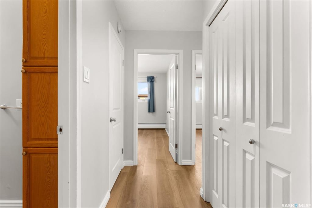 Welcome to your new beginning in Albert Park — a sought-after community that perfectly blends city convenience with relaxed, residential charm. This beautifully maintained 2-bedroom corner condo offers the peace and privacy of a top-floor unit, ensuring no footsteps above you and sweeping natural light throughout. Step inside and feel instantly at home. The freshly updated interior (2024) exudes modern comfort with new ceilings, sleek vinyl plank flooring, and a fresh coat of paint that brightens every corner. The spacious living room invites you to unwind and opens onto a North-facing balcony, the perfect spot for morning coffee. The kitchen is both functional and stylish — a complete remodel in 2006, updated lighting, and stainless steel appliances that still gleam with pride. Every detail has been cared for, from the new dining room window (Oct 2024) to the wall-mounted air conditioner with remote for effortless comfort year-round. Additional thoughtful updates include newer interior doors, closet doors, and windows throughout, creating a cohesive and move-in-ready space. Situated steps from shopping, restaurants, schools, and transit, this location places you at the center of it all — whether you're grabbing a bite at a local favorite, commuting to work, or taking an evening stroll through the neighborhood. One surface parking stall included. Ideal for first-time buyers, downsizers, or anyone seeking a low-maintenance lifestyle in one of Regina's most connected communities, this condo is proof that you don't have to compromise comfort for convenience. Condo fees are $431 and include External Building Maintenance, Garbage, Heat, Insurance (Common), Lawncare, Reserve Fund, Sewer, Snow Removal, Water