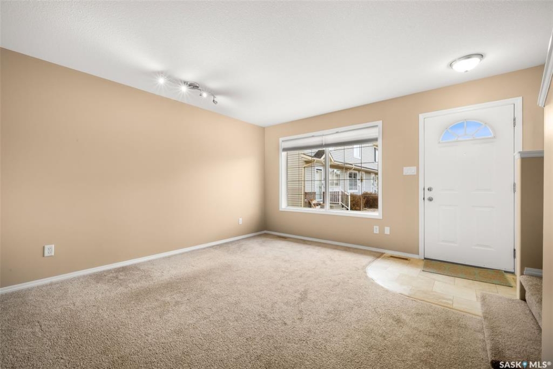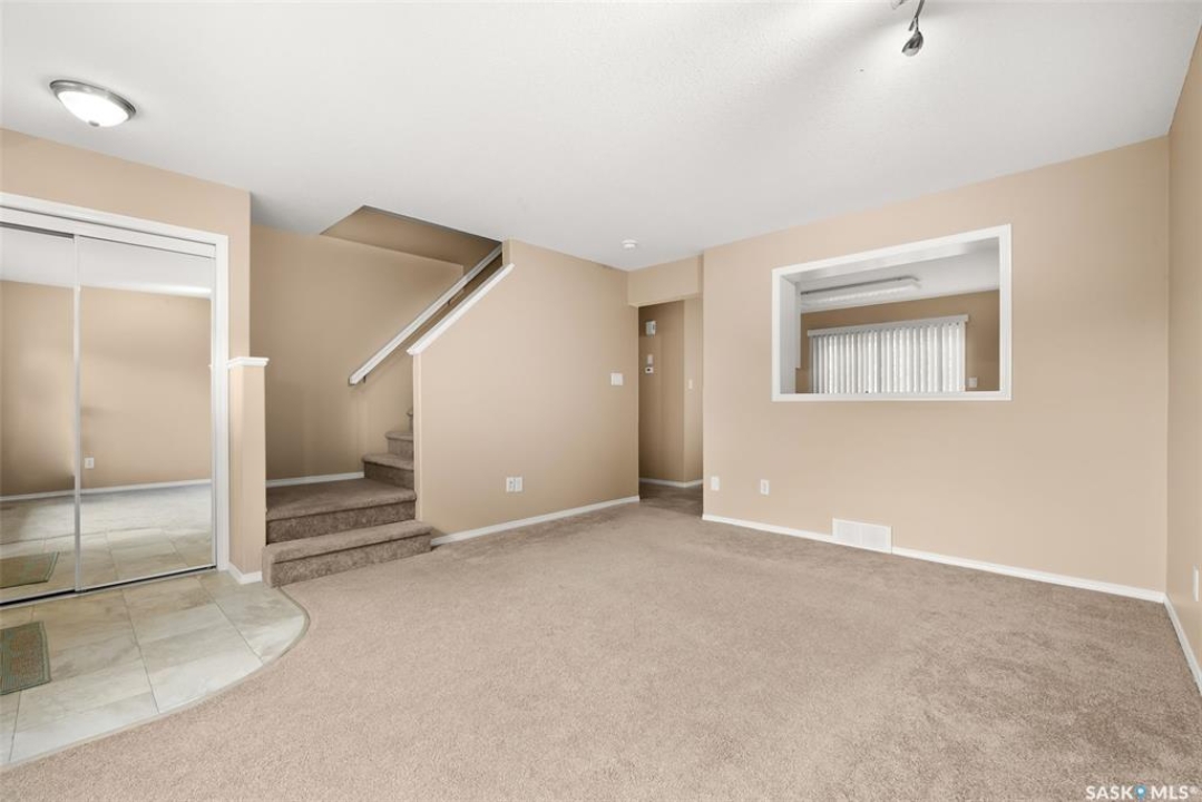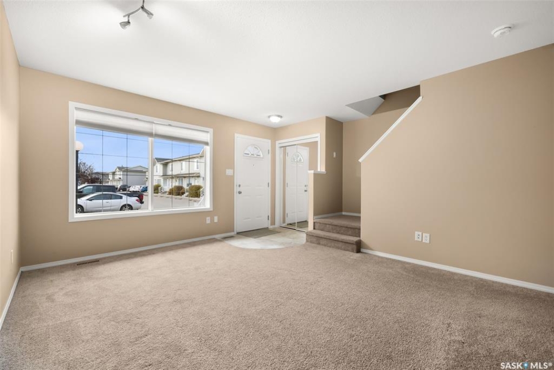 Welcome to 2750 Cranbourn Crescent, a well-kept townhouse located in the desirable neighbourhood of Windsor Park. This multi-level condo offers 944 sq. ft. above grade with a functional layout that blends comfort and convenience. The bright main floor features a spacious living room with a large picture window, perfect for natural light and everyday living. The kitchen and dining area provide ample cabinetry, a built-in dishwasher, and space for family meals, with direct access to the back patio for outdoor entertaining and summer barbecues. Upstairs, you'll find two comfortable bedrooms and a refreshed 4-pc bathroom featuring a new countertop, sink, and lighting. Recent improvements throughout the home include new linoleum flooring and a fresh interior paint, giving the space a clean and modern feel. The basement is unfinished, offering great potential for future development as a rec room, home office, or storage area. Laundry is conveniently located in-unit. This home comes equipped with central air, fridge, stove, washer, dryer, and dishwasher, along with window treatments. Enjoy the benefits of condo living with lawn care, snow removal, common insurance, reserve fund contributions, and exterior building maintenance included in the monthly condo fees. Outside, you'll find a private patio, partially fenced yard, and two exclusive parking stalls. Located close to parks, schools, paths, shopping, and all east-end amenities, Cranbourn Crescent carries a friendly, family vibe—one of those streets that instantly feels like home. Affordable, well-kept, and tucked into a quiet corner of east Regina, don't miss your chance to make 2750 Cranbourn Crescent your own!