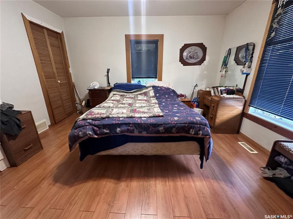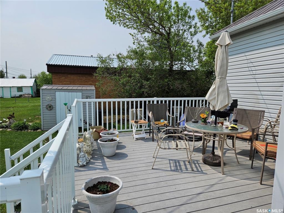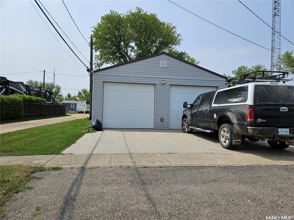 EXCELLENT 1 1/2 STOREY HOME IN BIENFAIT Great curb appeal! This home has seen ongoing updates inside and out that make it ready to move into. Metal roof with 2" of styrofoam, vinyl siding over styrofoam and PVC windows. Large rear entry with laundry and storage. The spacious kitchen has ample oak cabinets, microwave rangehood and an east facing window to capture the morning sun. Good size living room, full bath with jet tub and 2 bedrooms complete the main level. The upper level offers a large family room or bedroom, den area and 1/2 bath. The concrete basement houses the utility and storage. Central air, central vac and RO system included. Programmable thermostat for remote control, The yard has lots to offer beginning with the welcoming front veranda to the low maintenance two level deck at the rear with gas barbeque hook-up, lawn space, shed, garden, & manicured shrubs. AND a 26' X 26' X 10' heated garage built in 2010 has 2 overhead doors, a walk-in door and 2 openers. Concrete drive. Also negotiable are the: lawn mower, gas barbeque, snowblower, tiller, patio table, deck furniture, deck box, and misc yard tools.