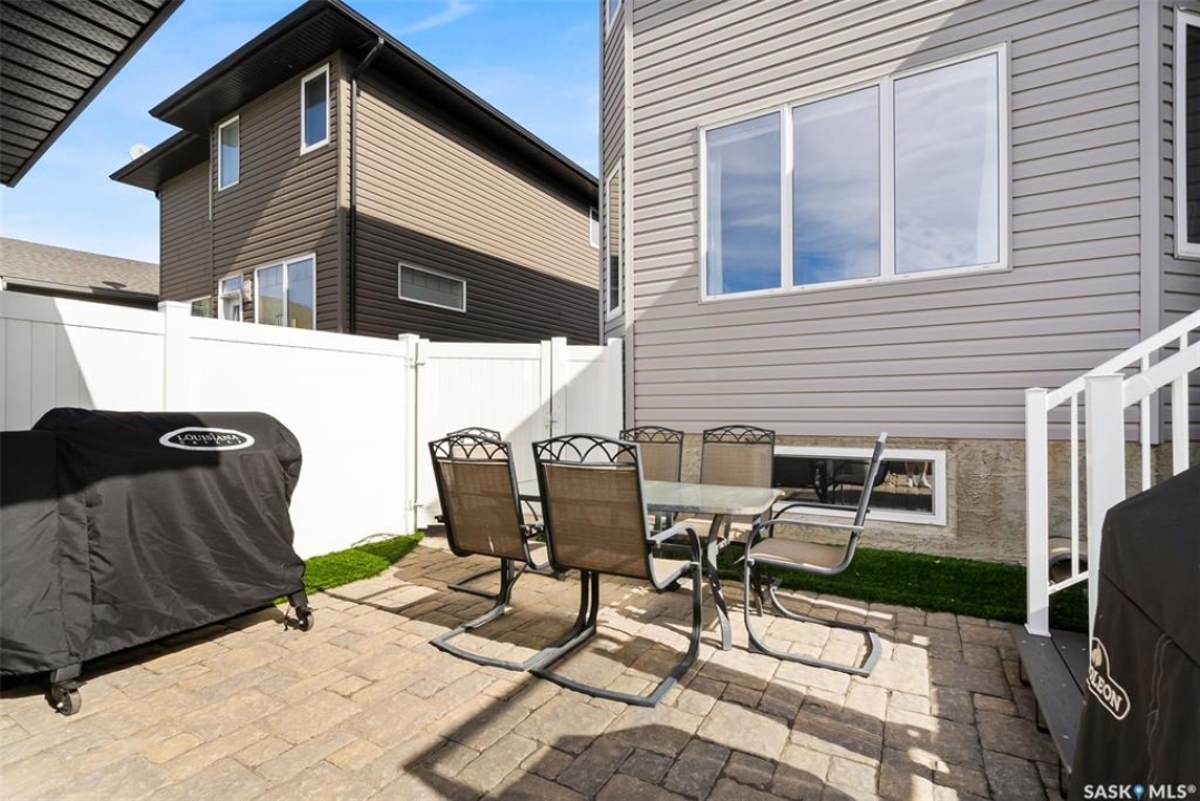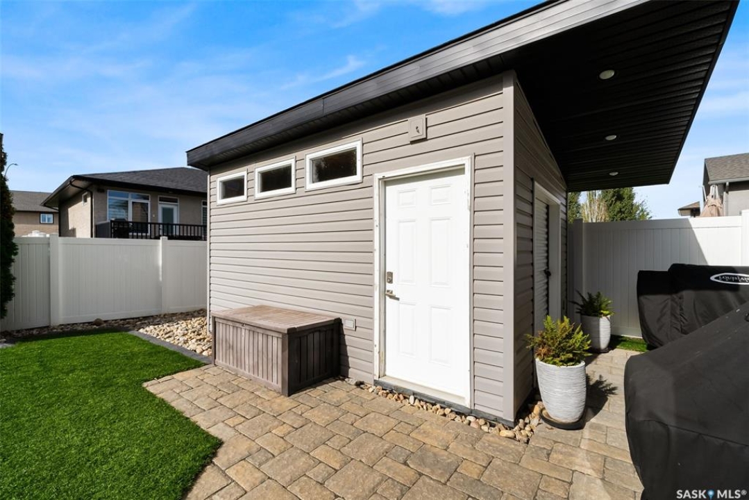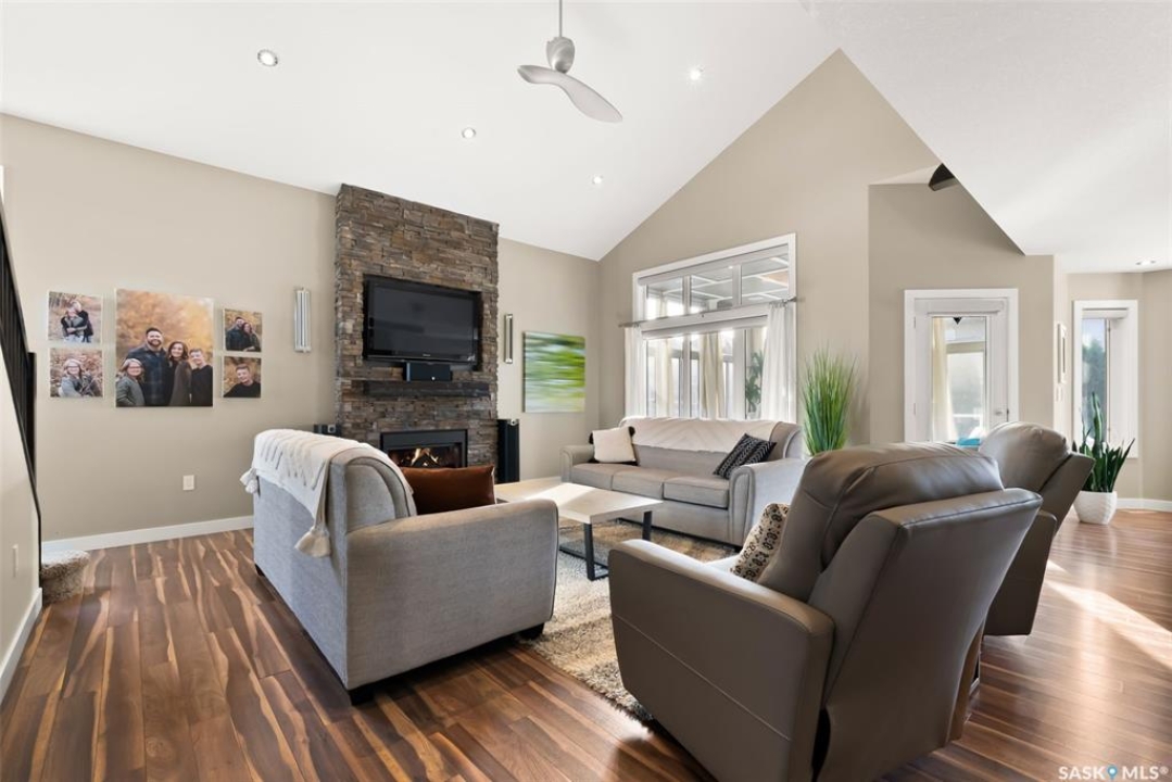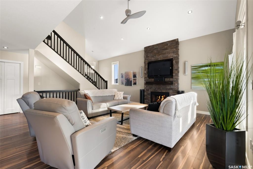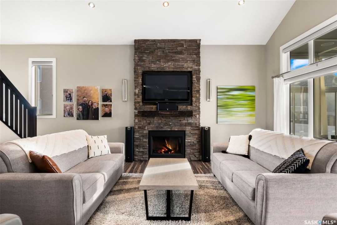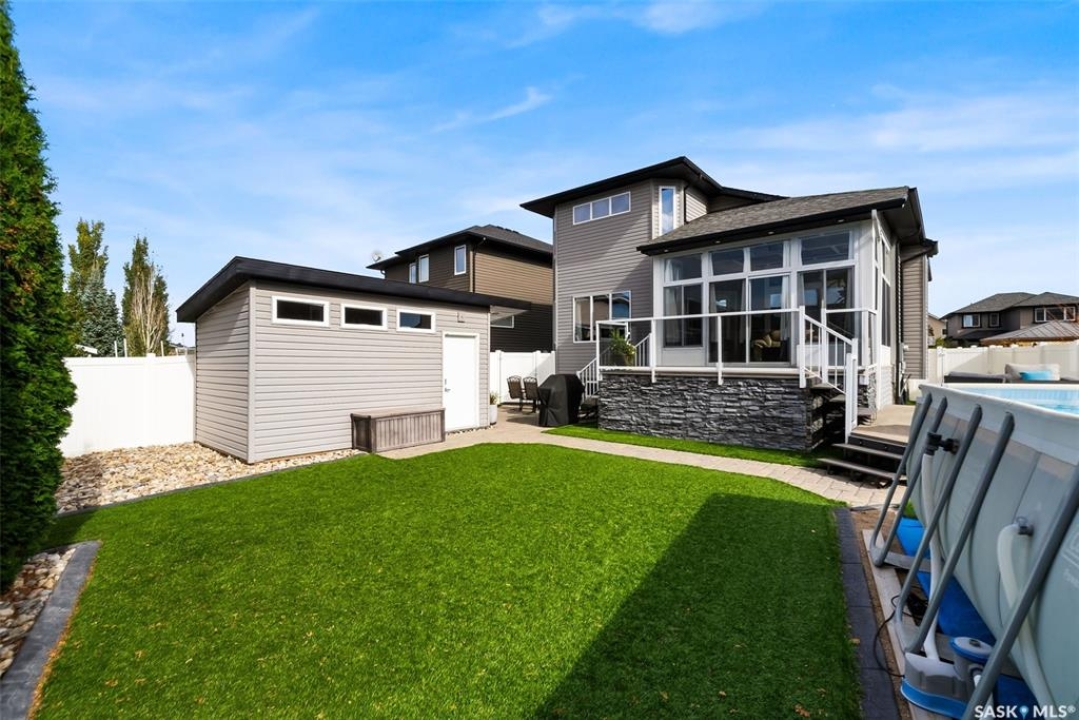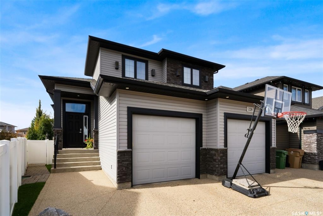 Welcome to 228 Foxtail, an immaculate 1,795 sq. ft. two storey split located in the beautiful neighbourhood of Fairways West. Perfectly situated on a 5,510 sq. ft. lot, this home exudes pride of ownership and thoughtful design throughout. It offers 3 bedrooms plus an optional future 4th bedroom, and 4 bathrooms. The bright and functional main floor features vaulted ceilings in the living room, a stunning stacked stone gas fireplace, and an open concept kitchen with an oversized island (with sink and extra seating), large pantry, rich wood cabinetry, stainless steel appliances, and stone countertops. The dining area is filled with natural light and offers picturesque views of the backyard. A convenient 2 piece bathroom and direct access to the heated double garage complete this level. Upstairs, the spacious primary suite includes a walk in closet and a private ensuite. Two additional bedrooms, a 4 piece main bathroom, and a handy built-in laundry chute round out the second floor. The fully finished basement feels like an extension of the upper levels, offering a bright family room, gym area (with setup for a future bedroom closet or optional bar/games room with rough-ins for water and drain), a 4th bathroom, laundry, and utility/storage space. Step outside to enjoy the beautiful three season sunroom overlooking the fully xeriscaped yard, making it perfect for relaxing or entertaining. Notable upgrades include Duradek on all deck and sunroom surfaces, natural gas BBQ hookup, built-in home audio (house, sunroom, and garage), vinyl fencing, patio and deck, oversized shed, heated tile in the basement bathroom, garburator, Wi-Fi thermostat, keyless entry, zoned heating/cooling, drip irrigation, timed soffit outlets for Christmas lights, and a heated, insulated garage with 60-amp panel, 240V power, floor drain, and overhead storage. From the moment you step inside, you'll be impressed by the quality, functionality, and care that make this home truly exceptional.