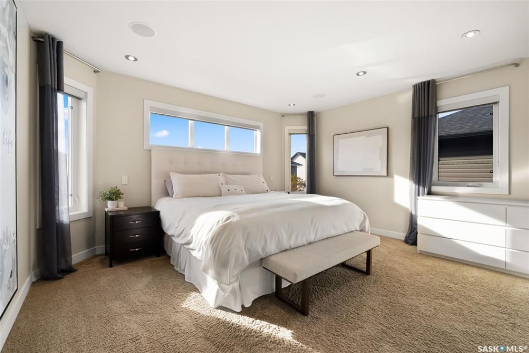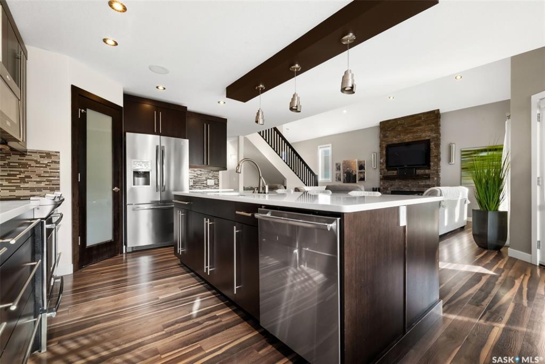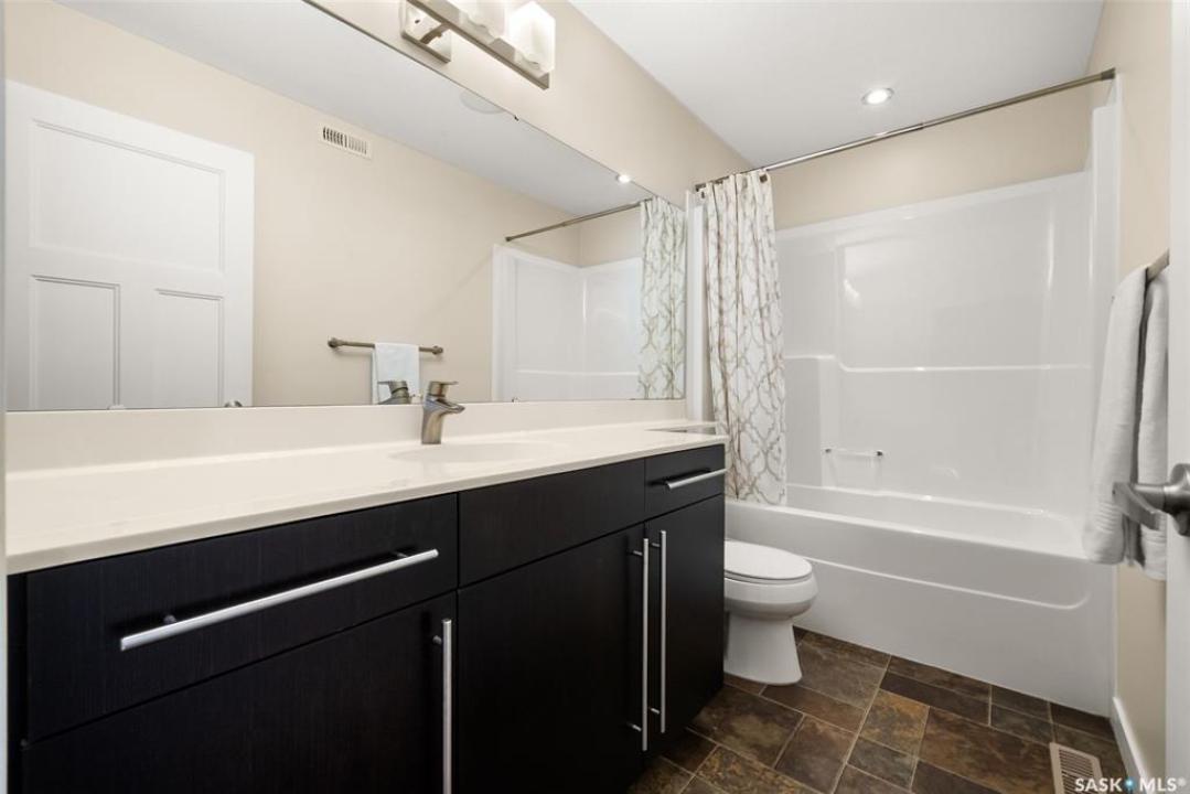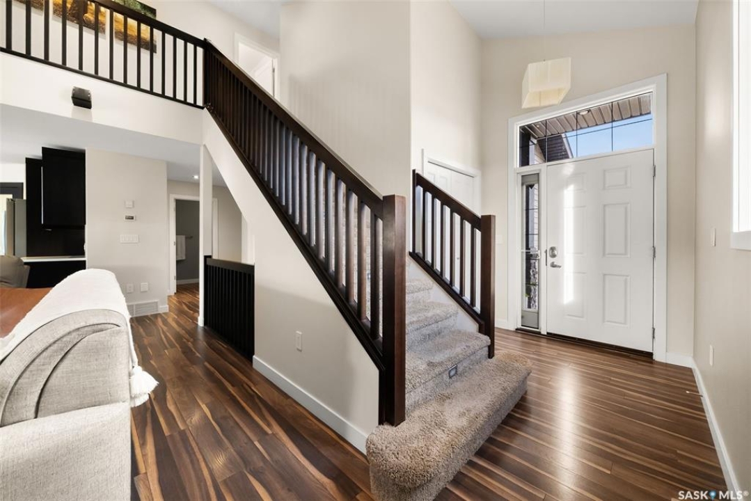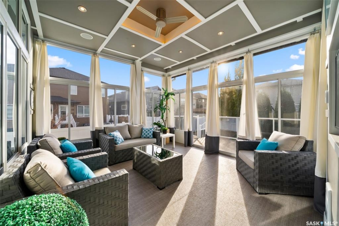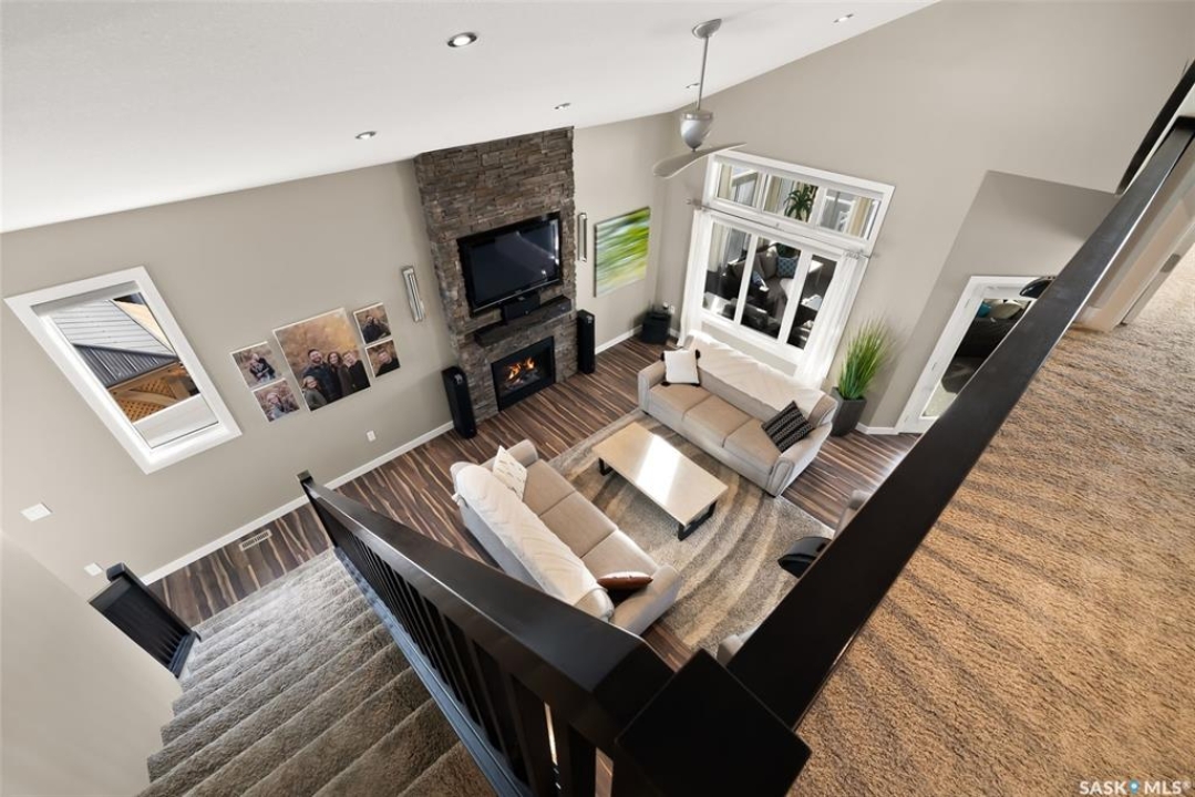 Welcome to 228 Foxtail, an immaculate 1,795 sq. ft. two storey split located in the beautiful neighbourhood of Fairways West. Perfectly situated on a 5,510 sq. ft. lot, this home exudes pride of ownership and thoughtful design throughout. It offers 3 bedrooms plus an optional future 4th bedroom, and 4 bathrooms. The bright and functional main floor features vaulted ceilings in the living room, a stunning stacked stone gas fireplace, and an open concept kitchen with an oversized island (with sink and extra seating), large pantry, rich wood cabinetry, stainless steel appliances, and stone countertops. The dining area is filled with natural light and offers picturesque views of the backyard. A convenient 2 piece bathroom and direct access to the heated double garage complete this level. Upstairs, the spacious primary suite includes a walk in closet and a private ensuite. Two additional bedrooms, a 4 piece main bathroom, and a handy built-in laundry chute round out the second floor. The fully finished basement feels like an extension of the upper levels, offering a bright family room, gym area (with setup for a future bedroom closet or optional bar/games room with rough-ins for water and drain), a 4th bathroom, laundry, and utility/storage space. Step outside to enjoy the beautiful three season sunroom overlooking the fully xeriscaped yard, making it perfect for relaxing or entertaining. Notable upgrades include Duradek on all deck and sunroom surfaces, natural gas BBQ hookup, built-in home audio (house, sunroom, and garage), vinyl fencing, patio and deck, oversized shed, heated tile in the basement bathroom, garburator, Wi-Fi thermostat, keyless entry, zoned heating/cooling, drip irrigation, timed soffit outlets for Christmas lights, and a heated, insulated garage with 60-amp panel, 240V power, floor drain, and overhead storage. From the moment you step inside, you'll be impressed by the quality, functionality, and care that make this home truly exceptional.