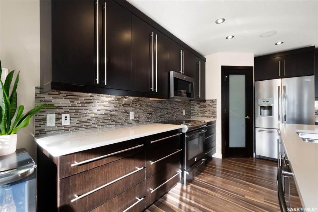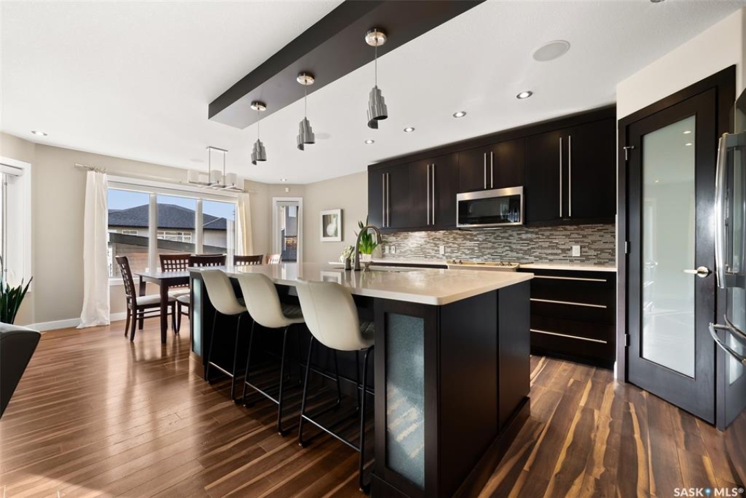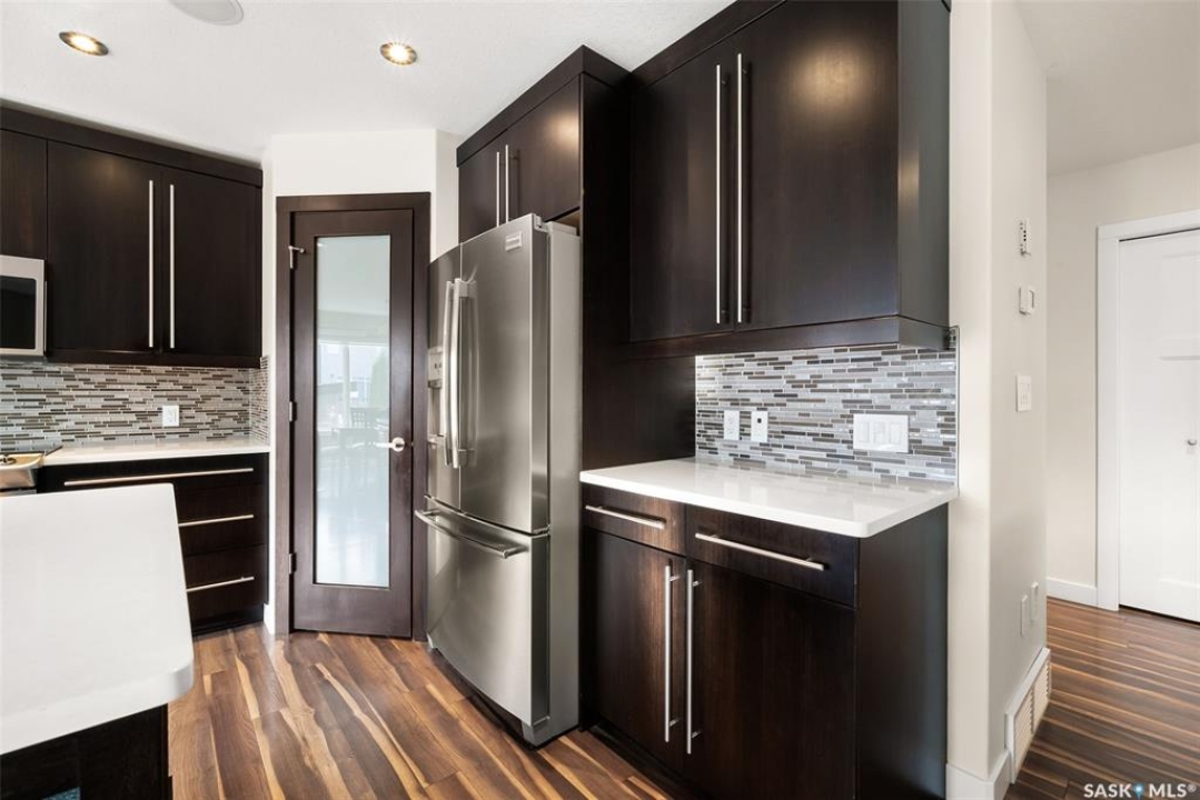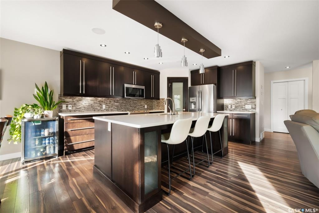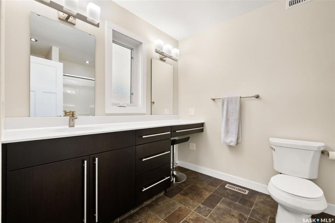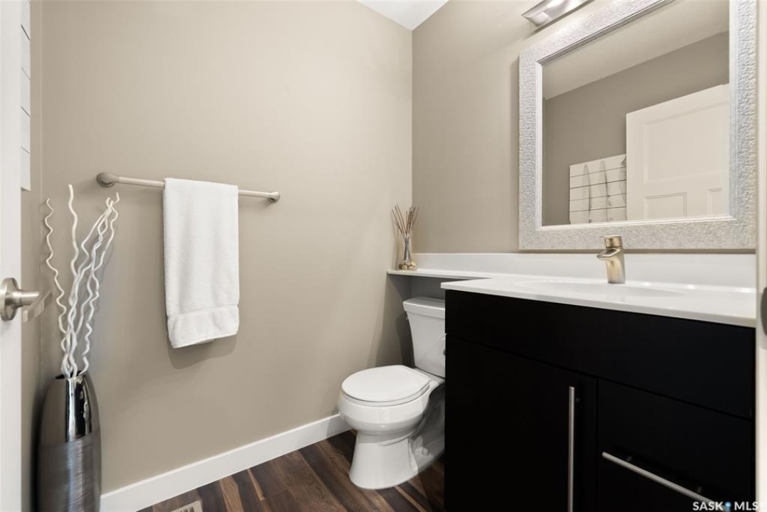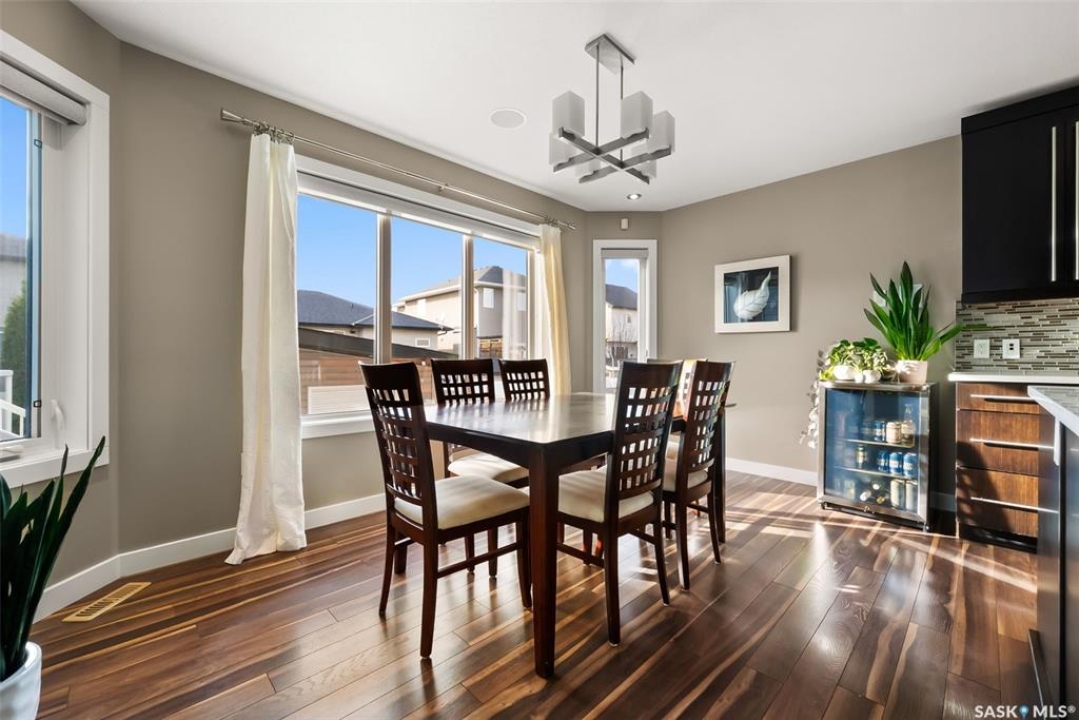 Welcome to 228 Foxtail, an immaculate 1,795 sq. ft. two storey split located in the beautiful neighbourhood of Fairways West. Perfectly situated on a 5,510 sq. ft. lot, this home exudes pride of ownership and thoughtful design throughout. It offers 3 bedrooms plus an optional future 4th bedroom, and 4 bathrooms. The bright and functional main floor features vaulted ceilings in the living room, a stunning stacked stone gas fireplace, and an open concept kitchen with an oversized island (with sink and extra seating), large pantry, rich wood cabinetry, stainless steel appliances, and stone countertops. The dining area is filled with natural light and offers picturesque views of the backyard. A convenient 2 piece bathroom and direct access to the heated double garage complete this level. Upstairs, the spacious primary suite includes a walk in closet and a private ensuite. Two additional bedrooms, a 4 piece main bathroom, and a handy built-in laundry chute round out the second floor. The fully finished basement feels like an extension of the upper levels, offering a bright family room, gym area (with setup for a future bedroom closet or optional bar/games room with rough-ins for water and drain), a 4th bathroom, laundry, and utility/storage space. Step outside to enjoy the beautiful three season sunroom overlooking the fully xeriscaped yard, making it perfect for relaxing or entertaining. Notable upgrades include Duradek on all deck and sunroom surfaces, natural gas BBQ hookup, built-in home audio (house, sunroom, and garage), vinyl fencing, patio and deck, oversized shed, heated tile in the basement bathroom, garburator, Wi-Fi thermostat, keyless entry, zoned heating/cooling, drip irrigation, timed soffit outlets for Christmas lights, and a heated, insulated garage with 60-amp panel, 240V power, floor drain, and overhead storage. From the moment you step inside, you'll be impressed by the quality, functionality, and care that make this home truly exceptional.