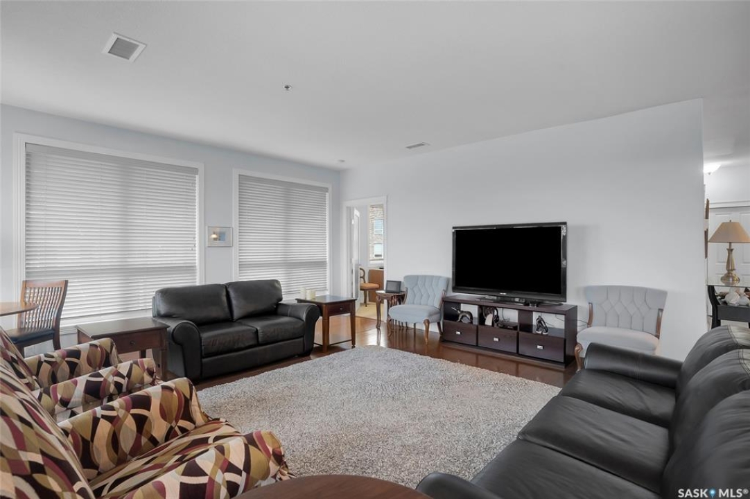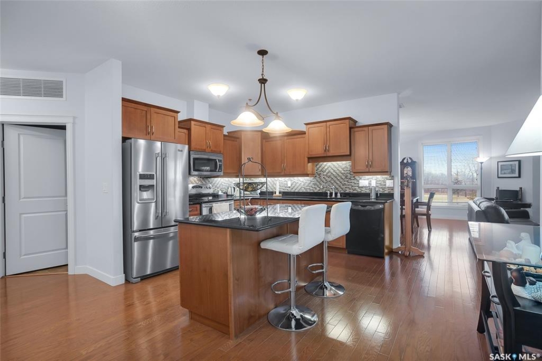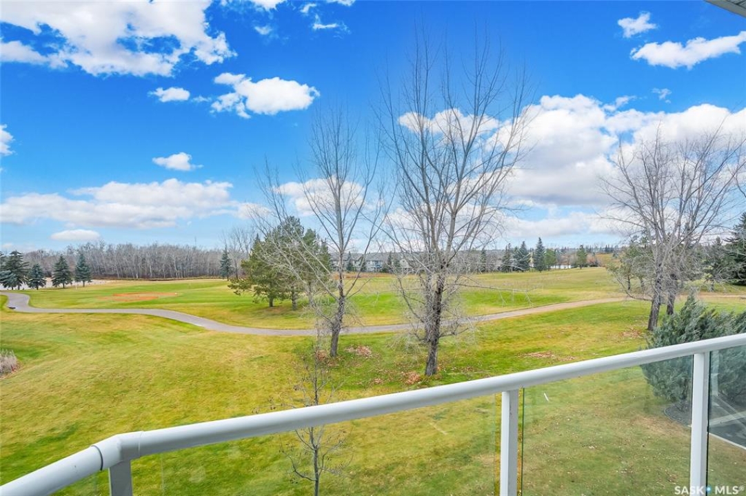 Stunning golf course views await you in this exceptional one owner condo unit. The open floor plan boasts an abundance of natural light pouring in through the numerous windows, showcasing the breathtaking scenery outside. Soaring nine foot ceilings add to the sense of spaciousness, creating an ideal atmosphere for entertaining and relaxation. The gourmet kitchen is equipped with high-quality cabinets, sleek granite countertops, and stainless steel appliances, including a newer refrigerator. The adjacent dining room features custom-designed cabinets, complete with a built-in wine fridge, bar fridge, and sink, perfect for hosting friends and family. Five piece ensuite bath offers his and hers sinks, and a walk-in closet. Step out onto the expansive wrap-around balcony, where you can soak in the panoramic golf course views and enjoy the fresh air. This condo unit also comes with a range of desirable amenities, including an exercise room, amenity room, and a spacious storage locker. Parking is convenient, with one heated underground stall, and one surface stall, as well as a wash bay for washing your vehicle. Visitors will appreciate the abundance of parking options available. Don't miss this incredible opportunity to own a piece of golf course paradise!