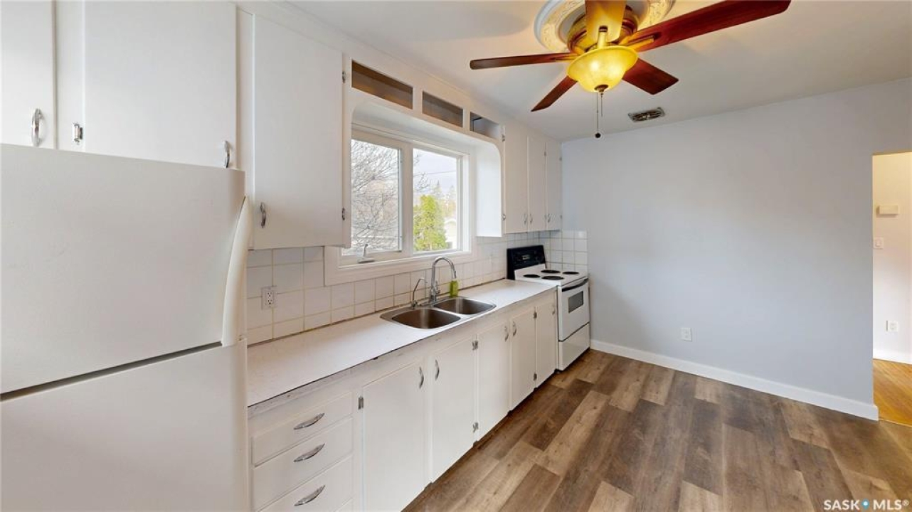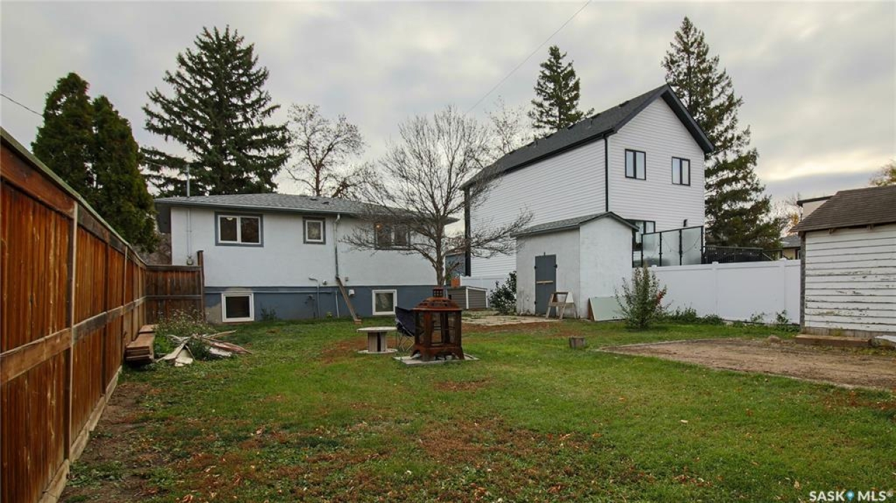 Welcome to 2736 Reynolds Street in the family friendly Arnhem Place neighborhood just steps away from Candy Cane Park, Wascana Park, The Science Center with attached IMAX Theatre, and all the walking and biking and cross-country skiing baths around the Wascana Centre. Both Miller and Balfour high schools and the strip mall anchored by Neil's Independent grocery store are also close by, making this an extremely convenient and vibrant place to live! This 1952 built, 832 square foot, raised bungalow has 4 bedrooms and 2 bathrooms and sits on double lots measuring 50 x 125 with a back alley lane. The front yard has a lawn, a large tree, and a cute sitting area. The huge backyard is fully fenced with a lawn, trees and shrubs, an extra tall shed, and a single detached garage! The back of the fence features a double gate with a parking pad that is great for RV or additional vehicle parking! You enter the home into the foyer with a handy coat closet to store your outdoor gear. The living room has original hardwood and is super bright thanks to the large picture window! There are two good sized bedrooms on the main as well as a 4 piece bathroom. The kitchen has a pantry for extra storage and a fair amount of cabinets and countertop space. There's modern vinyl plank flooring here, and the fridge and stove are included. Downstairs, the rec room makes an excellent second living space or play area. As the house sits high out of the ground the large windows make it extra bright and it doesn't even feel like you're in a basement here. The combined laundry and bathroom feels almost spa-like with a deep soaker jet tub, cupboard and counter space. The washer and dryer are both included as well. Finishing off the home are two more bedrooms also with large windows. This home also features an owned high efficiency furnace and a 100 amp electrical panel!