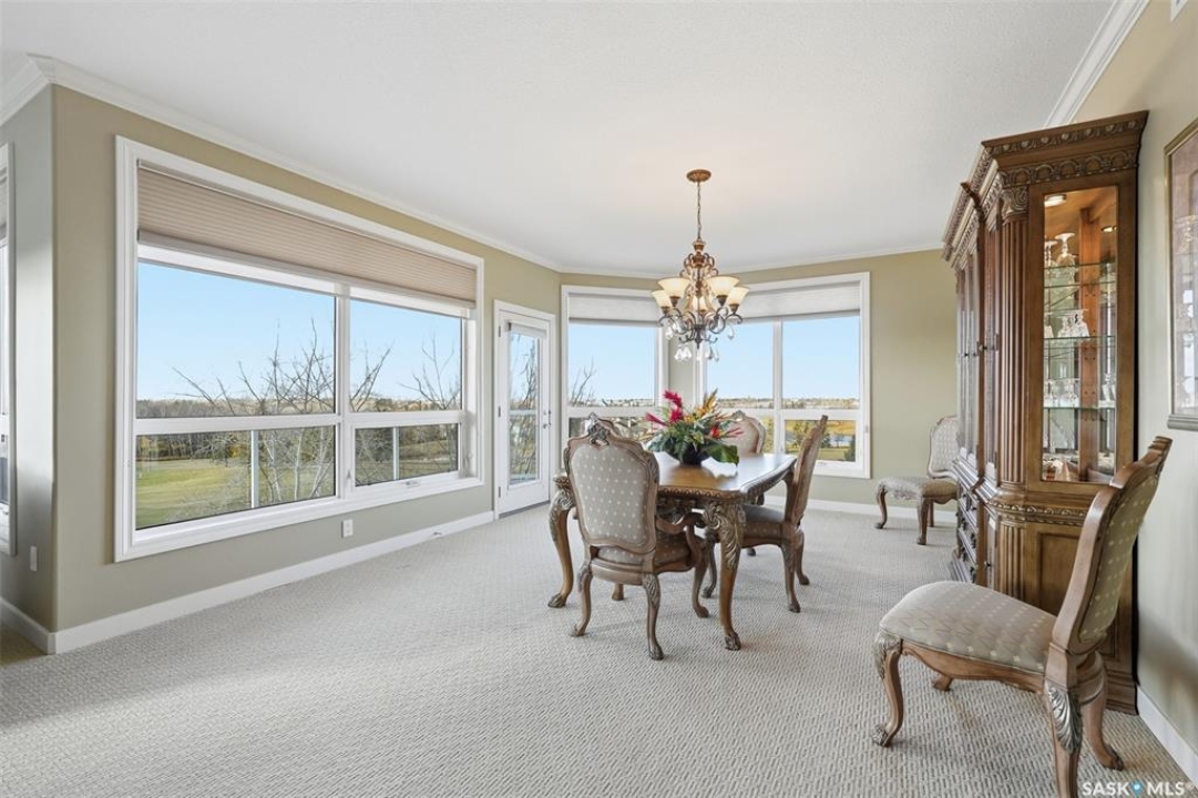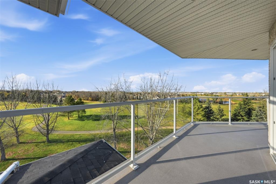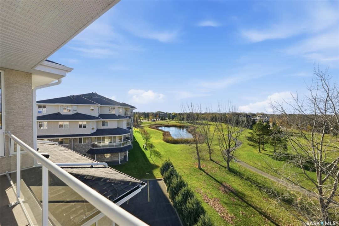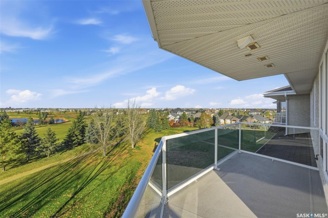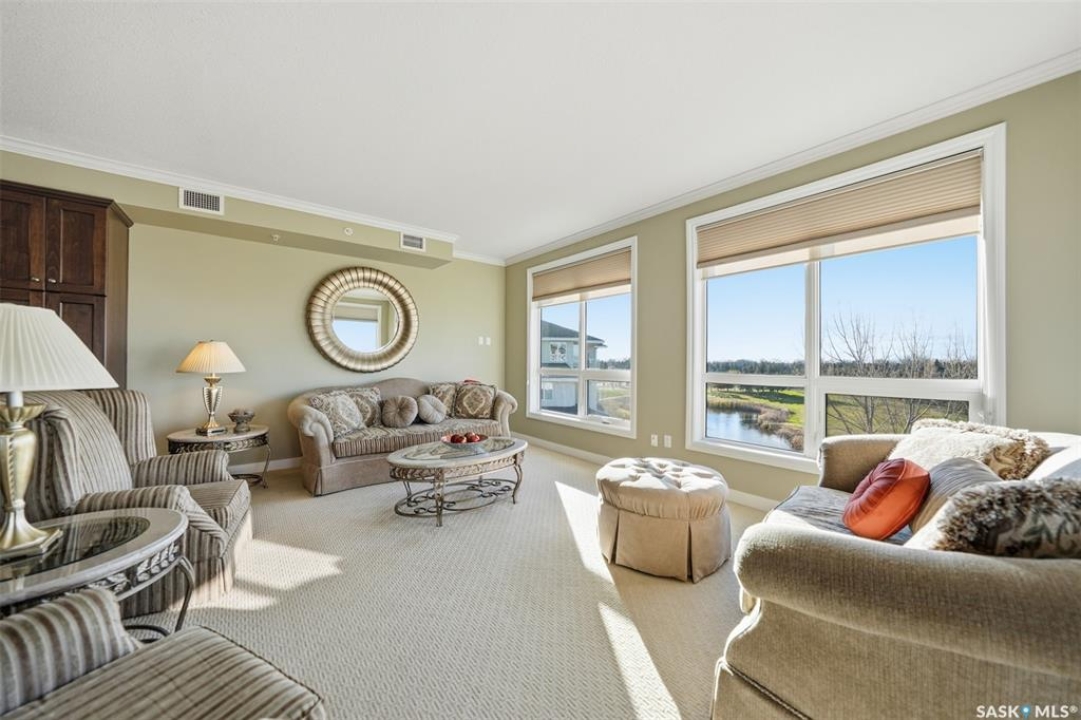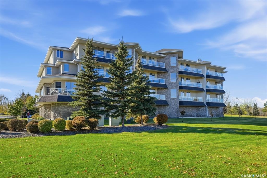 Welcome to luxury living at The Willows - Saskatoon's premier golf course community. This top floor corner unit boasts 1,854 sq.ft. with a spacious open floor plan. Soaring wall to wall windows let in natural light from the north and west sides of the building, and the wrap-around balcony showcasing beautiful views of the golf course and community. Features include custom cabinetry, granite countertops, crown mouldings, and in-floor heat. Three bedrooms (one ideal as an office). The primary bedroom offers a walk-in closet and a large ensuite with double sinks. Convenient in-suite laundry and two underground parking stalls (a rare find). Pets allowed with approval. Original owners. A premium opportunity for upscale condo living in one of Saskatoon's most desirable communities.
