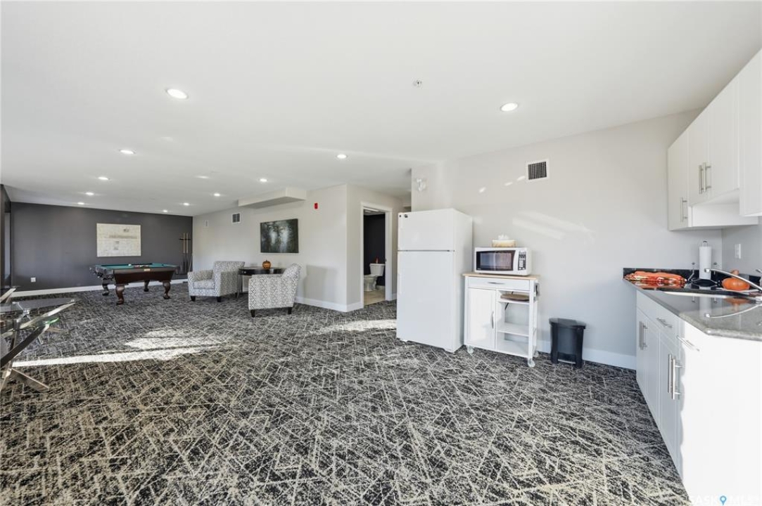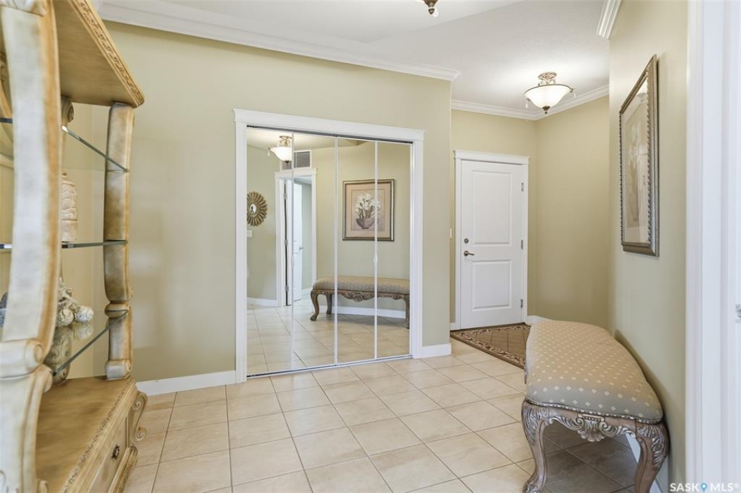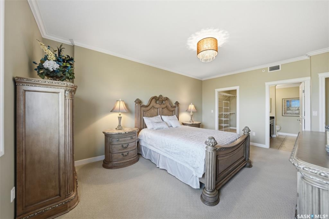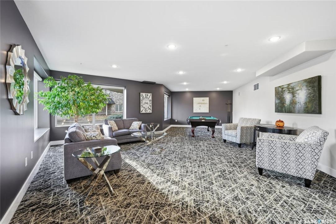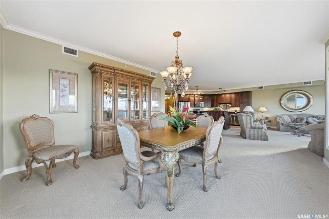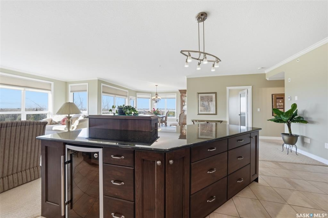 Welcome to luxury living at The Willows - Saskatoon's premier golf course community. This top floor corner unit boasts 1,854 sq.ft. with a spacious open floor plan. Soaring wall to wall windows let in natural light from the north and west sides of the building, and the wrap-around balcony showcasing beautiful views of the golf course and community. Features include custom cabinetry, granite countertops, crown mouldings, and in-floor heat. Three bedrooms (one ideal as an office). The primary bedroom offers a walk-in closet and a large ensuite with double sinks. Convenient in-suite laundry and two underground parking stalls (a rare find). Pets allowed with approval. Original owners. A premium opportunity for upscale condo living in one of Saskatoon's most desirable communities.