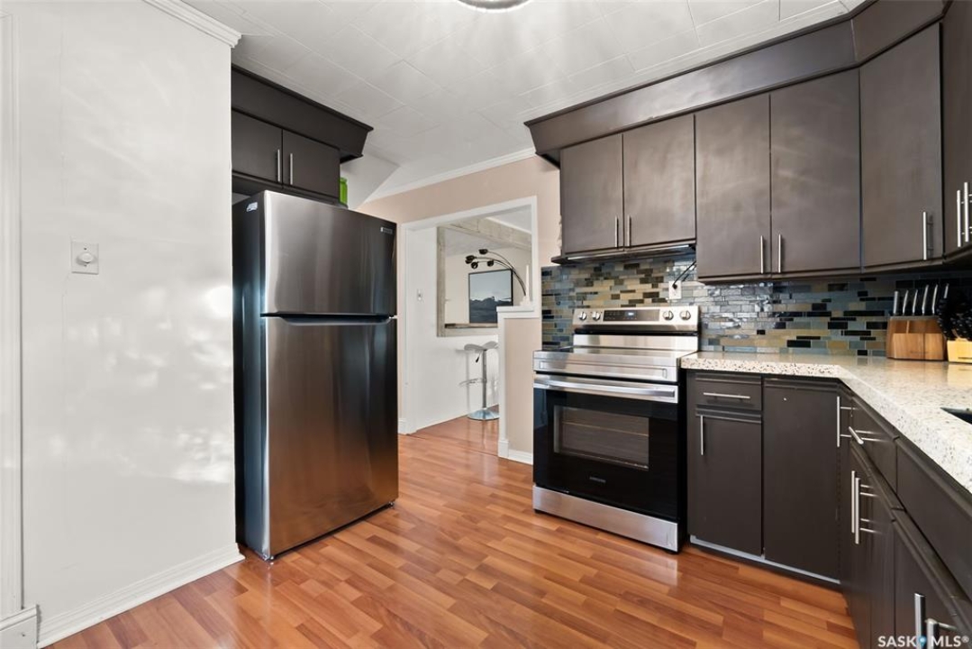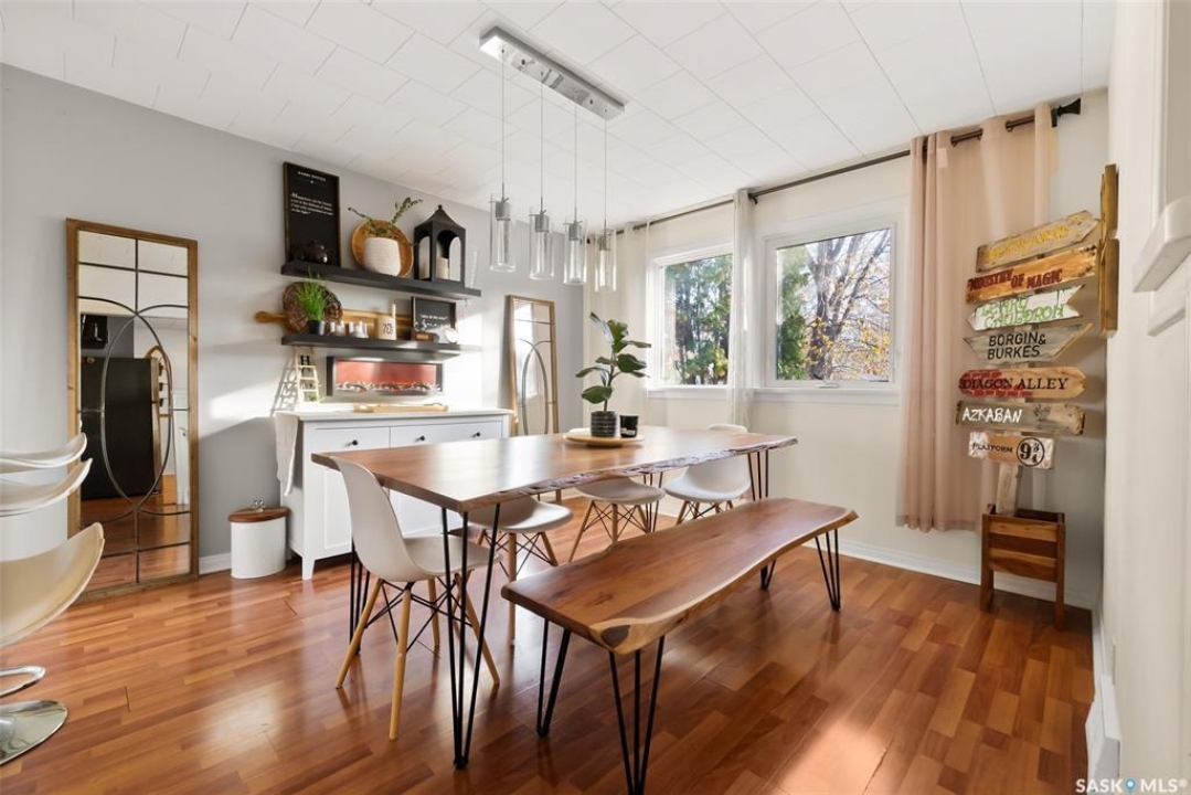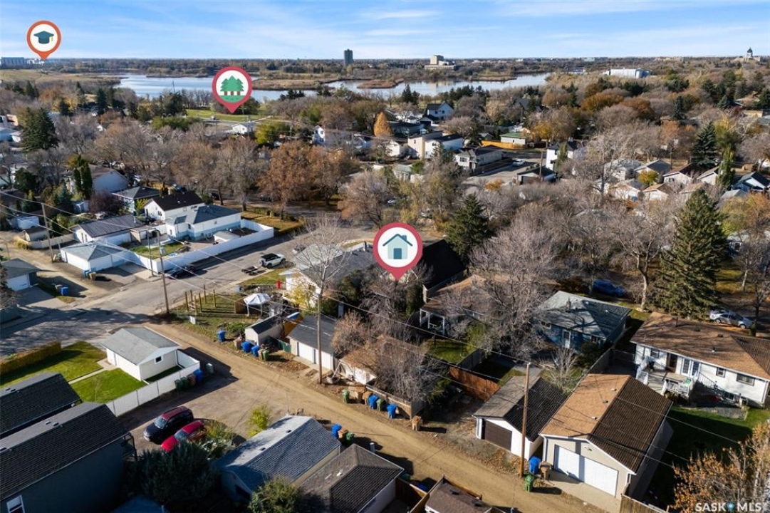 Welcome home to 2769 McAra Street, a charming fully developed home nestled on a tree lined street with birds chirping in our Arnhem Place neighbourhood. This location offers a perfect blend of urban convenience & natural serenity being steps away from Wascana Park, Queen Elizabeth Park and Ecole Du Parc & Douglas Park schools. This is the quintessential location for people who love walking their fur kids after work & who love that friendly neighbourhood vibe. This cutie patootie home is fully developed offering a functional floorplan with 3 bedrooms (1 on the main and 2 on the second level), 2 full bathrooms & a bright basement! Inside you'll feel all the good vibes with a semi open concept living room & dining room area with views of your backyard. Flowing into the spacious kitchen adorned with a trendy backsplash, newer lighting, ample countertop space & a side pantry closet for extra storage! There is a full bathroom & bedroom with closet completing the main floor. Upstairs you will find the spacious primary bedroom with treetop views & WIC. The third bedroom is also a nice size w/closet space. The lower level offers a humongous rec room area (yes, it feels like you could bowl down here!), a second full bathroom, dedicated laundry room & a utility/storage room. This is not your average basement because there's numerous windows & it offers a comfortable height headspace! Get excited for summer BBQ's because this yard was made for entertaining w/a covered deck, fenced, & with mature trees/bushes! The double detached garage offers lane access, plus there's still room for a shed, & additional parking in the back & in the front as desired. This home has seen many updates including Central Air, Sewer Line + Back Flow Prevention Valve, Shingles on Garage, Trendy Lighting & more! It's time to give your fur kids (& yourself) the home they have always wanted in one of Regina's most beloved neighbourhoods!