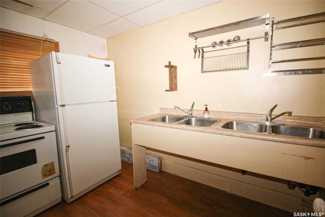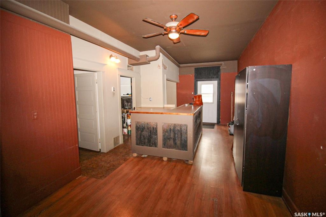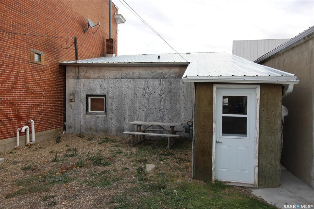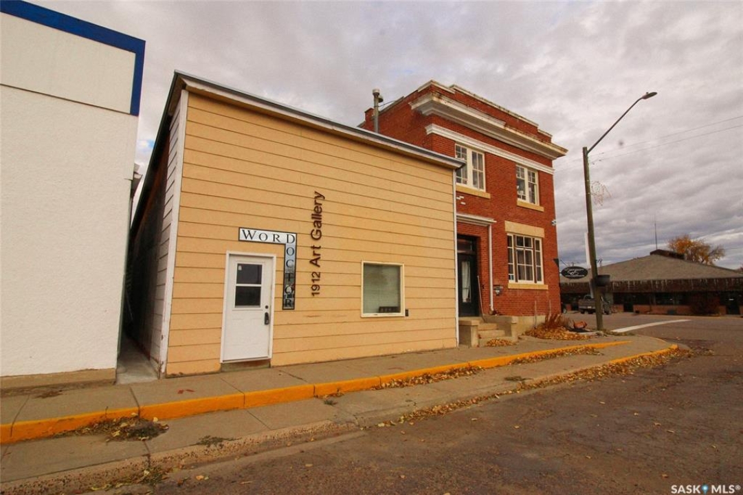 An exceptional opportunity awaits with this well-loved small business property, available for immediate possession! This versatile little building has truly stood the test of time — serving as everything from a cozy bookstore to a bustling coffee shop. Perfectly positioned right beside the grocery store, it boasts an ideal high-traffic location with a bright, welcoming façade that's sure to draw customers in. Step inside to a spacious reception area with a built-in counter, perfect for taking orders or greeting clients. Behind the counter, you'll find a convenient storage area complete with two sinks — one for hand washing and one for prep — making it functional for a wide variety of uses. The separate kitchen area features four plumbed sinks, a full-sized fridge, and a stove, giving you the infrastructure you need to start operations right away. The property also includes a handy 2-piece bathroom with a shower, and a rear porch that leads out to the backyard with lane access — ideal for deliveries or outdoor seating. Infrastructure include a durable metal roof, a natural gas furnace, and a new hot water heater (2020), ensuring the space is move-in ready. With its unbeatable location, flexible layout, and history of success, this is truly a turn-key opportunity — your dream business could be up and running in no time. Opportunities like this don't come often, so don't let this one slip away!