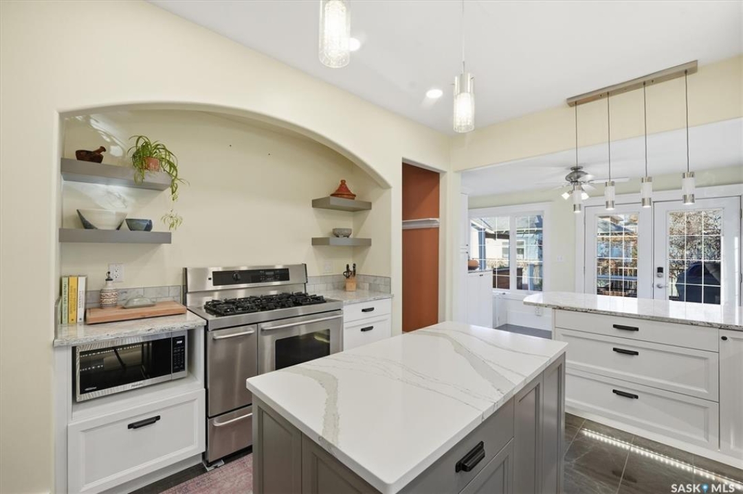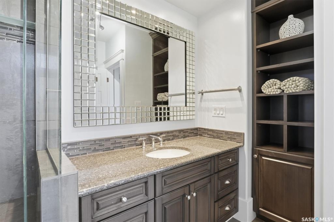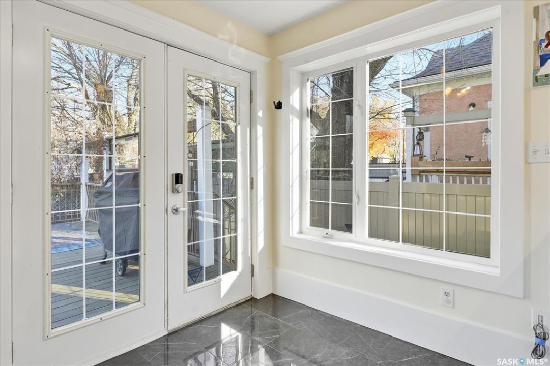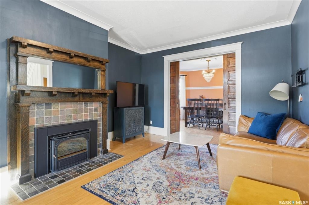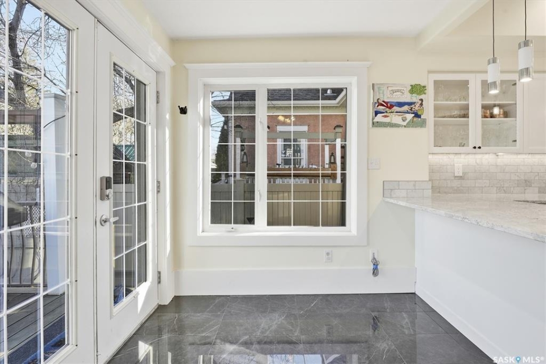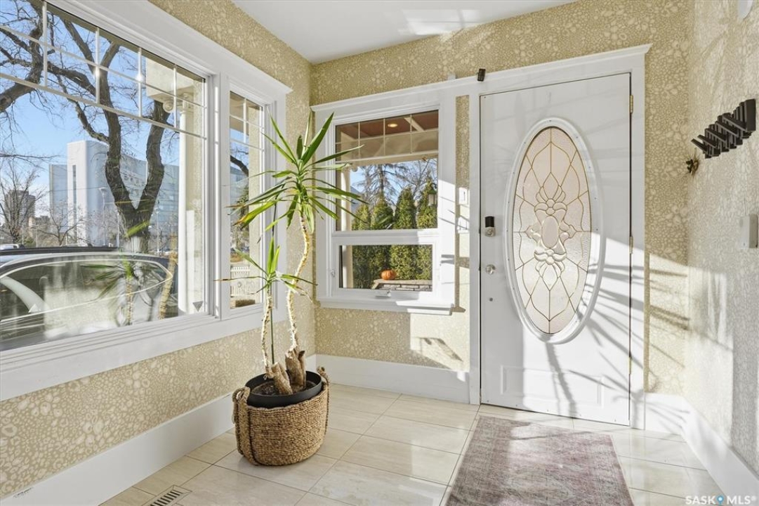 Don't miss this beautiful character home in one of Saskatoon's most desirable neighbourhoods! This property exudes pride of ownership with timeless charm and thoughtful updates throughout. Enter into the main floor- featuring a welcoming sunroom porch, lrg foyer, living room with wood burning fireplace, a formal dining with bay window. At the heart of the home is a chef's dream kitchen- spacious and beautifully appointed with quartz countertops, stainless steel appliances, and a sit-up eating area that opens onto a sitting room, overlooking a large deck and private yard. A 2-piece bath completes the main. Upstairs, you'll find 3 bedrooms: a primary suite with an ensuite — and a charming private deck off the master. Two additional lrg bedrooms and a newly renovated 3-piece bathroom complete 2nd flr. Large windows flood every room with natural light, highlighting the significant character this home offers. Extensive renovations and upgrades have been meticulously completed over the years, blending heritage with modern comfort. The unique dev basement offers a modern 1 bed suite with a sep entrance, 4-piece bathroom, 2 x laundry areas, kitchen, and a family room w/ gas fireplace — ideal for additional income potential. The oversized, heated attached garage includes a large attic storage area above. The front yard is low maintenance with a stamped concrete driveway providing parking three vehicles. Garden enthusiasts will appreciate the manicured backyard: a two-tiered deck, garden and flower boxes, artificial turf, and lush climbing vines. In total, there are three decks, including a covered front deck and the private balcony of the master. Upgrades include: furnace, hot water heater, shingles, garage, decks, kitchen, two bathrooms, basement development, many new windows, updated exterior, and driveway — the list goes on! This gem is ideally situated within walking distance to the river, downtown, the U of S, and all hospitals, the location is unbeatable.