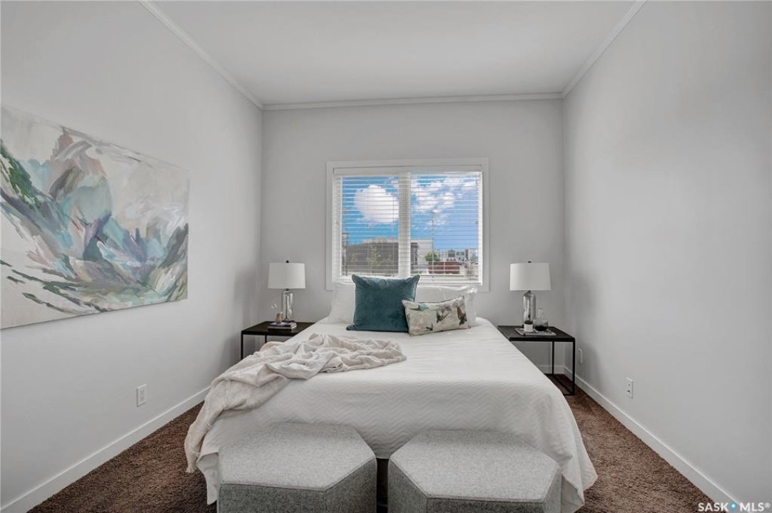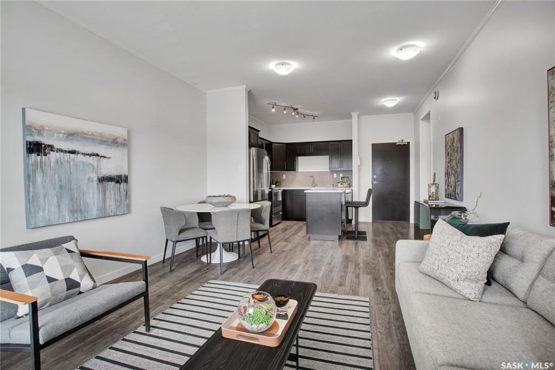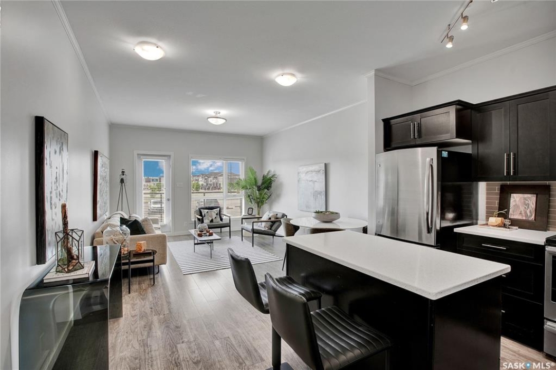 This Kensington Flats condo features 2 bedrooms, 1.5 bathrooms & 1 parking stall underground. The beautiful finishings throughout feature espresso maple cabinetry in the kitchen and bathrooms (soft close doors and drawers), glass tile backsplash, stainless steel appliances, quartz countertops, moveable island and a great sized living room with a door that leads out onto the balcony. The in-suite laundry features a stackable full size washer and dryer. Great layout with the bedrooms being separated from the main living space and 9' ceilings throughout. Additional perks include central air conditioning, heated underground parking, amenity spaces in the building, & you'll be in walking distance to all the amenities of Kensington & Blairmore. Convenient condo living!