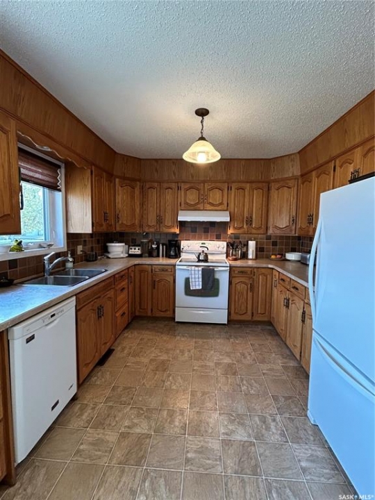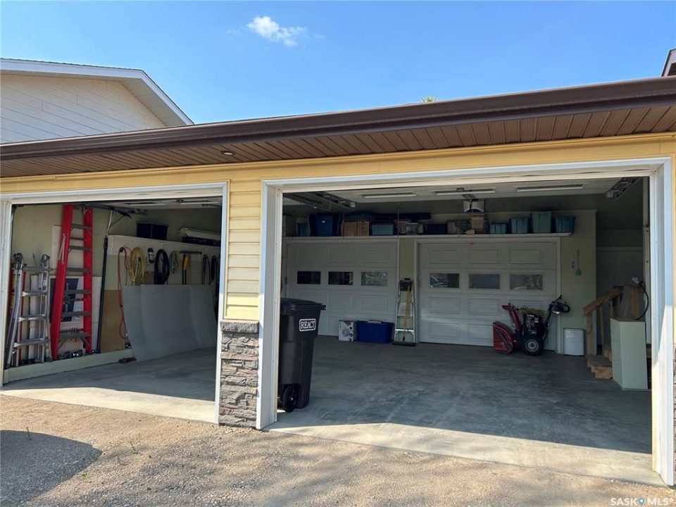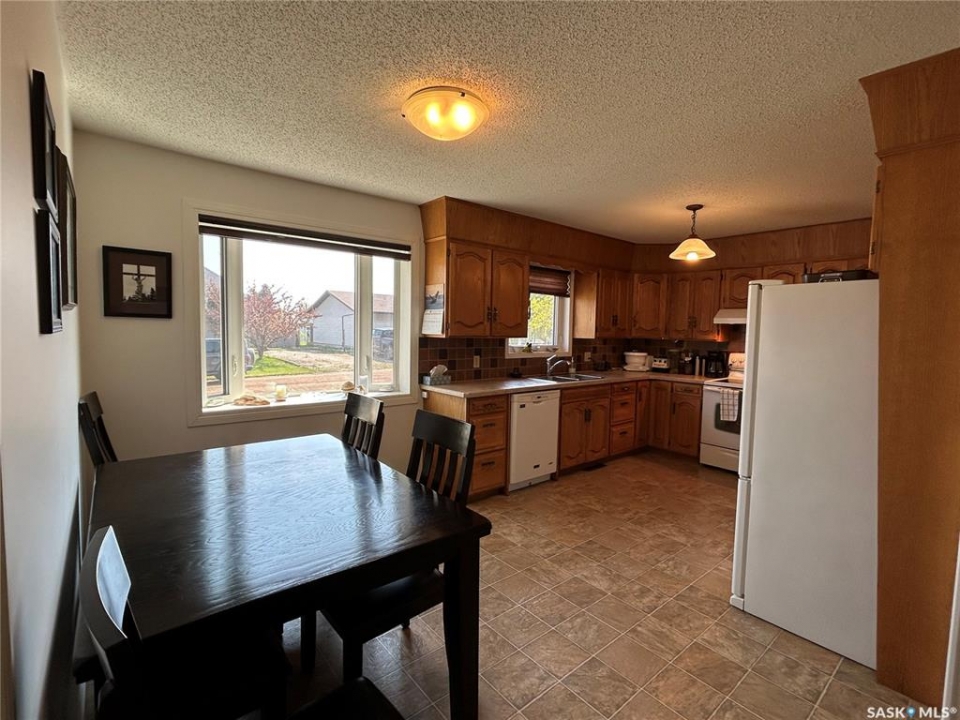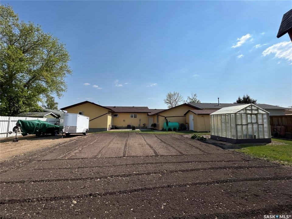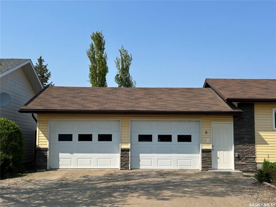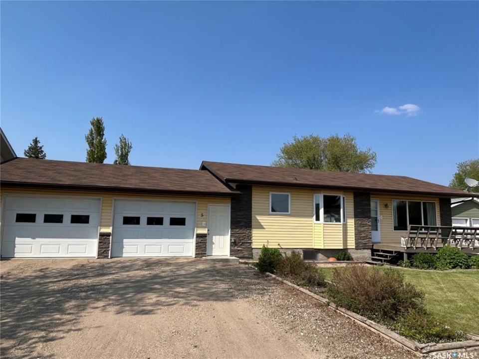 Welcome to 5 Main Crescent in the Village of Muenster! This sprawling updated bungalow is sure to check all the boxes on your list! This five bedroom, two bath home offers numerous updates inside and out, a 1289sqft insulated garage (half heated), four overhead doors, plus a grand yard and RV parking at the back. Homes like this are rare to find! This home offers charming curb appeal with updated Vinyl siding, faux rock accent, shingles, windows and front deck. The attached garage provides direct entry to the home. A spacious foyer opens to the well appointed kitchen and dining room. This home is bright and cheery with large windows flooding the home with natural light! The kitchen boasts Solid Oak Cabinets, plenty of counter space and an open concept eat in dining area. The front living room offers front yard views and opens to the front deck....a perfect place to sit and enjoy the summer days. The main floor of this home offers three bedrooms, a full bath, and laundry. The Primary Bedroom offers a spacious walk in closet and has access to the back patio off the hall. The lower level of this home opens to a spacious family room/ games area with new carpet throughout (2024), two more bedrooms, a 3pc bath, and utility room with extra storage and cold room. The exterior of this home is as impressive as the interior! The four car attached garage (half heated) with 4 overhead doors is the feature, providing access through to the backyard complete with patio area, green space, a greenhouse, large garden, and RV parking. Plenty for privacy and space for all the toys with this property. This property is turn key and ready for it's next owner! Updates in the past few years include shingles, vinyl siding, rock accent, windows, basement carpet, paint and more! Air conditioning was added approx 8 years ago. Rototiller, snowblower, and Greenhouse included. This property is a true gem! Don't miss out.....call to view today!