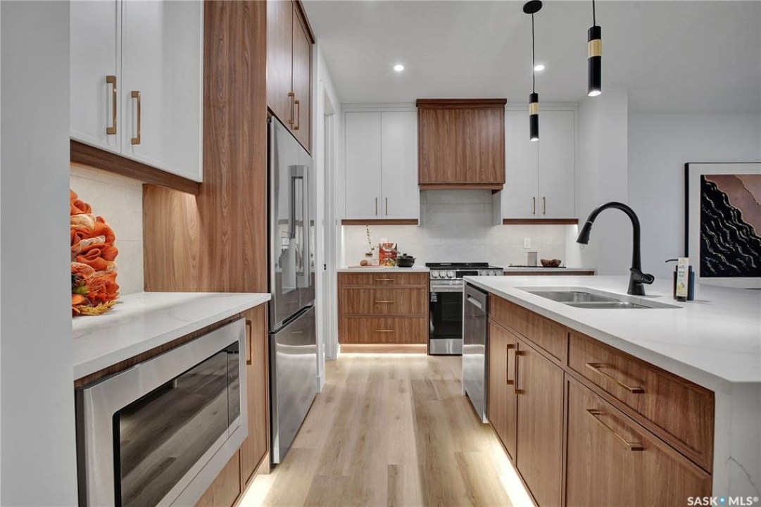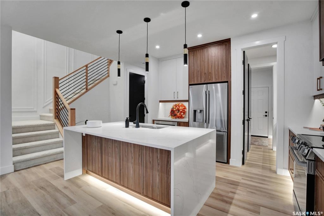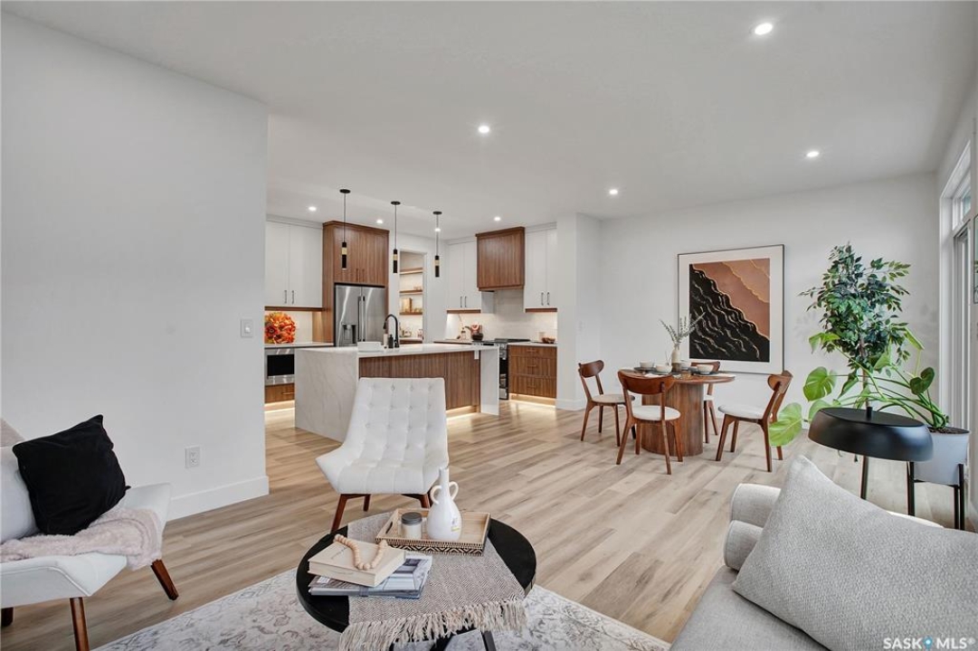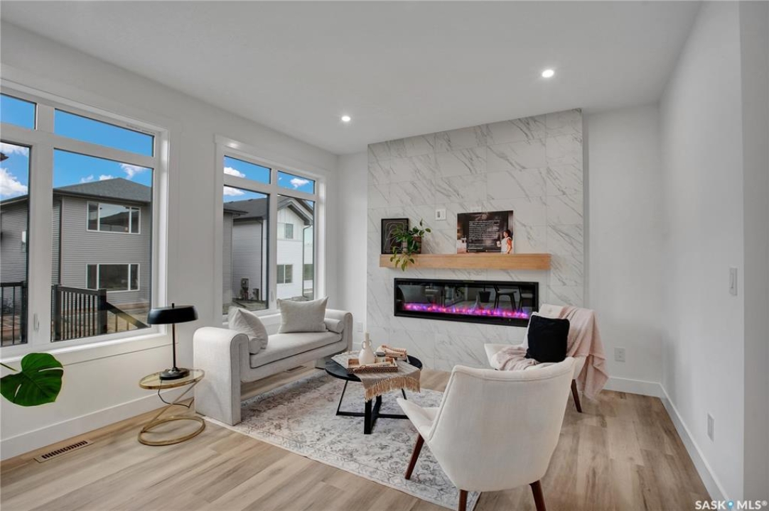 Welcome to 911 Traeger Manor, a home that seamlessly blends comfort, functionality, and attainable luxury. Crafted by Elevation Design + Build, this home exemplifies the builder's commitment to exceptional quality and refined design-while remaining within an accessible price range. From the moment you arrive, the home stands out with its curated lighting details, including toe-kick lighting, ambient LED accents, a backlit address sign, and an impressive array of recessed pot lights throughout. The open-concept living and dining area is designed with 9-foot ceilings, creating an airy, inviting space perfect for entertaining, relaxing with family, or enjoying your morning coffee in natural light from the oversized windows. The butler's pantry is truly a dream—featuring custom tile backsplash, elevated finishes, and ample storage that flows effortlessly from the garage to the kitchen for convenient grocery access. The main floor also includes a spacious flex room, a stylish half bath, and a thoughtfully designed mudroom offering both practicality and sophistication. Upstairs, you'll find three generous bedrooms and two elegant bathrooms, including a primary suite that feels like your own spa retreat—complete with a soaker tub, oversized glass shower, and a walk-in closet that's as functional as it is beautiful. Additional highlights include a composite deck, fully landscaped yard with front and back irrigation, a double concrete driveway, Ecobee Wi-Fi thermostat, and a separate side entrance for a future basement suite. This home is fully covered under Progressive New Home Warranty. Any applicable GST and PST rebates to be assigned to the builder. **Measurements taken from blueprints** buyers and their agents to verify.