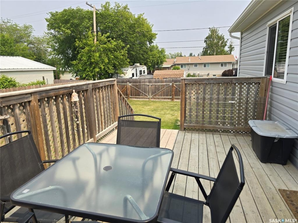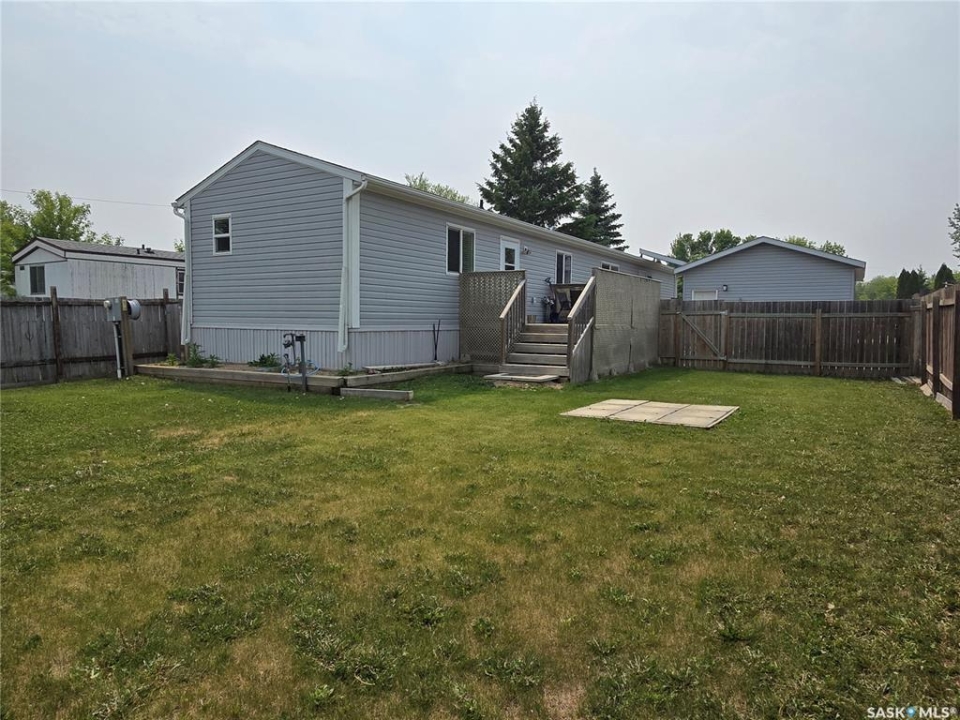 QUICK POSSESSION IS AVAILABLE! Welcome to one of Humboldt's newest and nicest mobile homes! This 1,216 sq. ft. mobile home was built in 2013 and features a vaulted ceiling in the living room, kitchen, and dining room. New Maytag stainless steel appliances in 2021 include fridge, stove, dishwasher, and over-the-range microwave/fan. New Maytag washer and dryer in 2021. New central A/C installed in 2022. The master bedroom features a 4 piece ensuite and walk-in closet. There's a 10' x 16' deck at the rear of the home and a fenced backyard. The 18' x 24' single detached garage (not insulated) built in 2021 features a garage door opener, power services, a 220 V electric heater, and an entry door. An 8' x 10' shed is also included. Just a few doors away from Wilf Chamney Park and a few blocks away from St. Dominic School.