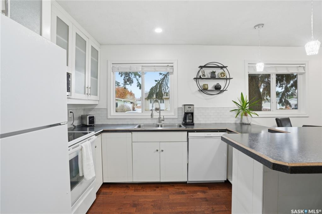 Nestled on a quiet crescent in a desirable neighbourhood, this 3-bedroom, 1,040 sq. ft. bungalow is move-in ready and full of potential. The main floor features hardwood flooring throughout and an open-concept layout that provides a seamless flow between the living room, dining area, and kitchen — ideal for everyday living or entertaining. The kitchen includes a new dishwasher installed this year and a microwave that has never been used, plus new shingles installed within the last month, A/C added in the past couple of years, and a new master bedroom window installed this spring for extra peace of mind. The basement includes a separate entrance and is developed with a kitchen, spacious living area, and a versatile room that can serve as a den or additional bedroom (with dual entry doors) — an excellent setup for extended family or a future suite. Outside, enjoy the fenced backyard with a garden area, removable gate, and single detached garage. Located right beside a bus stop and close to schools, this home offers exceptional convenience for families or tenants. Immediate possession available. An excellent opportunity for first-time buyers or investors in a fantastic location!