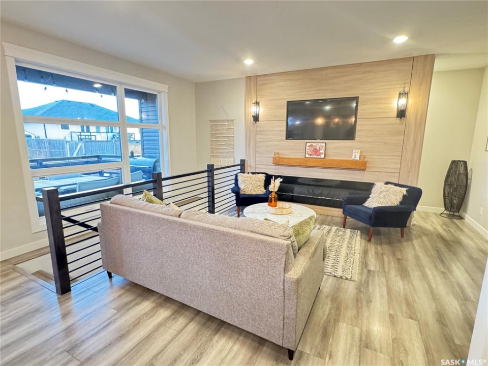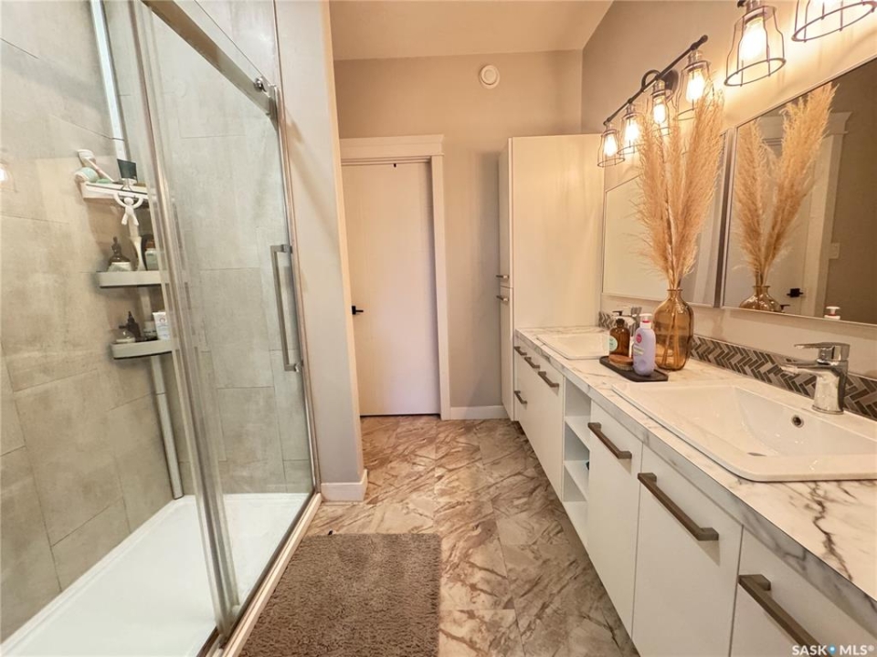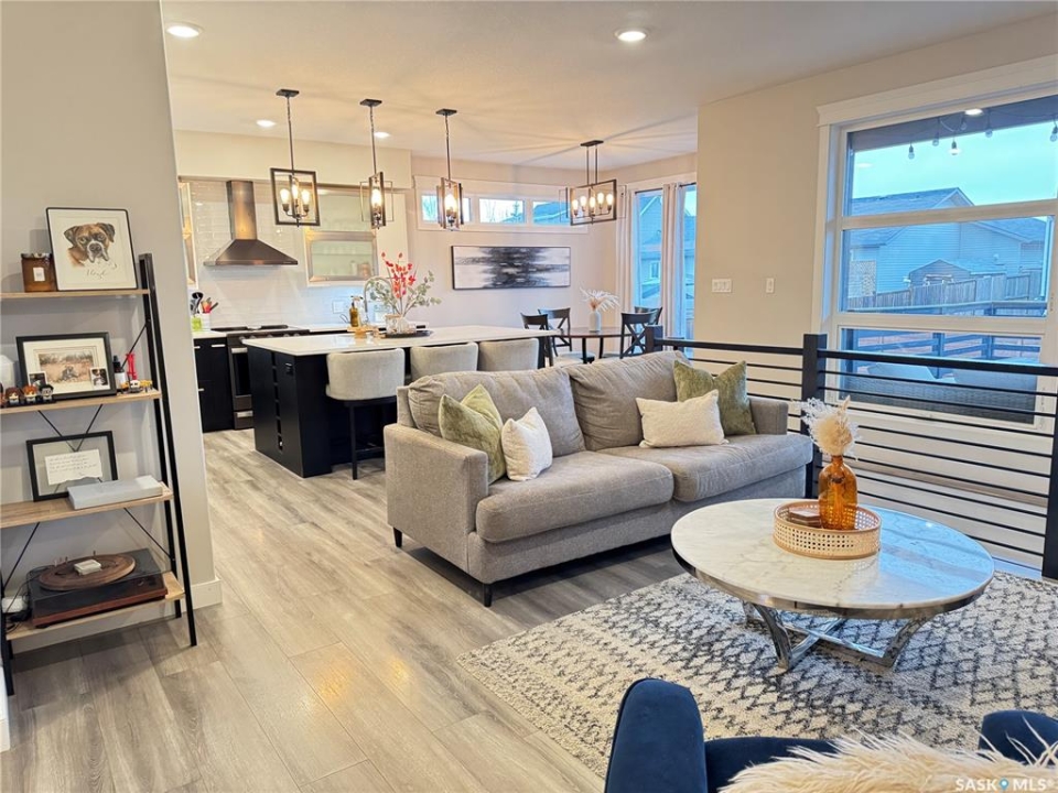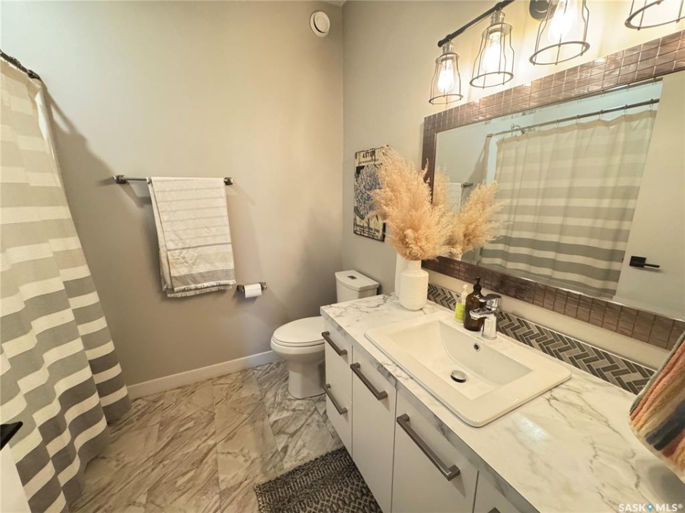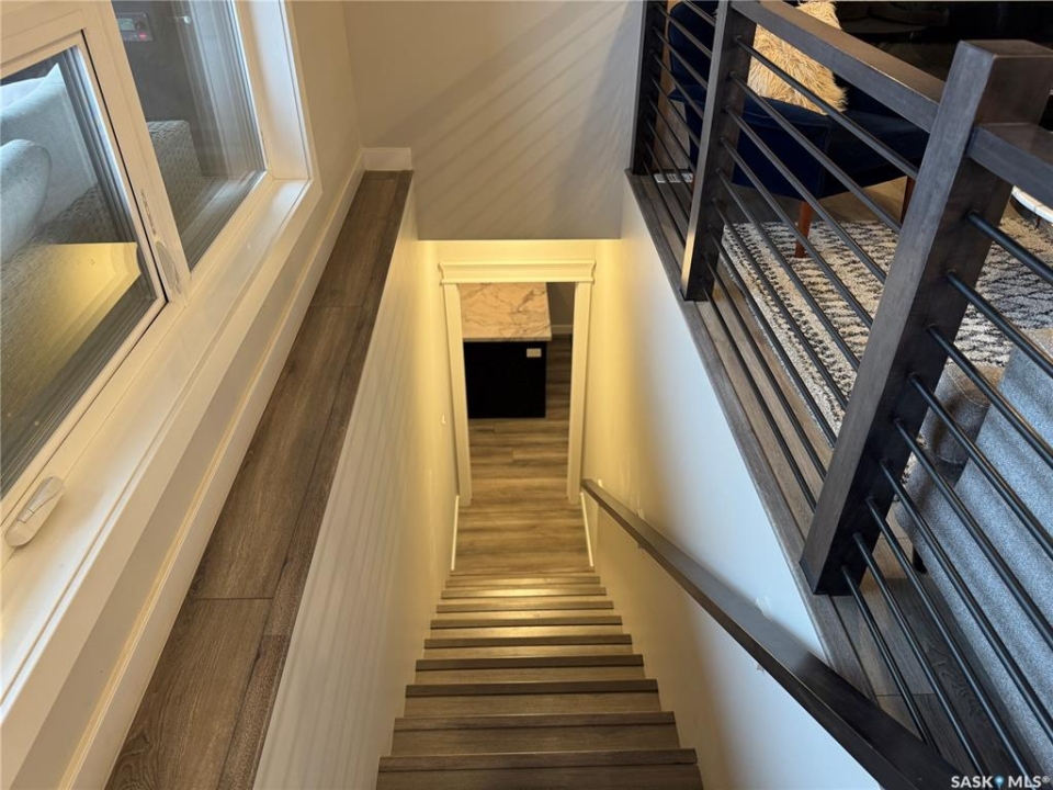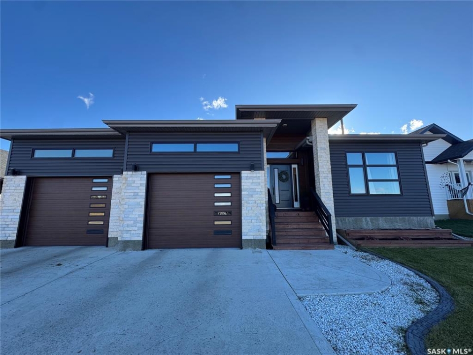 Welcome to this stunning modern-style 2 + 2 bedroom raised bungalow, ideally situated in Humboldt's sought-after North Division—just a short walk from the hospital and Humboldt's beautiful 18-hole golf course. Step inside to a bright, open-concept main floor featuring 9-ft ceilings and stylish laminate flooring throughout. The front bedroom offers flexible space—perfect as a home office or guest room. The spacious entertaining area includes a beautifully designed kitchen with a large island, wall pantry, and dining space that overlooks the backyard with access to a covered deck—ideal for relaxing or entertaining. The main floor also features convenient laundry and a welcoming layout designed for comfort and functionality. The primary bedroom is a true retreat, complete with a beautiful 4-piece ensuite and direct access to a walk-in closet. The fully finished basement mirrors the home's modern appeal with 9-ft ceilings, a cozy and spacious family room, and a well-equipped wet bar (or optional second kitchen for revenue potential). Two additional bedrooms, a 4-piece bath, utility room, and storage area complete the lower level, with direct access to the heated garage. Curb appeal shines with an oversized heated garage (30' x 24') featuring two 8' x 10' overhead doors, plus an additional 12' x 10' section with an 8' x 6' rear door opening to the backyard and a direct pathway to RV parking. The fully fenced yard is beautifully manicured with lush greenspace, flower gardens, and garden boxes. Additional features include central air, central vac, and garburator.?Buyer to verify all measurements.