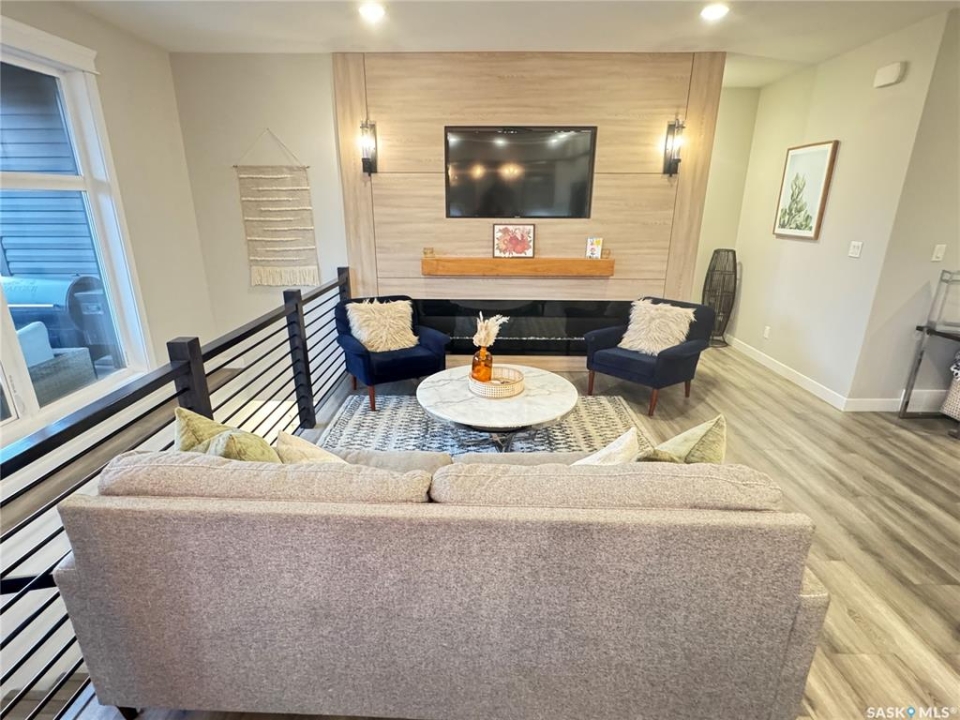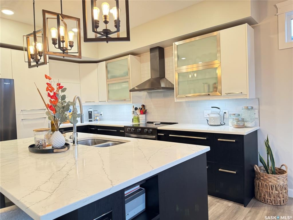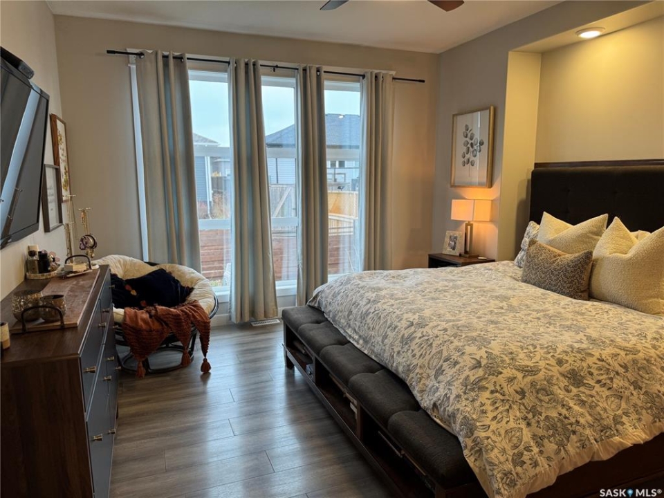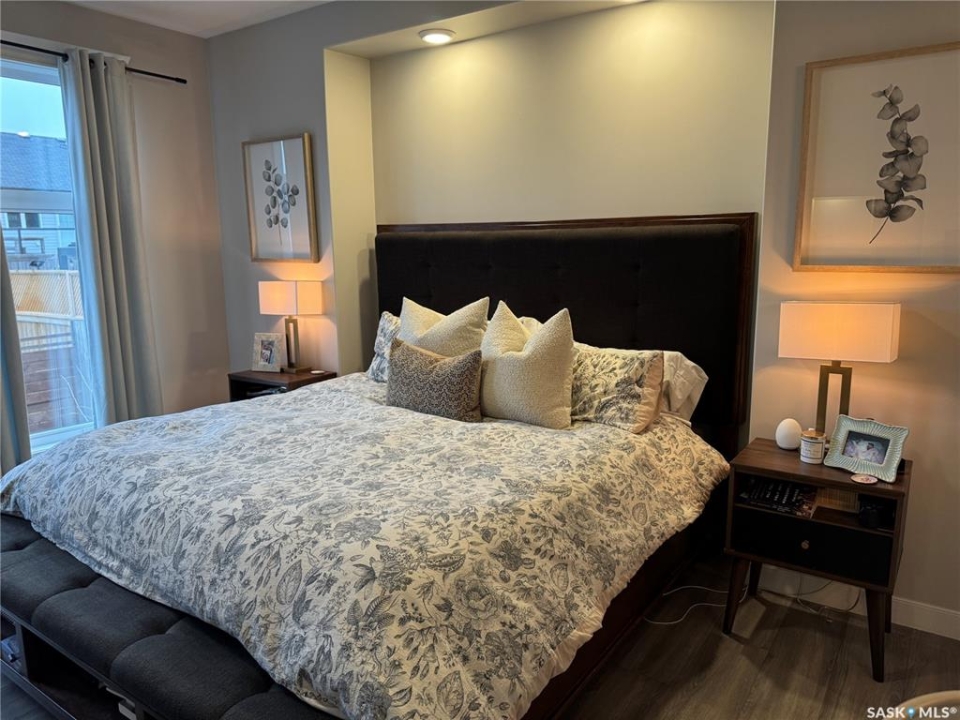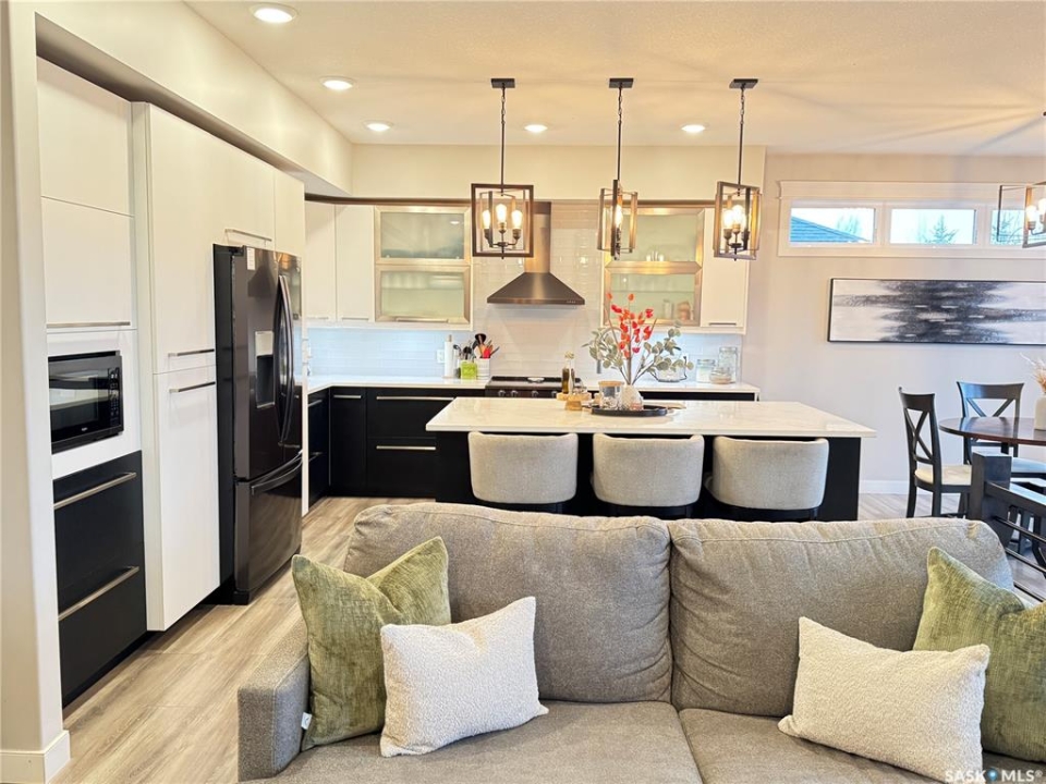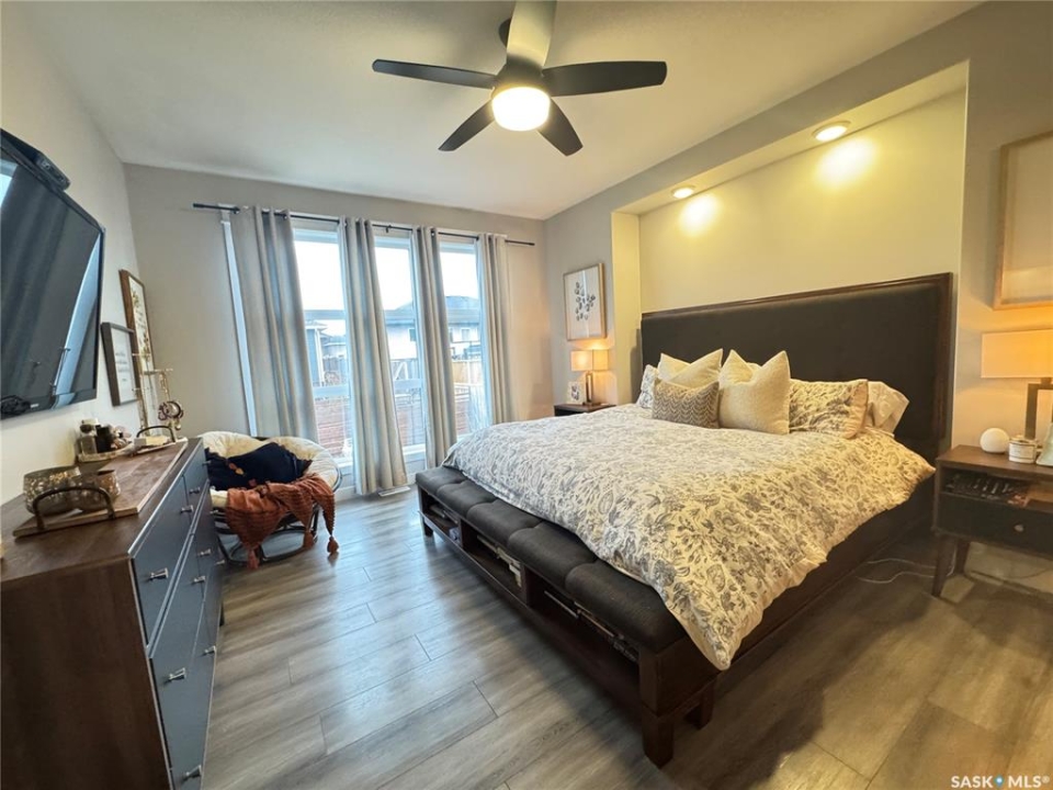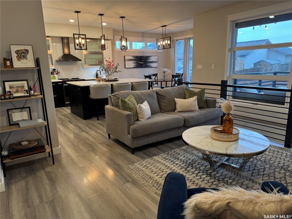 Welcome to this stunning modern-style 2 + 2 bedroom raised bungalow, ideally situated in Humboldt's sought-after North Division—just a short walk from the hospital and Humboldt's beautiful 18-hole golf course. Step inside to a bright, open-concept main floor featuring 9-ft ceilings and stylish laminate flooring throughout. The front bedroom offers flexible space—perfect as a home office or guest room. The spacious entertaining area includes a beautifully designed kitchen with a large island, wall pantry, and dining space that overlooks the backyard with access to a covered deck—ideal for relaxing or entertaining. The main floor also features convenient laundry and a welcoming layout designed for comfort and functionality. The primary bedroom is a true retreat, complete with a beautiful 4-piece ensuite and direct access to a walk-in closet. The fully finished basement mirrors the home's modern appeal with 9-ft ceilings, a cozy and spacious family room, and a well-equipped wet bar (or optional second kitchen for revenue potential). Two additional bedrooms, a 4-piece bath, utility room, and storage area complete the lower level, with direct access to the heated garage. Curb appeal shines with an oversized heated garage (30' x 24') featuring two 8' x 10' overhead doors, plus an additional 12' x 10' section with an 8' x 6' rear door opening to the backyard and a direct pathway to RV parking. The fully fenced yard is beautifully manicured with lush greenspace, flower gardens, and garden boxes. Additional features include central air, central vac, and garburator.?Buyer to verify all measurements.
