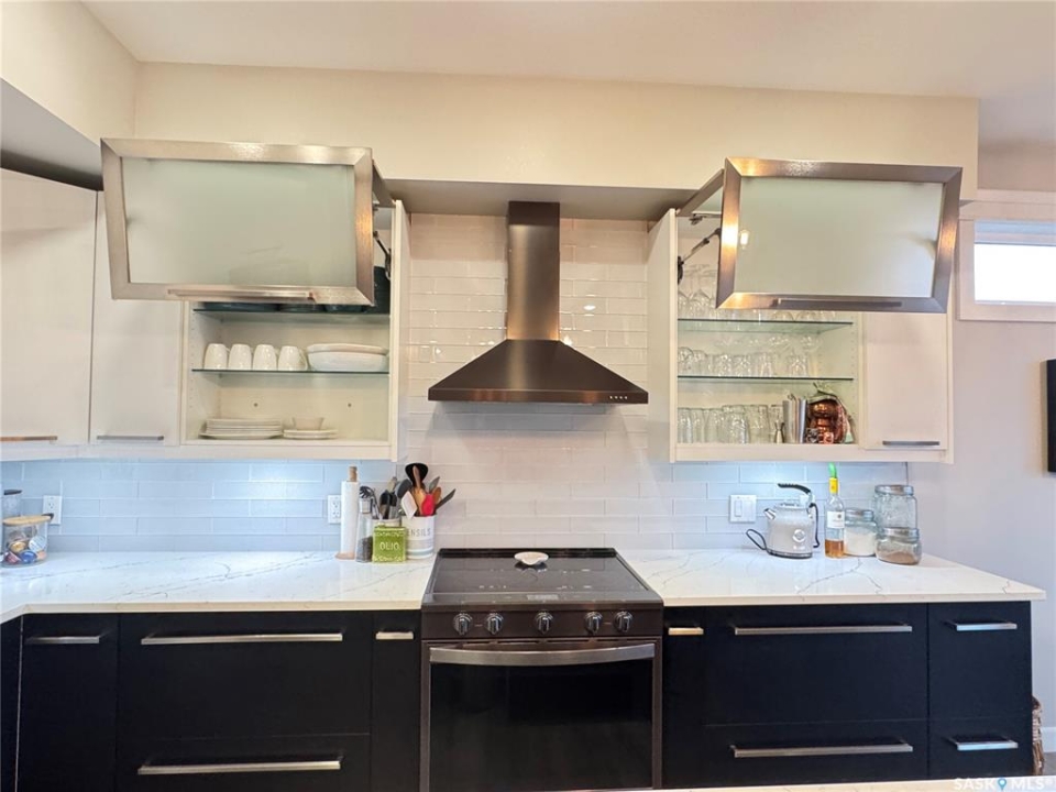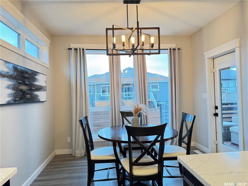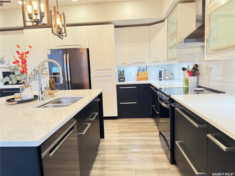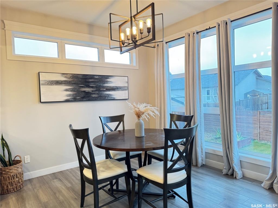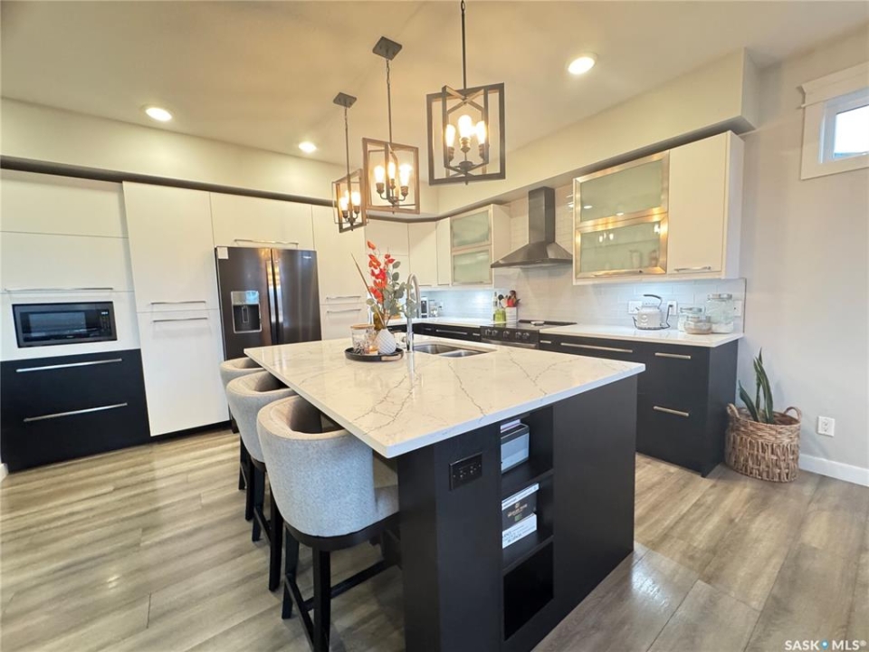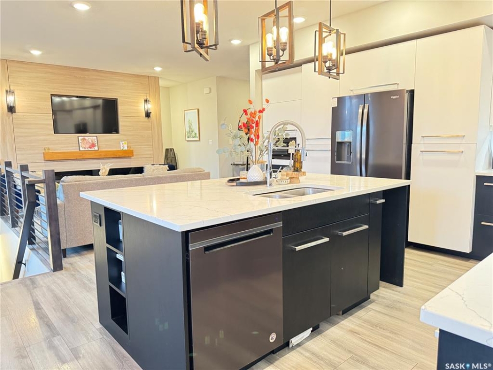 Welcome to this stunning modern-style 2 + 2 bedroom raised bungalow, ideally situated in Humboldt's sought-after North Division—just a short walk from the hospital and Humboldt's beautiful 18-hole golf course. Step inside to a bright, open-concept main floor featuring 9-ft ceilings and stylish laminate flooring throughout. The front bedroom offers flexible space—perfect as a home office or guest room. The spacious entertaining area includes a beautifully designed kitchen with a large island, wall pantry, and dining space that overlooks the backyard with access to a covered deck—ideal for relaxing or entertaining. The main floor also features convenient laundry and a welcoming layout designed for comfort and functionality. The primary bedroom is a true retreat, complete with a beautiful 4-piece ensuite and direct access to a walk-in closet. The fully finished basement mirrors the home's modern appeal with 9-ft ceilings, a cozy and spacious family room, and a well-equipped wet bar (or optional second kitchen for revenue potential). Two additional bedrooms, a 4-piece bath, utility room, and storage area complete the lower level, with direct access to the heated garage. Curb appeal shines with an oversized heated garage (30' x 24') featuring two 8' x 10' overhead doors, plus an additional 12' x 10' section with an 8' x 6' rear door opening to the backyard and a direct pathway to RV parking. The fully fenced yard is beautifully manicured with lush greenspace, flower gardens, and garden boxes. Additional features include central air, central vac, and garburator.?Buyer to verify all measurements.
