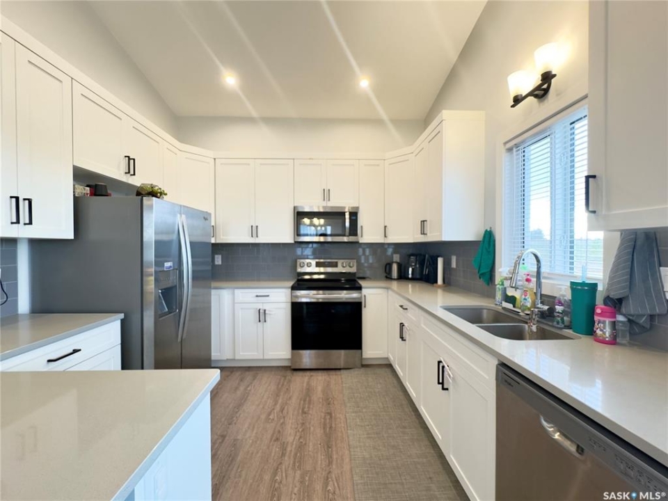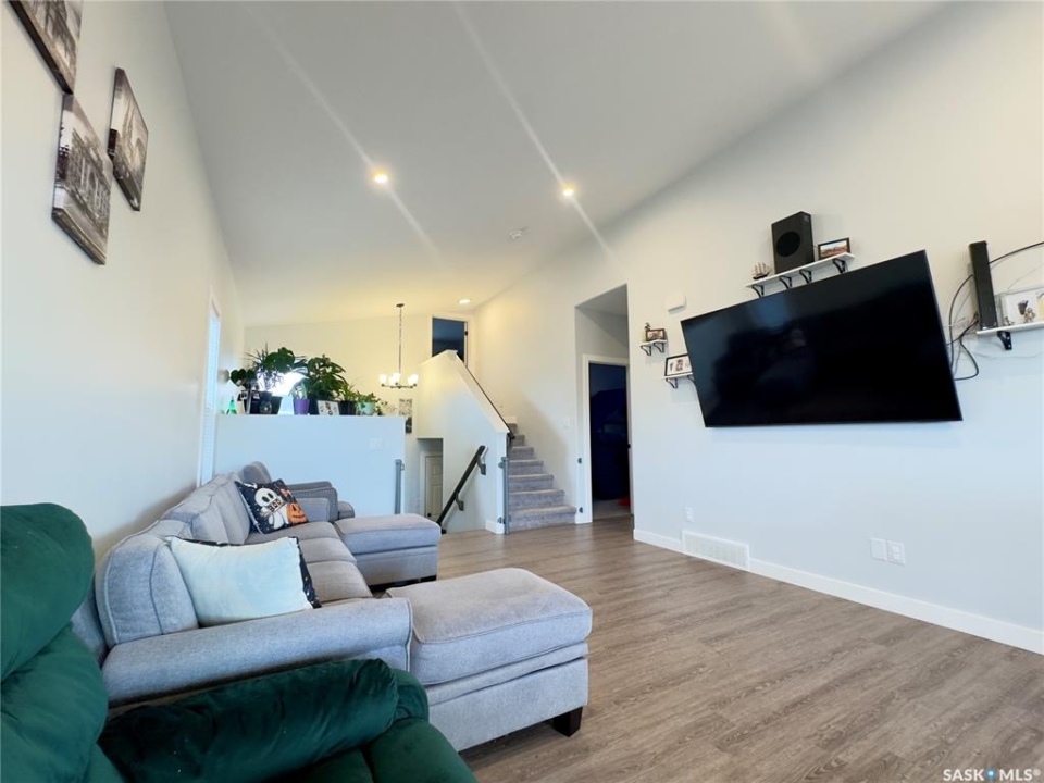 Welcome to 302 Pepper Place, located in a quiet cul-de-sac in one of Saskatoon's most convenient and growing neighbourhoods. This spacious 5 bedroom, 3 bathroom bi-level offers bright, open living space on the main floor, paired with a fully developed and legal 1-bedroom basement suite with its own separate entrance. This would be ideal for generating additional income or providing private space for extended family. The main level features a vaulted ceiling, large windows, and an open-concept layout connecting the kitchen, dining area, and living room. The kitchen includes quartz countertops, an island, and plenty of cabinet space. Three bedrooms are located on the main floor and upper level, including a generous primary suite with walk-in closet and 3-piece ensuite. The lower level of the main residence offers an additional bedroom and a laundry room that has been upgraded with added cabinetry for extra storage and everyday convenience. The legal basement suite is well thought out with its own HRV system, dedicated hot water heater, separate laundry, and bright kitchen with stainless steel appliances. The suite also comes partially furnished, making it easy to move in or begin renting right away. Brighton offers access to paved pathways, green spaces, and multiple playgrounds. The neighbourhood also features everyday conveniences such as grocery stores, restaurants, fitness facilities, medical services, and the Landmark Cinemas entertainment area, all just minutes away. Book a showing with your favourite agent today!
