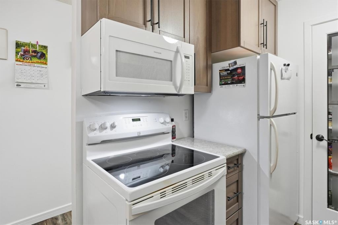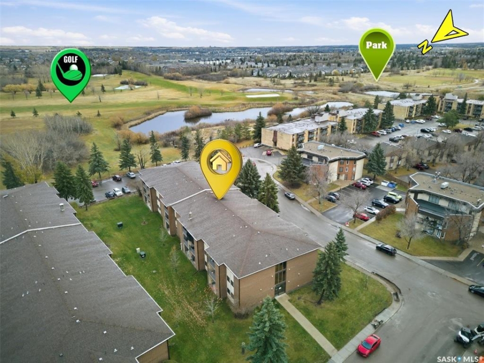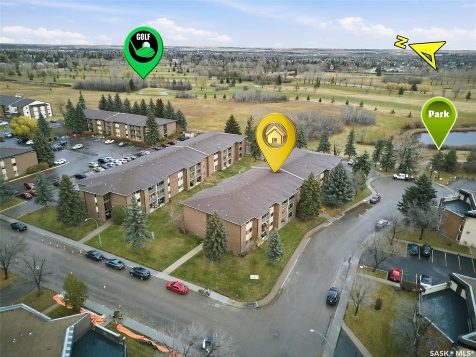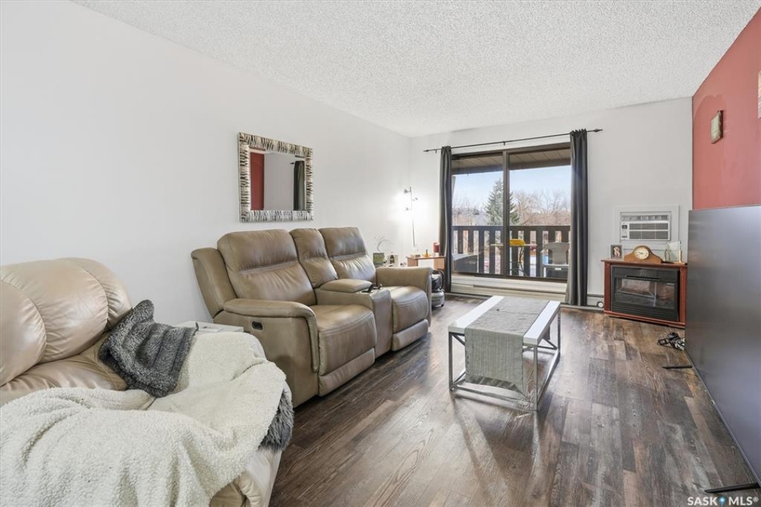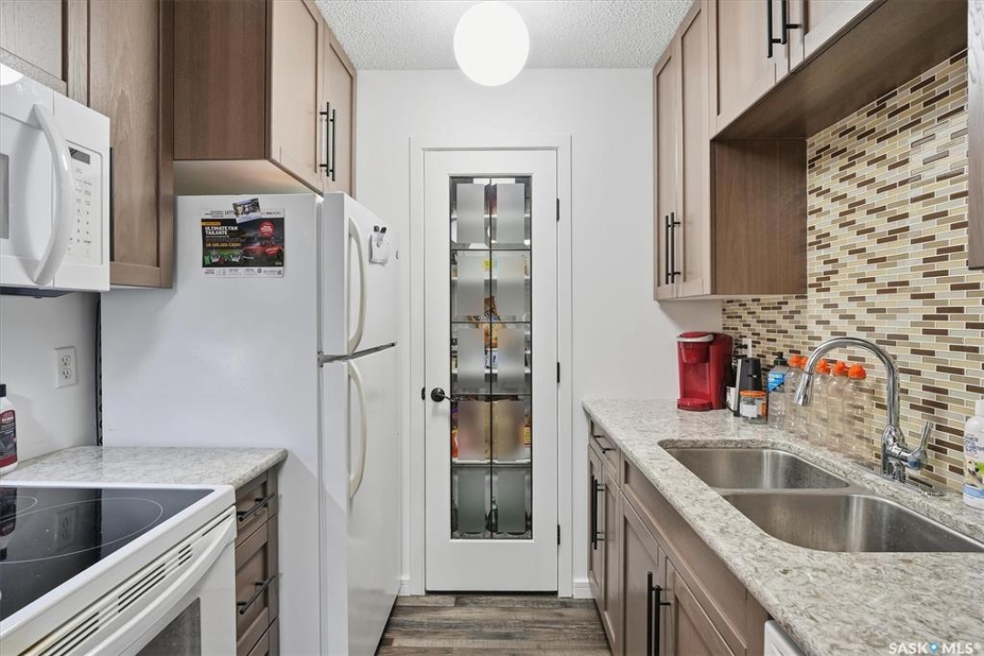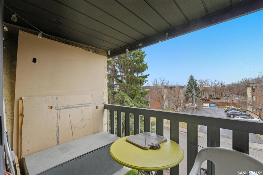 Welcome to #304 – 403 Tait Court, an affordable, renovated, and dog-friendly top-floor condo offering comfort, style, and incredible access to outdoor amenities. This 2-bedroom, 1-bathroom unit has been tastefully updated throughout and is move-in ready. The kitchen features granite countertops, modern cabinetry, a tiled backsplash, a pantry, and a functional eat-up peninsula island that opens to the main living space, making it ideal for everyday living and entertaining. Durable vinyl plank flooring runs throughout the main areas, while the updated bathroom and laundry area — complete with new cabinets and washer/dryer — add extra convenience and value. The spacious top-floor setting offers quiet living and natural light, and the private balcony includes extra storage. This condo is perfectly situated next to a large park offering walking paths, a civic centre, library, tennis courts, golf course, and BMX trails — perfect for those with an active lifestyle or small pet. The building allows one small dog (under 20 lbs) or cat, making it a rare find for pet owners in this price range. You'll also enjoy easy access to transit, as well as the shopping, dining, and services along 8th Street. One surface parking stall is included, and condo fees cover water and heat, keeping your monthly costs low. Whether you're a first-time buyer, downsizer, or student looking for a low-maintenance lifestyle in a fantastic location, this condo checks all the boxes.