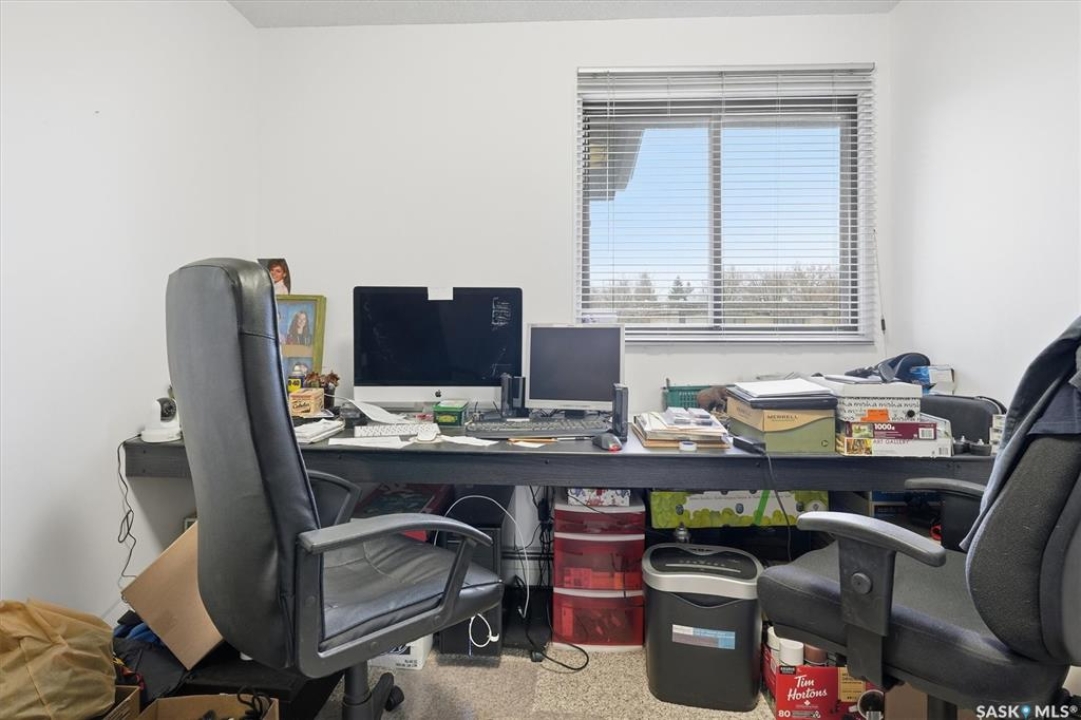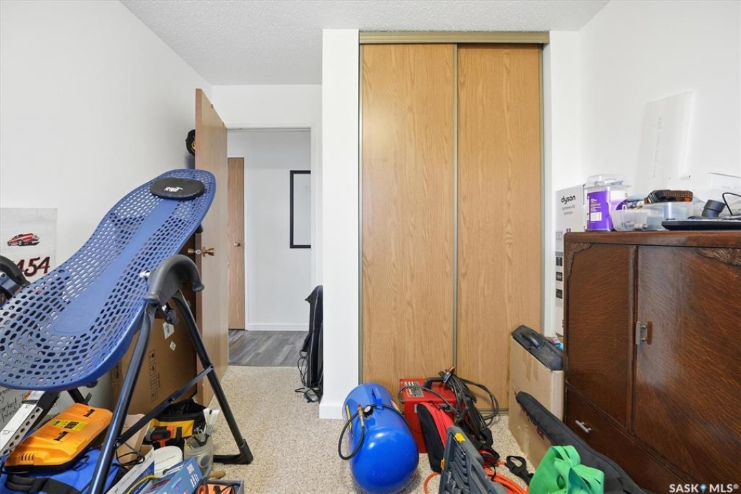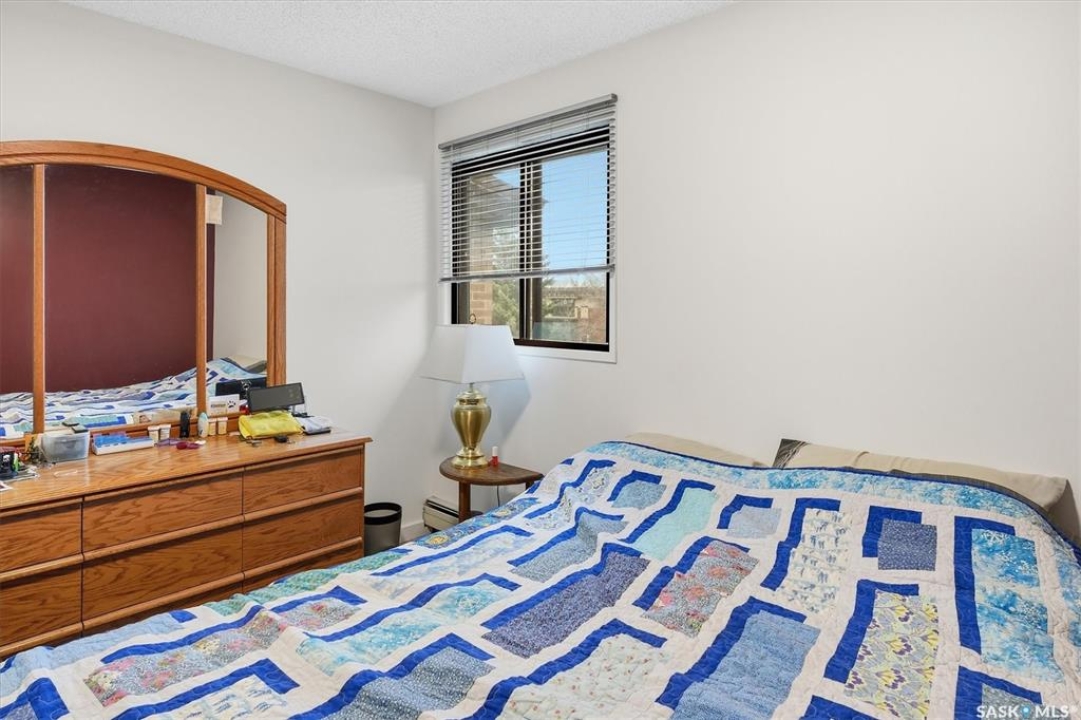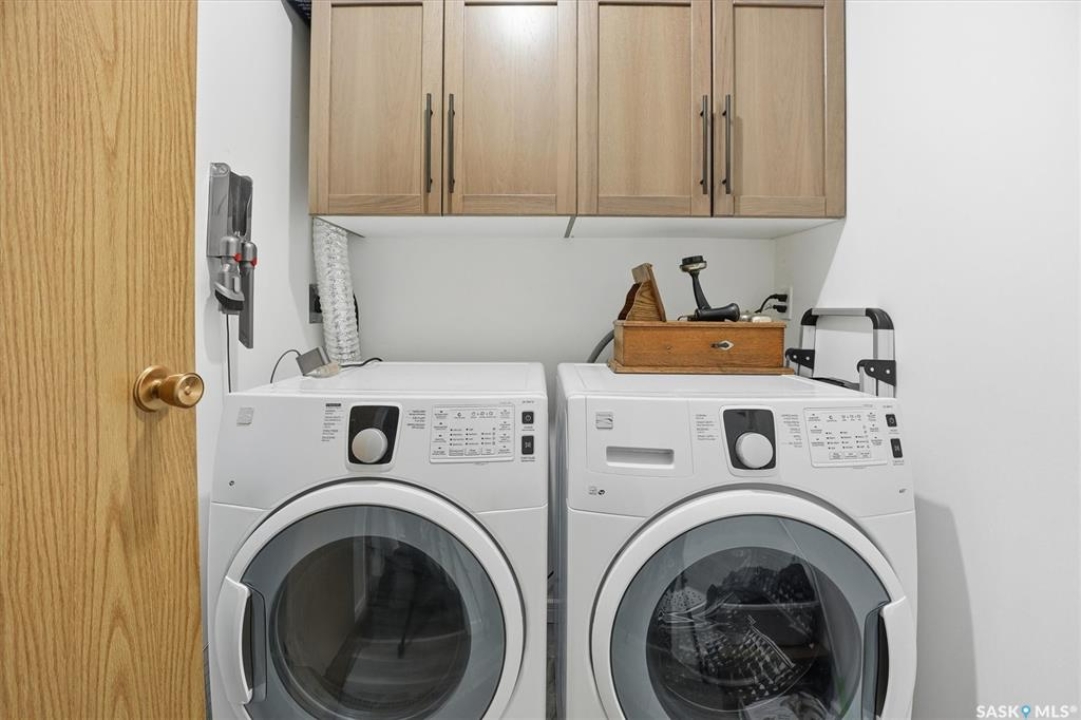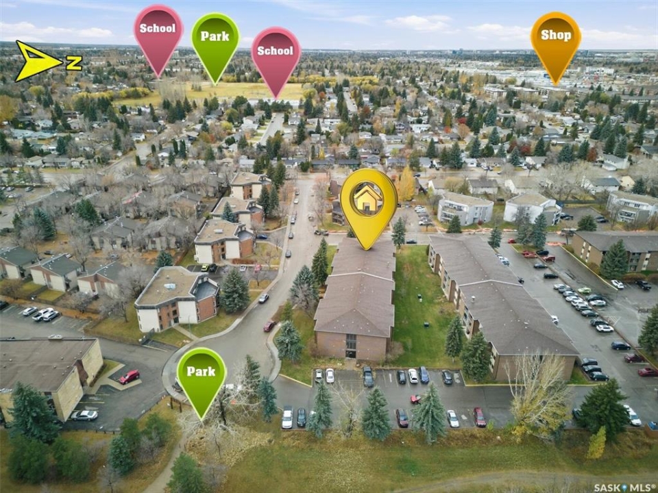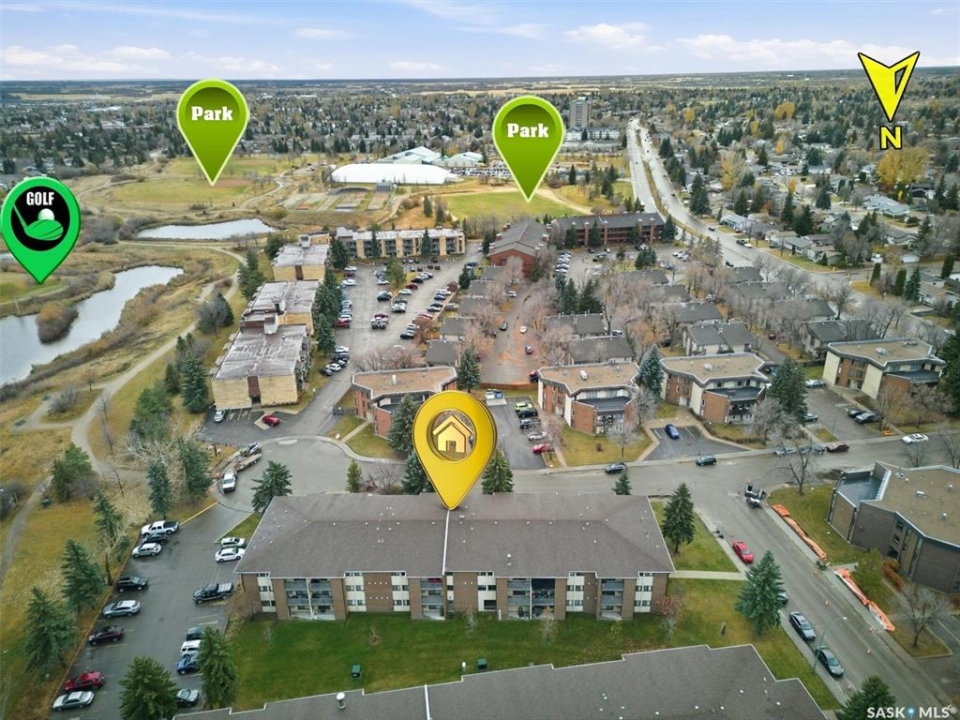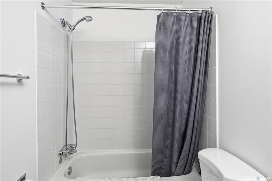Welcome to #304 – 403 Tait Court, an affordable, renovated, and dog-friendly top-floor condo offering comfort, style, and incredible access to outdoor amenities. This 2-bedroom, 1-bathroom unit has been tastefully updated throughout and is move-in ready. The kitchen features granite countertops, modern cabinetry, a tiled backsplash, a pantry, and a functional eat-up peninsula island that opens to the main living space, making it ideal for everyday living and entertaining. Durable vinyl plank flooring runs throughout the main areas, while the updated bathroom and laundry area — complete with new cabinets and washer/dryer — add extra convenience and value. The spacious top-floor setting offers quiet living and natural light, and the private balcony includes extra storage. This condo is perfectly situated next to a large park offering walking paths, a civic centre, library, tennis courts, golf course, and BMX trails — perfect for those with an active lifestyle or small pet. The building allows one small dog (under 20 lbs) or cat, making it a rare find for pet owners in this price range. You'll also enjoy easy access to transit, as well as the shopping, dining, and services along 8th Street. One surface parking stall is included, and condo fees cover water and heat, keeping your monthly costs low. Whether you're a first-time buyer, downsizer, or student looking for a low-maintenance lifestyle in a fantastic location, this condo checks all the boxes.