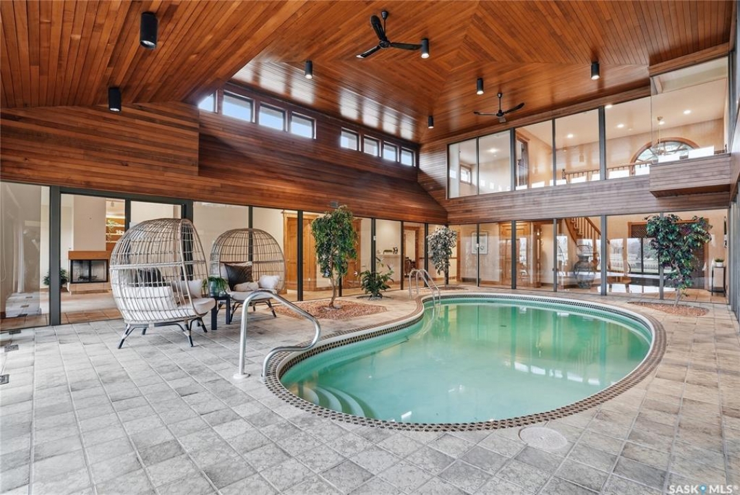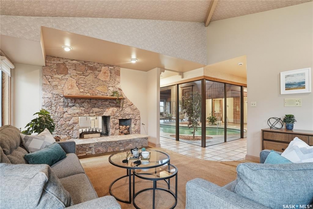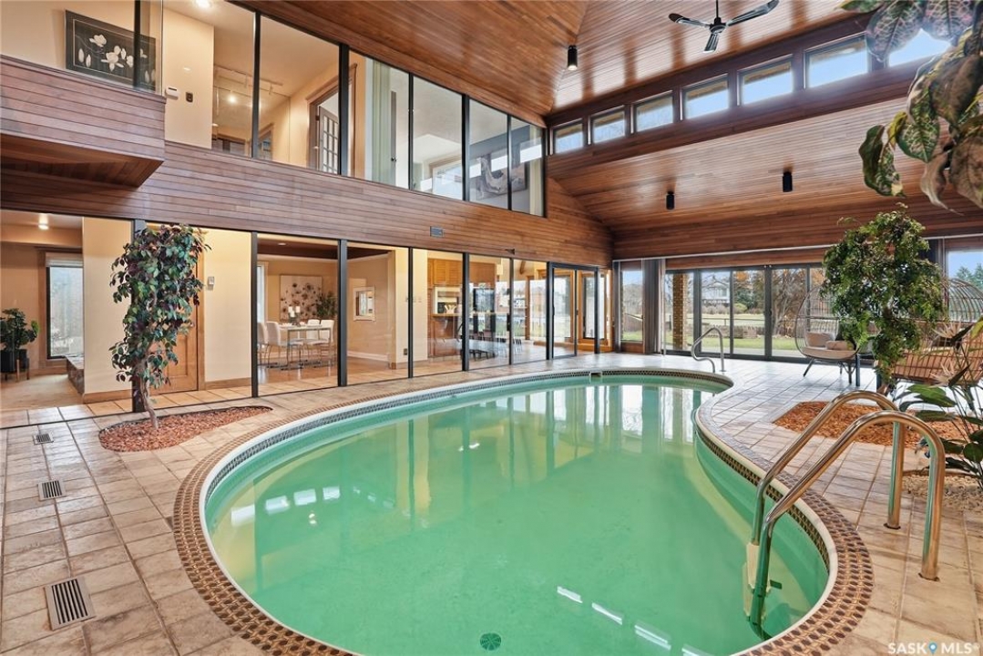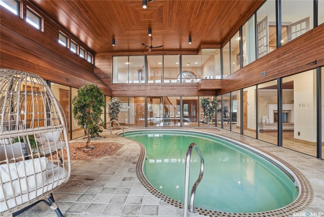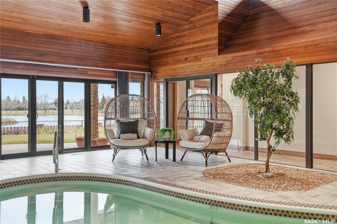 ONE OF A KIND HOME that you will not want to miss! 118 Lakeshore Terrace, a stunning 3,694 sq ft 2 storey backing Lakeview Pond! Pulling up, you are immediately met with sophisticated curb appeal, triple driveway & oversized front doors. Upon entering the spacious foyer, the glass windows & doors allow your eyes to catch magnificent view straight through your indoor pool room, to the park & the pond beyond. Making your way in, to find a classic sitting room with 2-way gas fireplace that shares with your formal dining. Next is your kitchen, offering plenty oak cabinetry, fridge, built in oven & microwave, built-in stovetop, tile backsplash, tile flooring, built in wine rack, as well as built-in shelving & a rare find: wood burning kitchen pot hanger! This homes unique features do not stop there! Behind the exquisite glass sliding doors is your indoor pool room. Featuring indoor pool, RI whirlpool, surrounded by tile floors, cedar walls following up to 17 ft high ceiling, displaying your astonishing backyard views. Coming around to your cozy den with gas fireplace, and built-in bookshelf. King accommodating primary bedroom that leads to 4-pc bath, with elegant gold fixtures, soaker tub, and glass shower. A second bedroom, access to your garage, a phone booth, and laundry, complete this floor. Coming up your grand staircase, you will find 2 additional bedrooms with floor to ceiling glass offering beautiful views overlooking the pool, as well as a 3-pc bath. Large, unfinished basement with wood fireplace, providing ample storage space, optional 5th bedroom development, & your utility area. Step outside to your concrete patio, or sit around the built-in, stone firepit with seating. Direct gate access to the walking path that surrounds the pond. Additional features include attached 31 X 26 garage, A/C, newer mechanical, & water softner. Close to multiple elementary schools, many amenities & quick access to Circle Drive. Incredible rare gem, with an unmatched location!