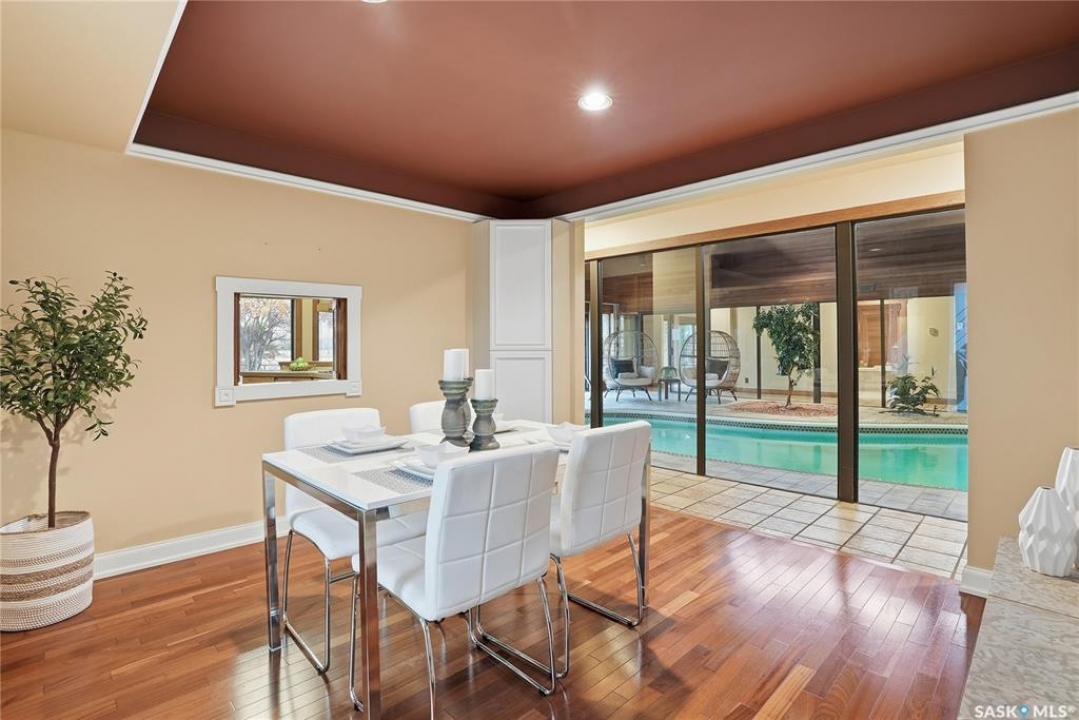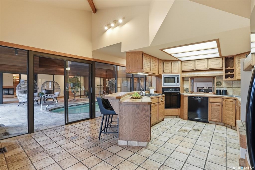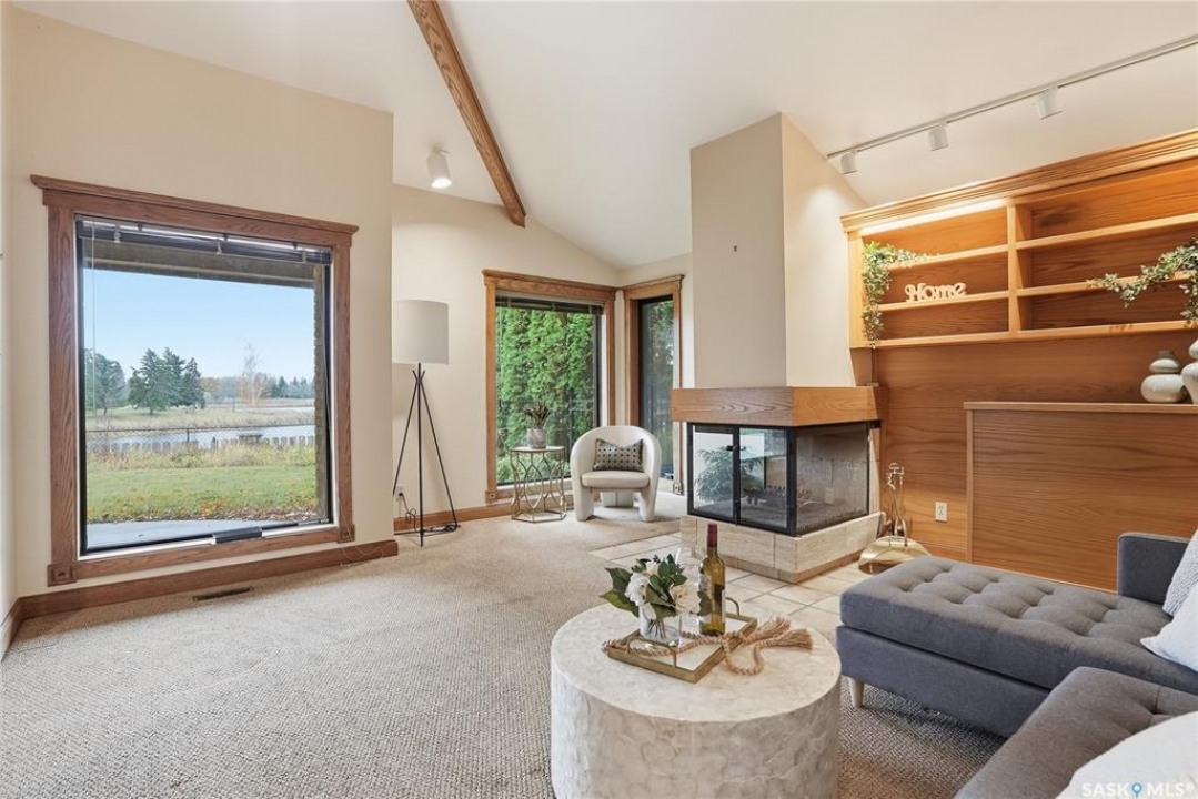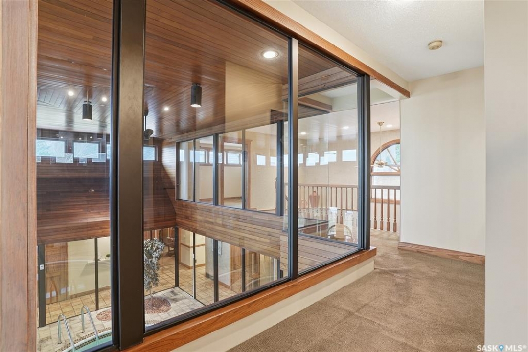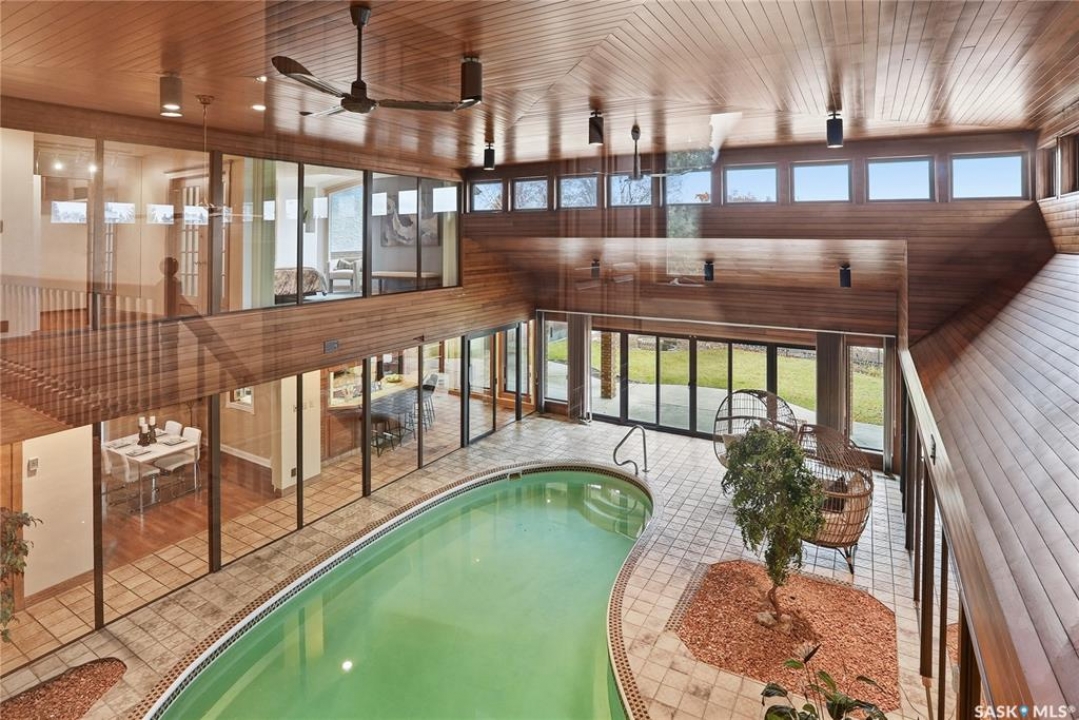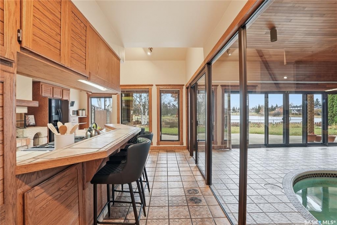 ONE OF A KIND HOME that you will not want to miss! 118 Lakeshore Terrace, a stunning 3,694 sq ft 2 storey backing Lakeview Pond! Pulling up, you are immediately met with sophisticated curb appeal, triple driveway & oversized front doors. Upon entering the spacious foyer, the glass windows & doors allow your eyes to catch magnificent view straight through your indoor pool room, to the park & the pond beyond. Making your way in, to find a classic sitting room with 2-way gas fireplace that shares with your formal dining. Next is your kitchen, offering plenty oak cabinetry, fridge, built in oven & microwave, built-in stovetop, tile backsplash, tile flooring, built in wine rack, as well as built-in shelving & a rare find: wood burning kitchen pot hanger! This homes unique features do not stop there! Behind the exquisite glass sliding doors is your indoor pool room. Featuring indoor pool, RI whirlpool, surrounded by tile floors, cedar walls following up to 17 ft high ceiling, displaying your astonishing backyard views. Coming around to your cozy den with gas fireplace, and built-in bookshelf. King accommodating primary bedroom that leads to 4-pc bath, with elegant gold fixtures, soaker tub, and glass shower. A second bedroom, access to your garage, a phone booth, and laundry, complete this floor. Coming up your grand staircase, you will find 2 additional bedrooms with floor to ceiling glass offering beautiful views overlooking the pool, as well as a 3-pc bath. Large, unfinished basement with wood fireplace, providing ample storage space, optional 5th bedroom development, & your utility area. Step outside to your concrete patio, or sit around the built-in, stone firepit with seating. Direct gate access to the walking path that surrounds the pond. Additional features include attached 31 X 26 garage, A/C, newer mechanical, & water softner. Close to multiple elementary schools, many amenities & quick access to Circle Drive. Incredible rare gem, with an unmatched location!