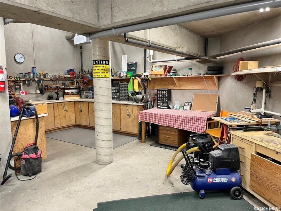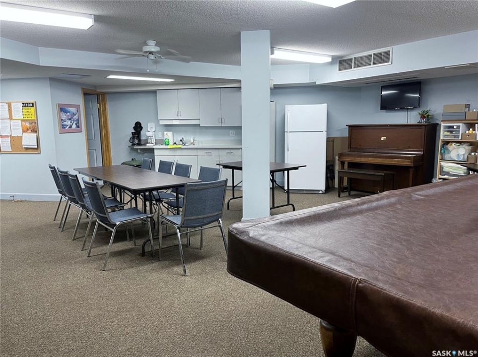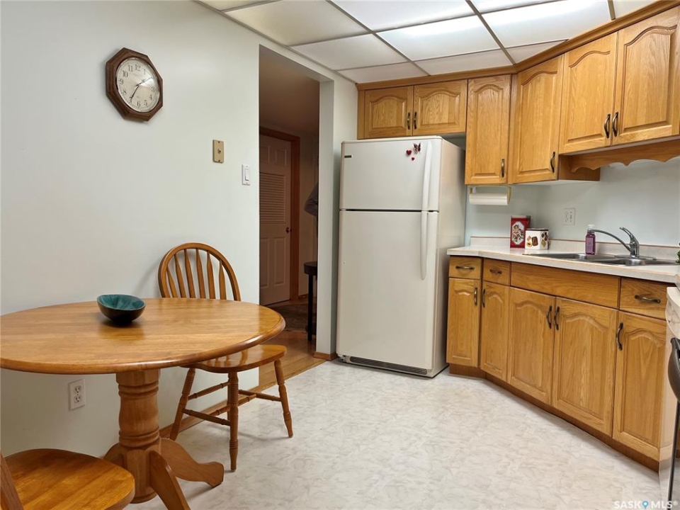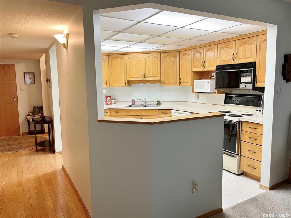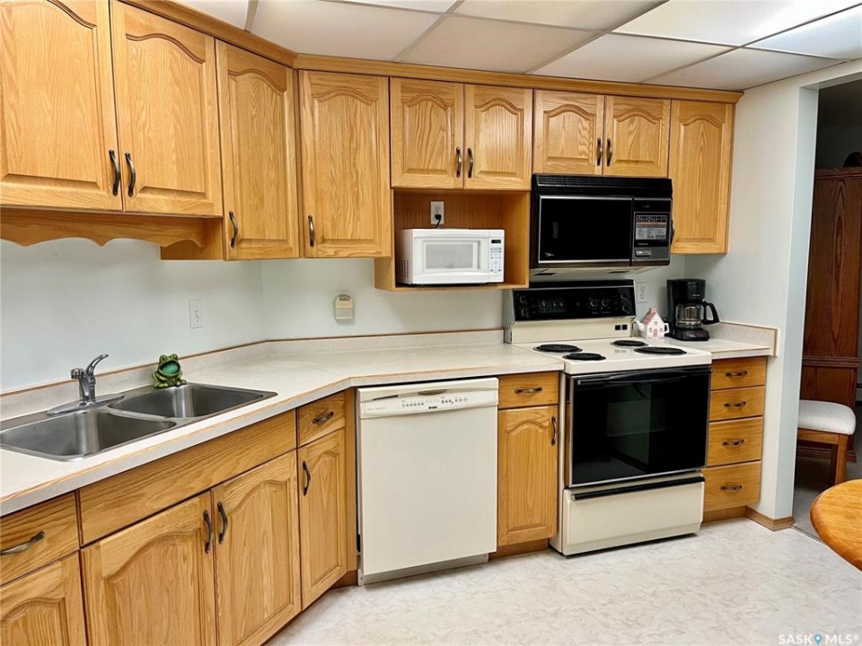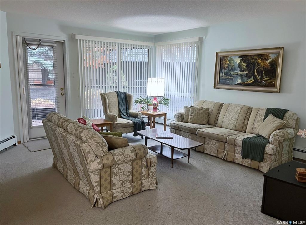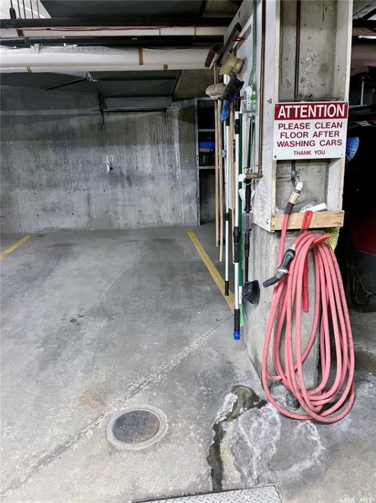 Enjoy the convenient location of Chalet Gardens with Market Mall across the street, and all the amenities if has to offer. This well cared for condo features 1,250 sq ft of living space, two bedrooms, two bathrooms and a large living room/dining room area. The spacious primary bedroom features a large walk-in closet and large shower with seat in tub. The kitchen includes all appliances and has room for table and chairs. Enjoy in-suite laundry, central air conditioning, and new intercom system monitoring front door. The large east facing balcony includes extra storage space with shelving. The building includes underground parking, stall #56, with storage space and a wash bay for your vehicle. Also included is a large amenities room, elevator, woodworking shop and RV parking. The manicured grounds feature an abundance of mature trees and shrubs making this a beautiful place to call home.