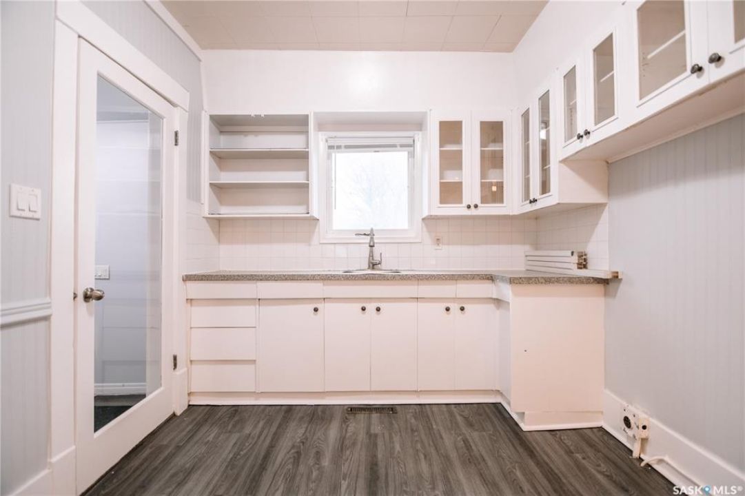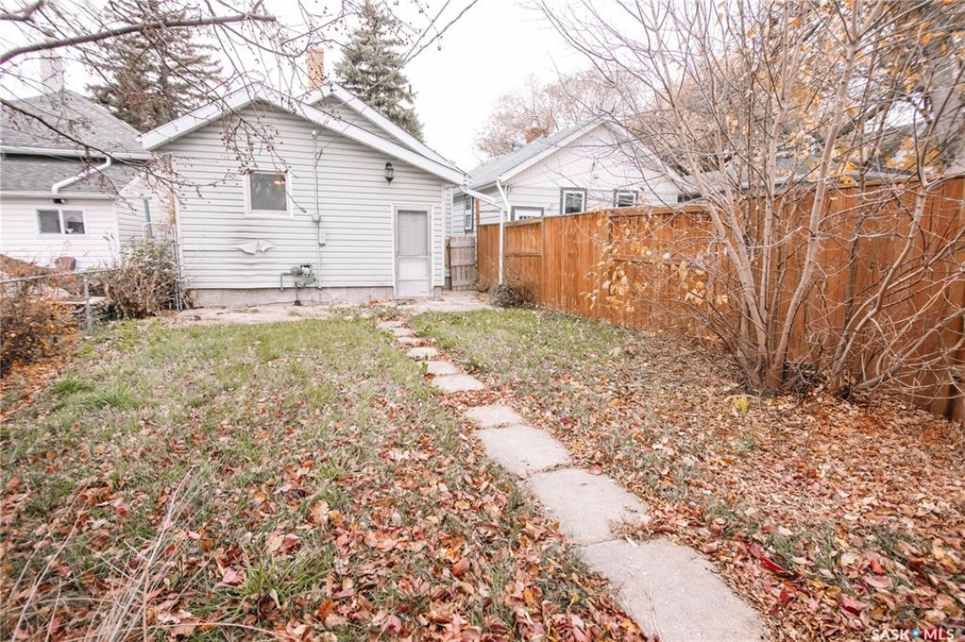 Nestled in the heart of Regina's sought-after Cathedral neighbourhood, this charming two-bedroom bungalow is full of warmth, character, and move-in-ready comfort. Step through the inviting front porch — a bright, sunny 3-season space that's perfect for morning coffee or relaxing with a book. Inside, you'll find beautifully maintained original hardwood floors throughout the main living areas and bedrooms, adding timeless appeal. Large windows fill the home with natural light, creating a bright and welcoming atmosphere from morning to evening. The open-concept main area is ideal for everyday living and entertaining. The living room sits at the front of the home, with enough space for the whole family, while a partial wall subtly defines the dining area, giving both spaces their own identity. The kitchen blends character and function with white cabinetry, open shelving, and a deep stainless steel sink perfectly placed under the window overlooking the backyard. Dark laminate counters and a crisp white backsplash complete the modern, clean look. Down the hall are two comfortable bedrooms and a full 4-piece bathroom featuring a vintage-style clawfoot tub and pedestal sink — a nod to the home's classic roots. The lower level is neat, dry, and offers plenty of storage and laundry space. Step out back to find a cozy yard with a small patio for BBQs, a grassy area for kids or pets, and a single detached garage with an additional parking space. You'll love the location — walking distance to downtown, Wascana Park, and the Cathedral Village shops, restaurants, and cafes. The neighborhood's vibrant energy shines during the annual Cathedral Village Arts Festival, celebrating local food, art, and music. Schools and post-secondary campuses, including the University of Regina and Saskatchewan Polytechnic, are also nearby. This delightful Cathedral home combines charm, convenience, and community — a true gem you won't want to miss.