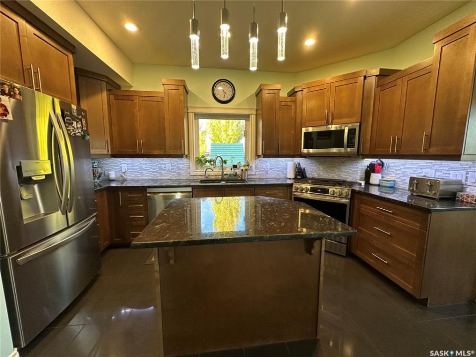 This 2 Storey Family home in Shellbrook is a must see. Built in 2013 this 4 +2-bedroom home offers over 2300 sqft on 2 levels, plus the fully finished basement. The spacious entrance way invites you in with its stylish ceramic tile floors and French Doors leading to the private office space. The large family room flows nicely into the main dining area before you enter the beautiful kitchen with island, maple cabinetry and granite countertops featuring a brand-new natural gas 4 burner stove. Finishing off the main floor is the large laundry room and 2 pc bath. The 2nd level boasts 3 large kid's bedrooms and bath, in addition to the impressive master bedroom and beautiful ensuite with Jacuzzi tub, ceramic tile shower and large walk-in closet. The fully finished basement provides lots of extra space for the kids in the family room, 2 more bedrooms and full bathroom. The oversized heated double garage offers additional workspace. This spectacular home is situated on an oversized lot with a maintenance free fence enclosing the yard complete with the kids play structure, hot tub, fire pit area and a 12 x 16 shed with concrete floor for the toys. Extra RV Parking included.