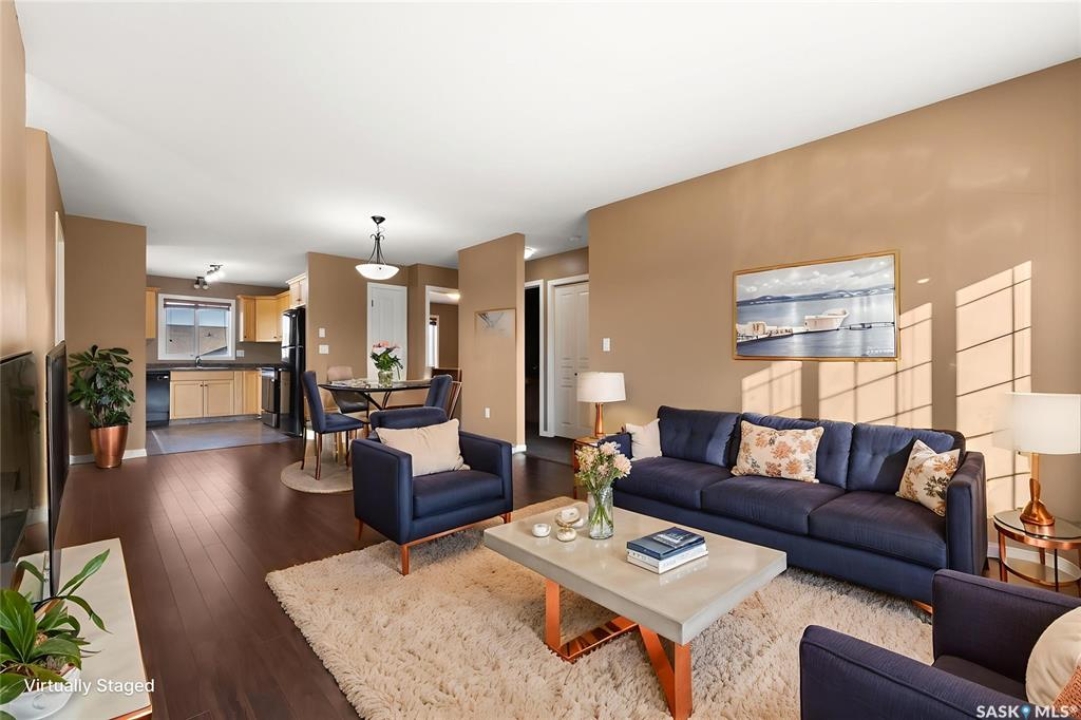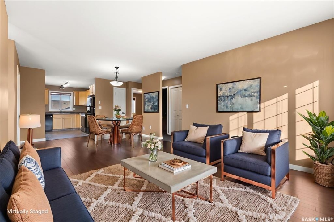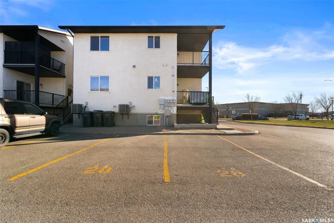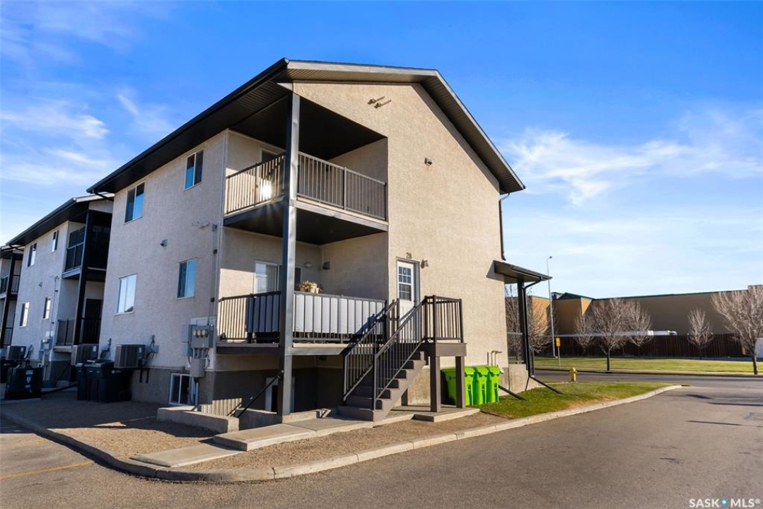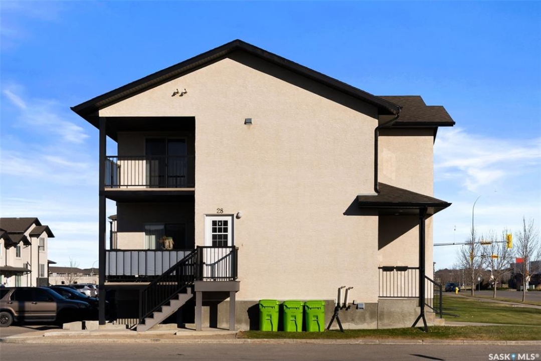 Welcome to #28 – 4640 Harbour Landing Drive, a stylish and move-in-ready condo in one of Regina's most sought-after neighbourhoods. Offering nearly 1,100 square feet of thoughtfully designed living space, this home combines comfort, modern finishes, and exceptional convenience. You are greeted into an inviting open-concept layout where the living room, dining area, and kitchen flow seamlessly together—perfect for entertaining or relaxing at home. The kitchen is beautifully finished with contemporary cabinetry, and plenty of storage. A convenient 4 piece bathroom and in-suite laundry are tucked between the two good sized bedrooms. Central air also included! A large south facing balcony is located off the kitchen, to enjoy a barbecues or quiet evenings outdoors. Two dedicated parking stalls are located right outside your door, providing everyday convenience and peace of mind. Set in the heart of Harbour Landing, this home places you within walking distance of shopping, restaurants, parks, and scenic walking paths. With quick access to schools and major routes, it's perfectly positioned for modern living. Built in 2010 and meticulously maintained, this condo offers the best of low-maintenance living—exterior upkeep and snow removal are handled through the condo association, allowing you to simply move in and enjoy. Pets are allowed with application/condo board approval. Whether you're a first-time buyer, downsizer, or investor, #28 – 4640 Harbour Landing Drive delivers exceptional value, style, and comfort in a thriving community. Don't miss your chance to make this beautiful property your new home. Quick possession available!