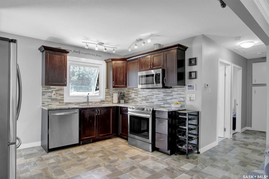 Welcome to 5513 4th Ave, a stunning residence that has undergone extensive recent renovations. This exceptional home is conveniently located in close proximity to schools and parks. The main level showcases a delightful open concept floor plan, highlighted by a beautiful kitchen boasting upgraded appliances and granite countertops. The main bathrooms have been newly renovated, and the home offers two bedrooms with PVC windows that flood the space with natural light. Additionally, the basement has been fully developed to enhance the living space. It presents two bedrooms featuring egress PVC windows, brand new carpets (June 2023), cozy, recreation rooms with a designated nook area perfect for a small office desk, a convenient half bath, and a laundry utility room with ample storage. The backyard has been nicely landscaped and is fully fenced. It offers a generous sized deck, ideal for entertaining, as well as a spacious green space, a single garage, and extra parking. Numerous updates have been implemented throughout the property, including an open floor plan, a new sewer line, PVC windows, flooring, doors, paint, kitchen renovations, bathroom renovations (June 2023) , upgraded stainless steel appliances, new carpet in the basement (June 2023) a high-efficiency furnace, and electrical panel upgrade, among other improvements.