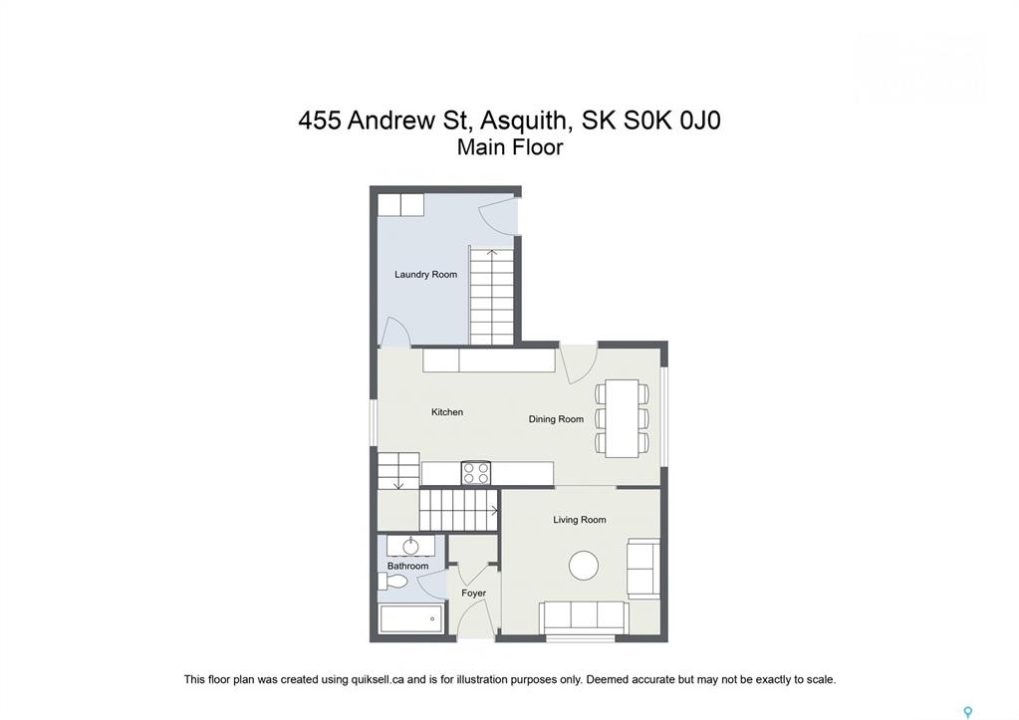 Welcome to 455 Andrew street located in Asquith. This one and a half story home is 1020 sqft with 3 spacious bedrooms & 2 full bathrooms. On the main floor you will find bright living room, newer open concept kitchen, dining room and 4pc bathroom. The basement has good size bedroom, living room, 4pc bathroom and kitchen has already been started for future suite. Backyard is fully fenced, firepit, garden area and deck. Triple detached garage with both front and rear access. Asquith has a K-12 school, smaller grocery store, other amenities and close to mines. It is a short 20 minute commute to Saskatoon.