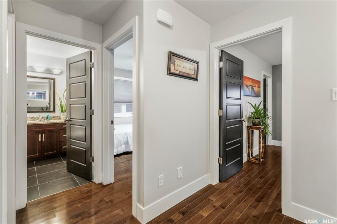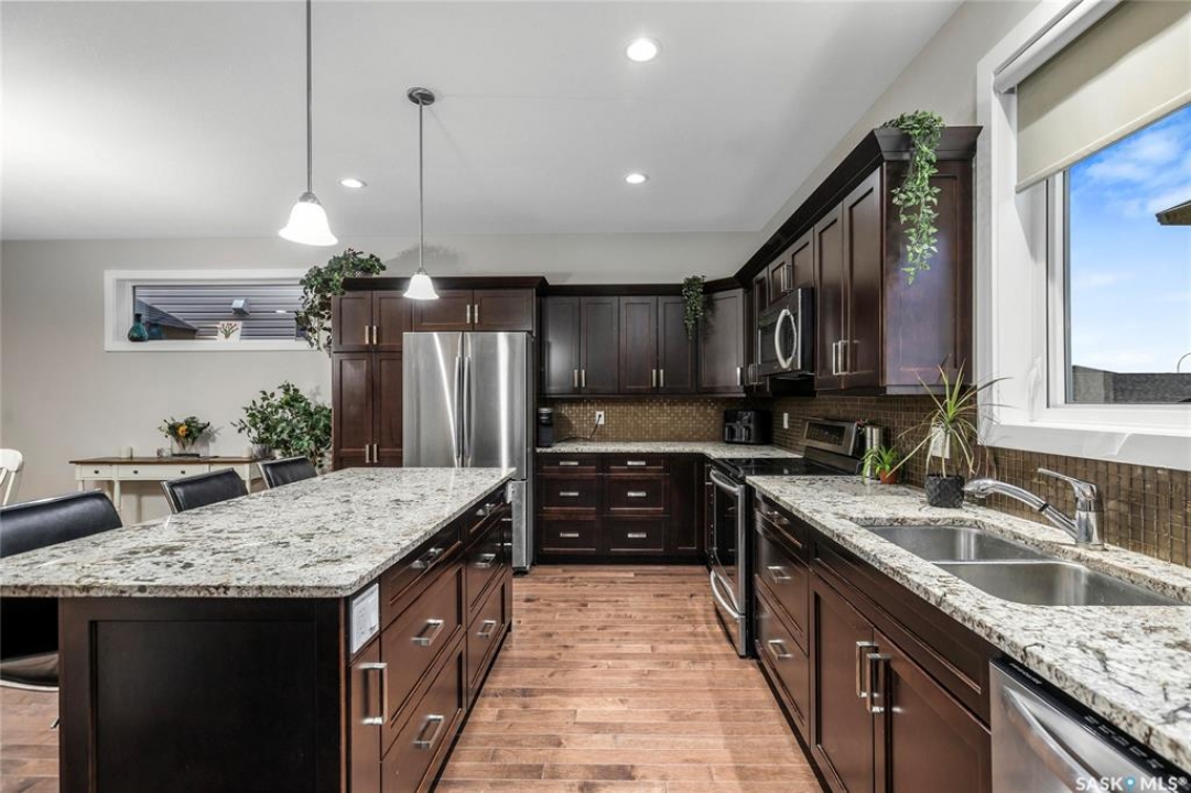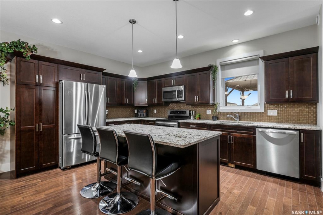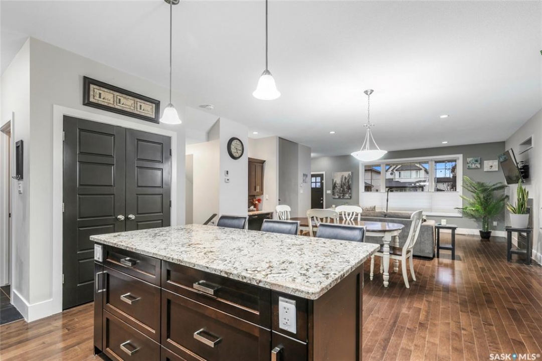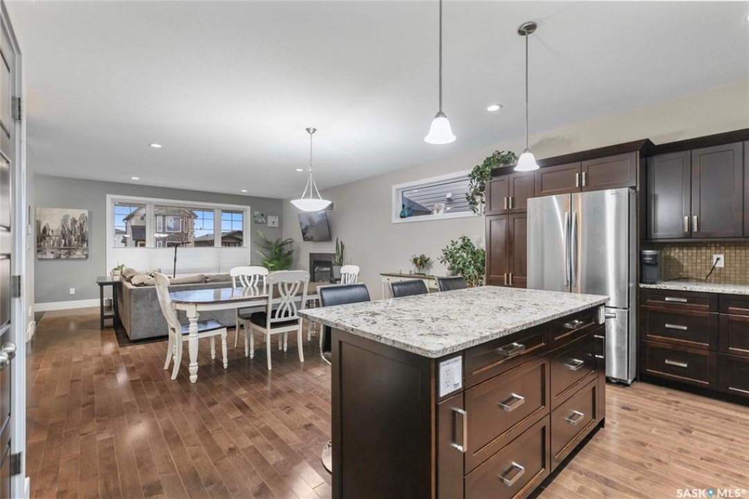 Welcome to this stunning two-storey home. It's the kind of place that catches your eye as you drive down the street, with charming curb appeal and a spacious front porch perfect for morning coffees in this quiet, friendly neighborhood. The home backs green space, and the gate to the park is only a few steps away. Inside, you're greeted by an open concept design with tall ceilings and warm hardwood floors that make you feel instantly at home. The dining area has plenty of space for a large table and the kitchen features ample cabinetry, a large pantry, granite countertops, and while doing dishes you have a great view of your backyard. Just off the back door is a convenient half bath. Upstairs is thoughtfully planned with three bedrooms, each offering a walk-in closet. The primary suite features a 4-piece ensuite, and there's an additional 4-piece bathroom for the other bedrooms, complete with granite counters. The laundry room is also upstairs so you don't have to run up and down the stairs, and it includes a sink for easy clean-ups. The basement is open for your design ideas, already partially finished with drywall, rough-in plumbing for a bathroom, and a large window for a future bedroom if desired. Outside, the backyard is fully fenced with a lovely deck and a heated, insulated two-car garage. And yes, the park behind you means easy access and beautiful green views. It doesn't get much better than this. Call your local Realtor today!